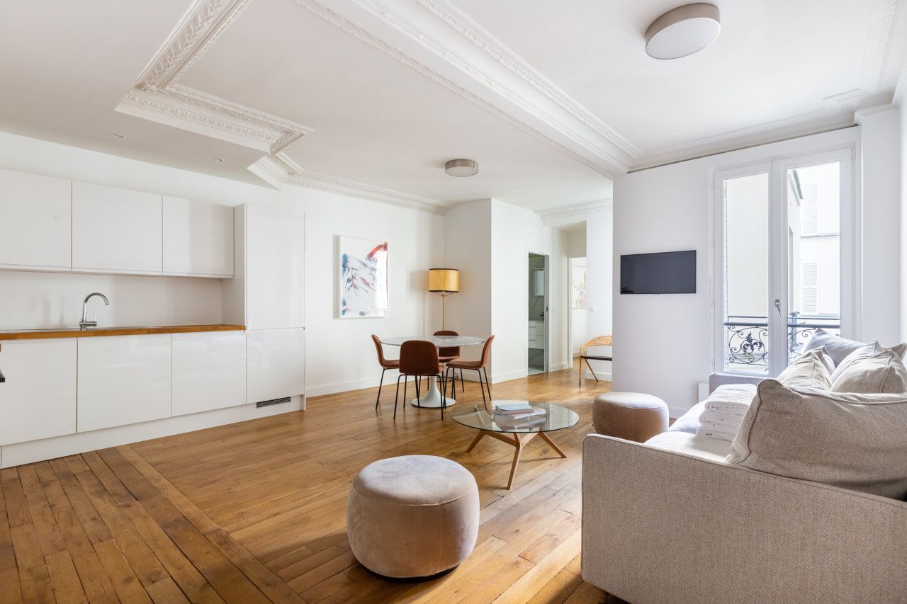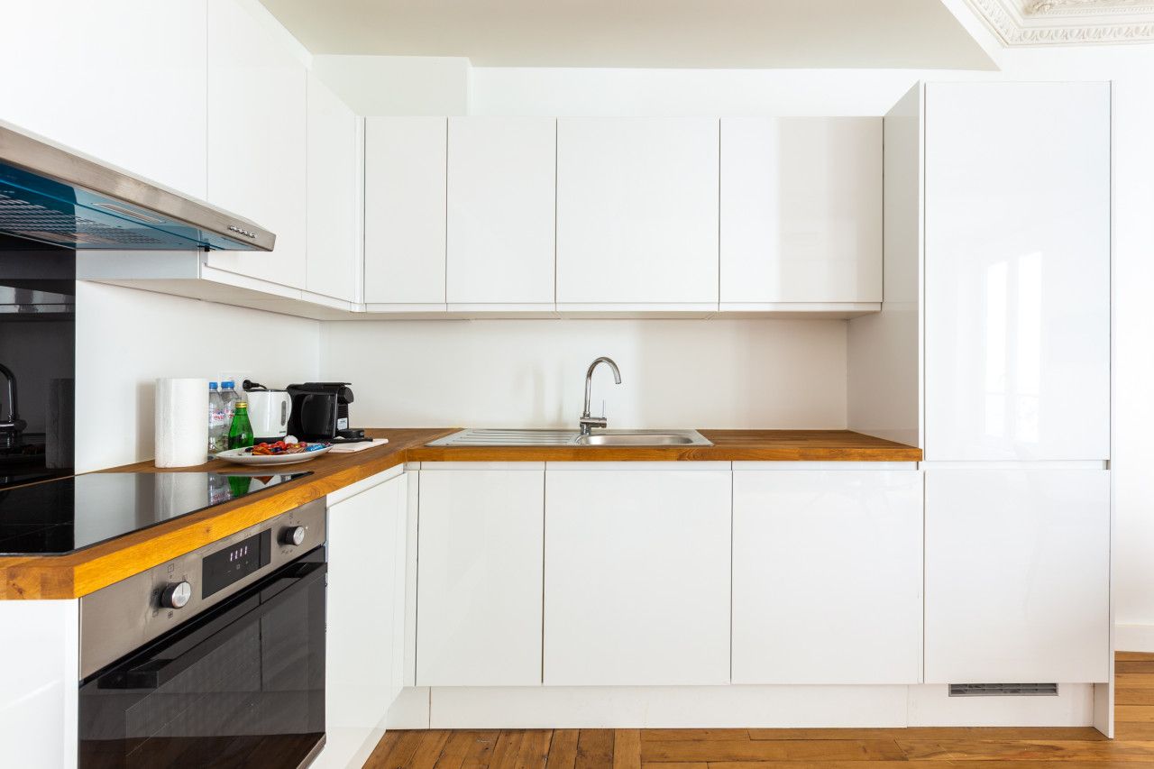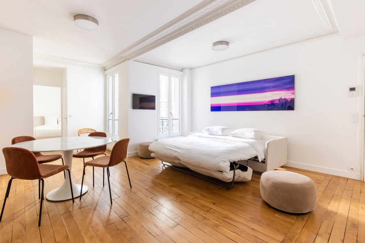Leisurely riverside walks are a short stroll away from this apartment in the 7th arrondissement. You’ll also be within easy walking distance of key attractions such as the Eiffel Tower and Hôtel des Invalides. There are so many bars, cafes, restaurants and shops, as well as parks to explore too. So that’s the fantastic location, the apartment itself has a bright open-plan living space to relax in after a busy day of sightseeing. This room also sleeps guests three and four on a sofa bed. There’s a modern kitchen as well – perfect for cooking some Parisian cuisine.