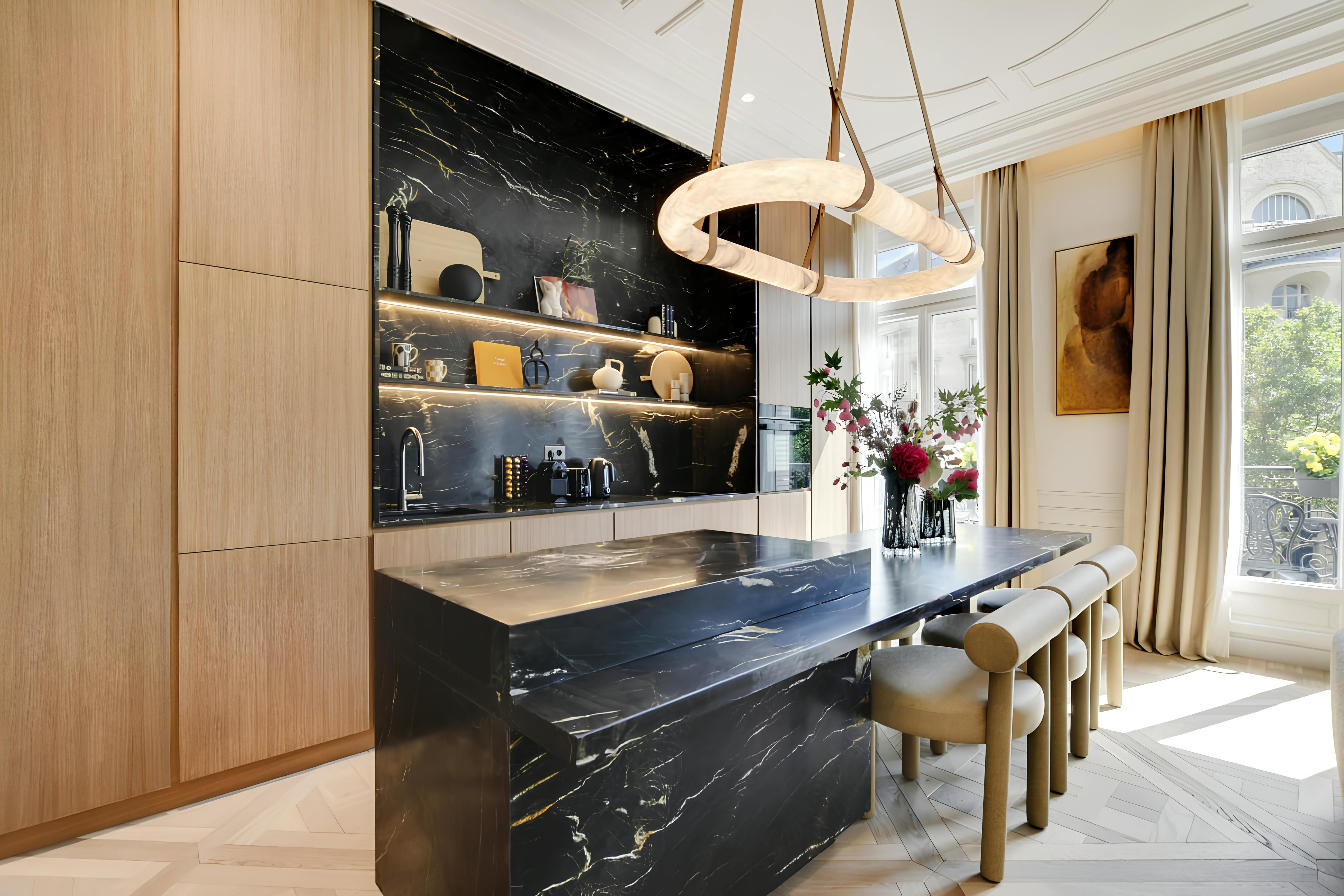 With high ceilings and expansive windows flooding the home with light, this apartment certainly packs a punch. Oozing elegance throughout, this is an ideal base for those wanting to explore the best that Paris has to offer from the heart of the Champs Élysées district. Our favourite spot is the cosy balcony, offering a peek down the street, while family gatherings around the marble island are guaranteed as one person takes on the role of chef in the kitchen. That said, with a whole host of French eateries lining the streets below, dining out is sure to be on the menu.