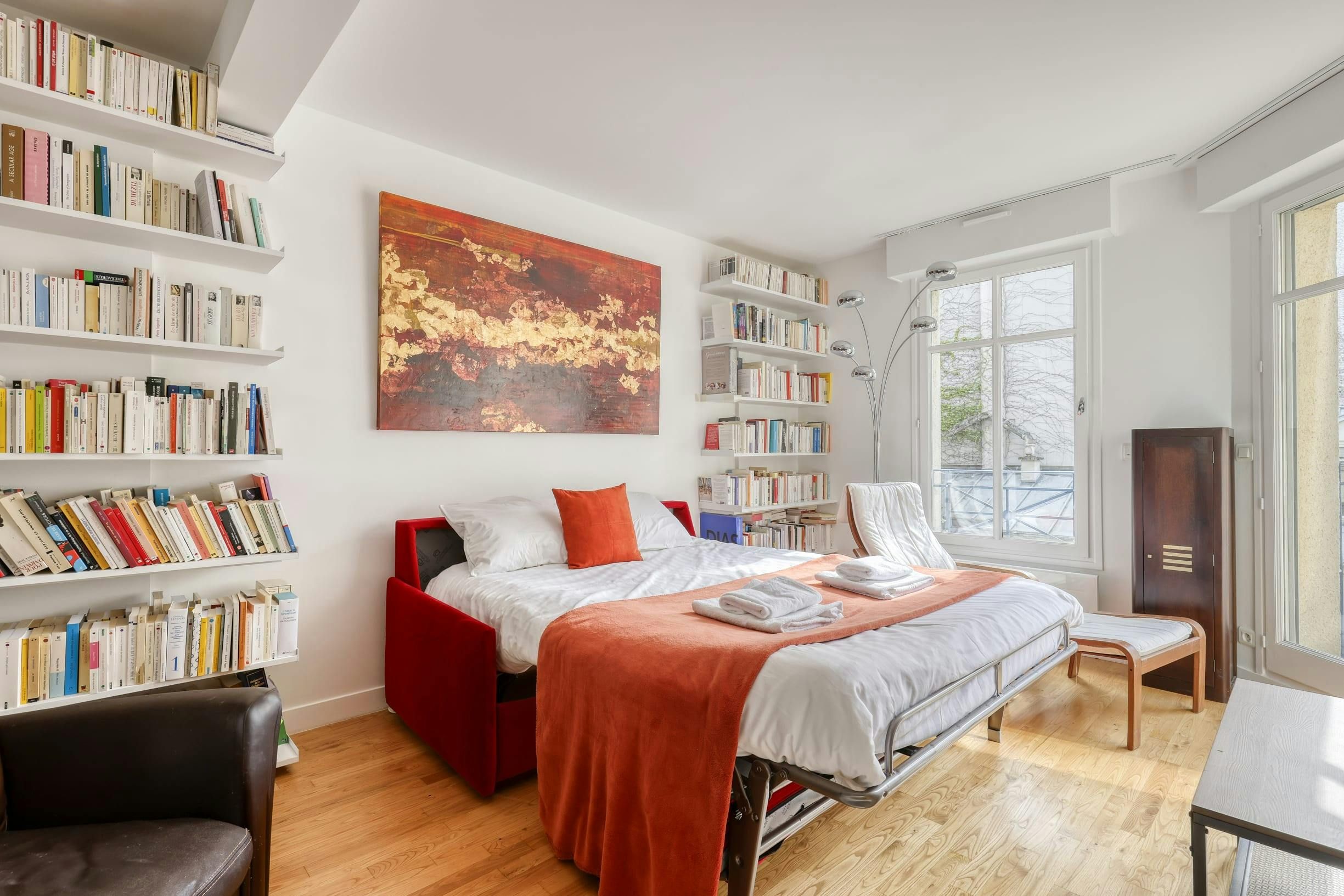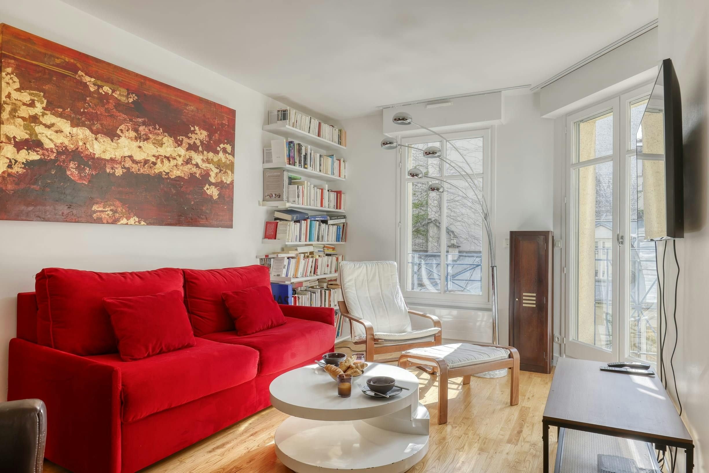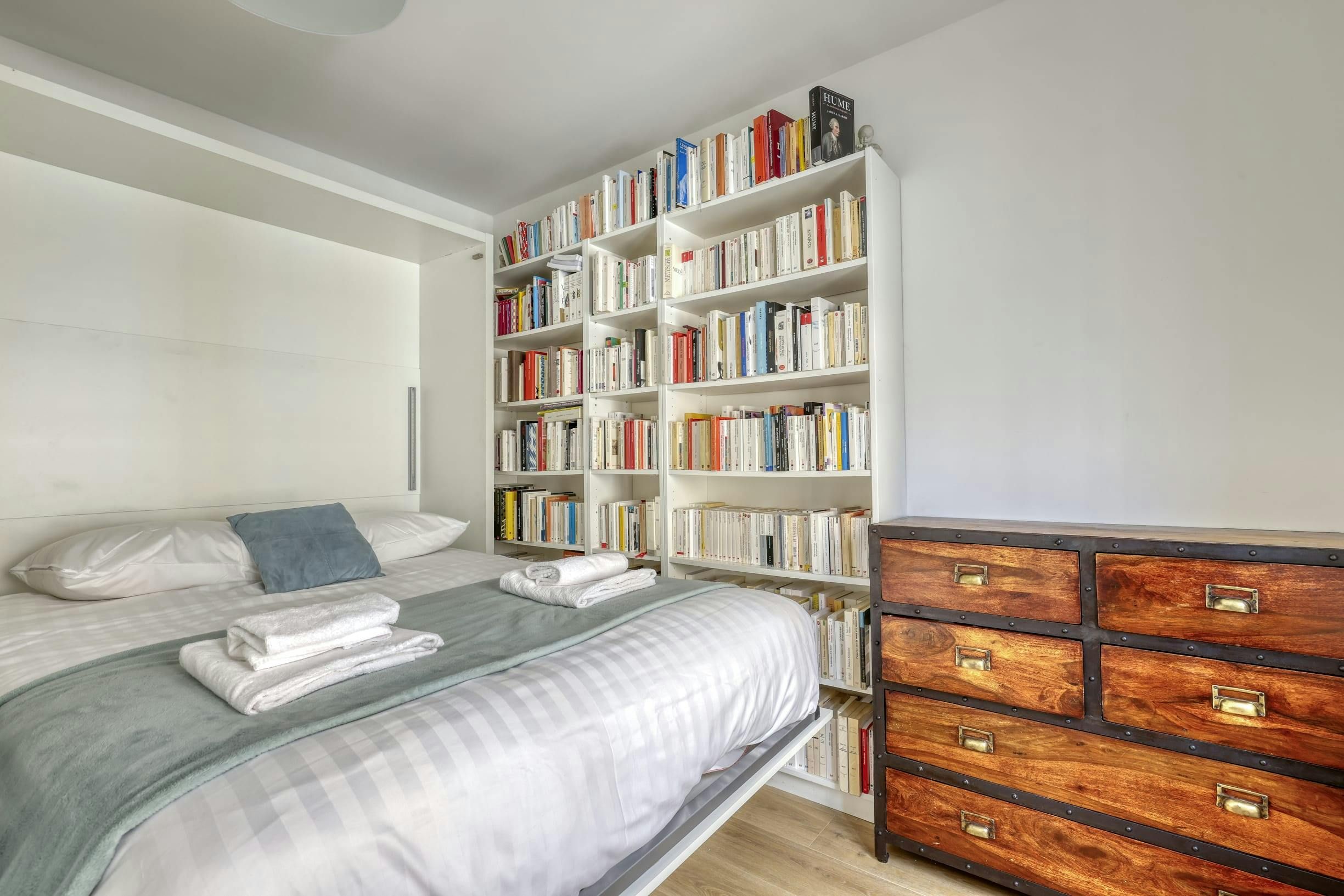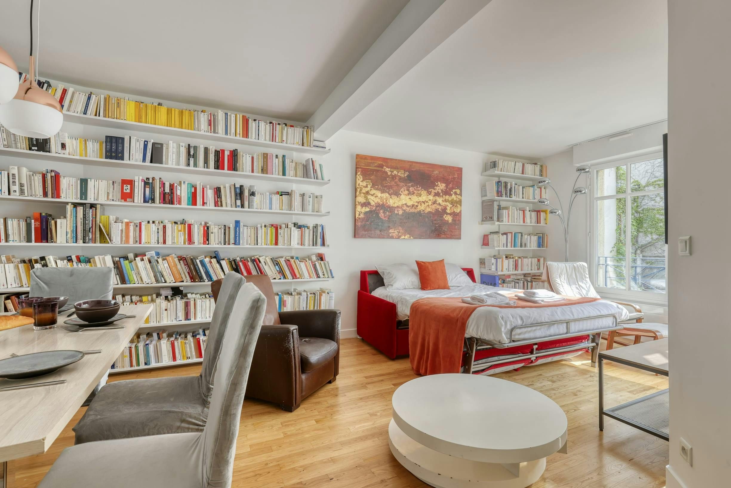 Perfect for the literary set, this bright apartment is filled with books and cosy spots to curl up for a read. We think it's comfortable and practical – the large kitchen is especially handy, and there's an added bonus of a small balcony where you can enjoy the sunshine. If needed, the sofa bed can accommodate two additional guests on request. You'll find it in the buzzy Latin Quarter, famous for its used bookstores and trendy eateries popular with Sorbonne students. This is an excellent spot to explore on foot – the Panthéon, Notre Dame, and the Jardin des Plantes are all within walking distance.
