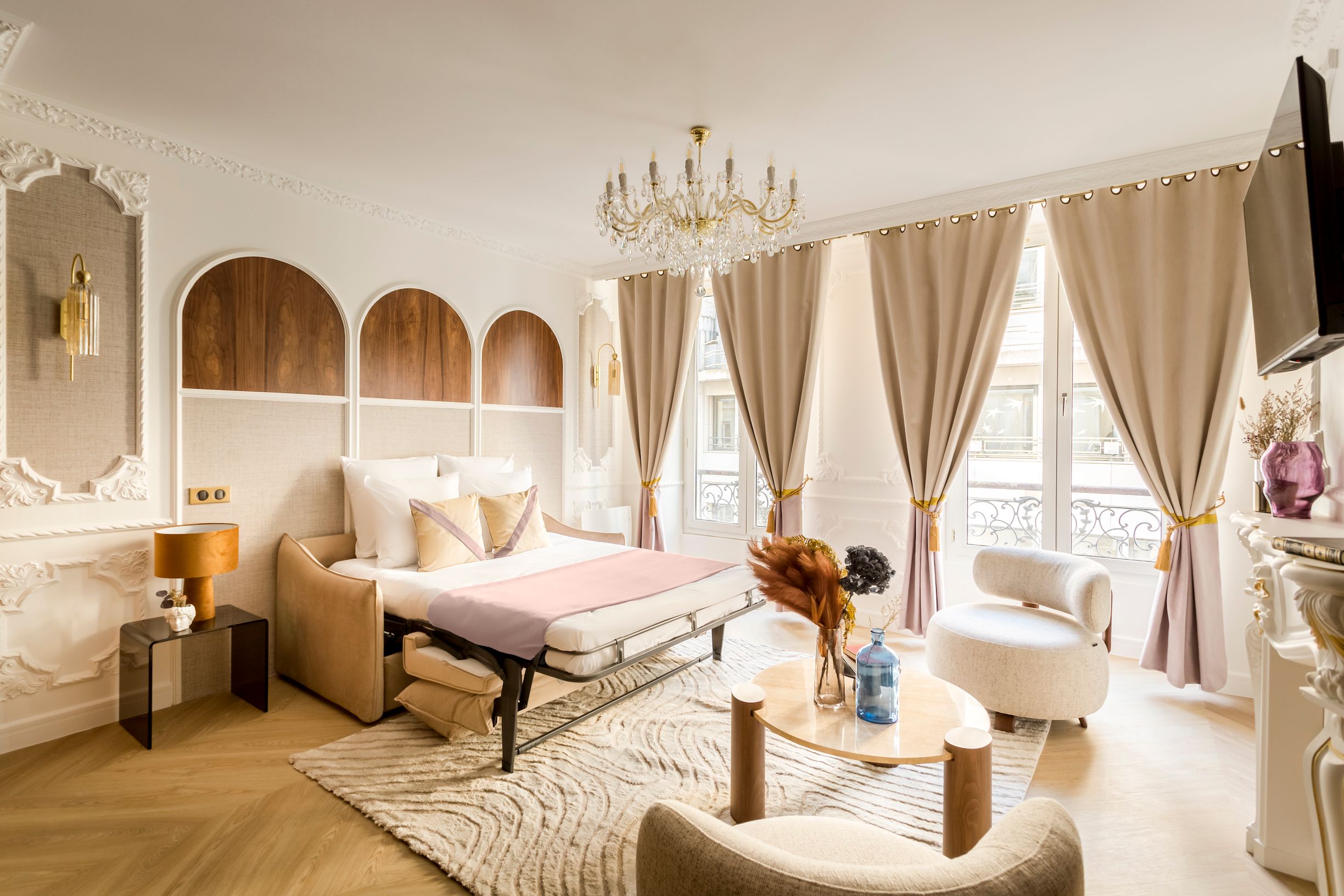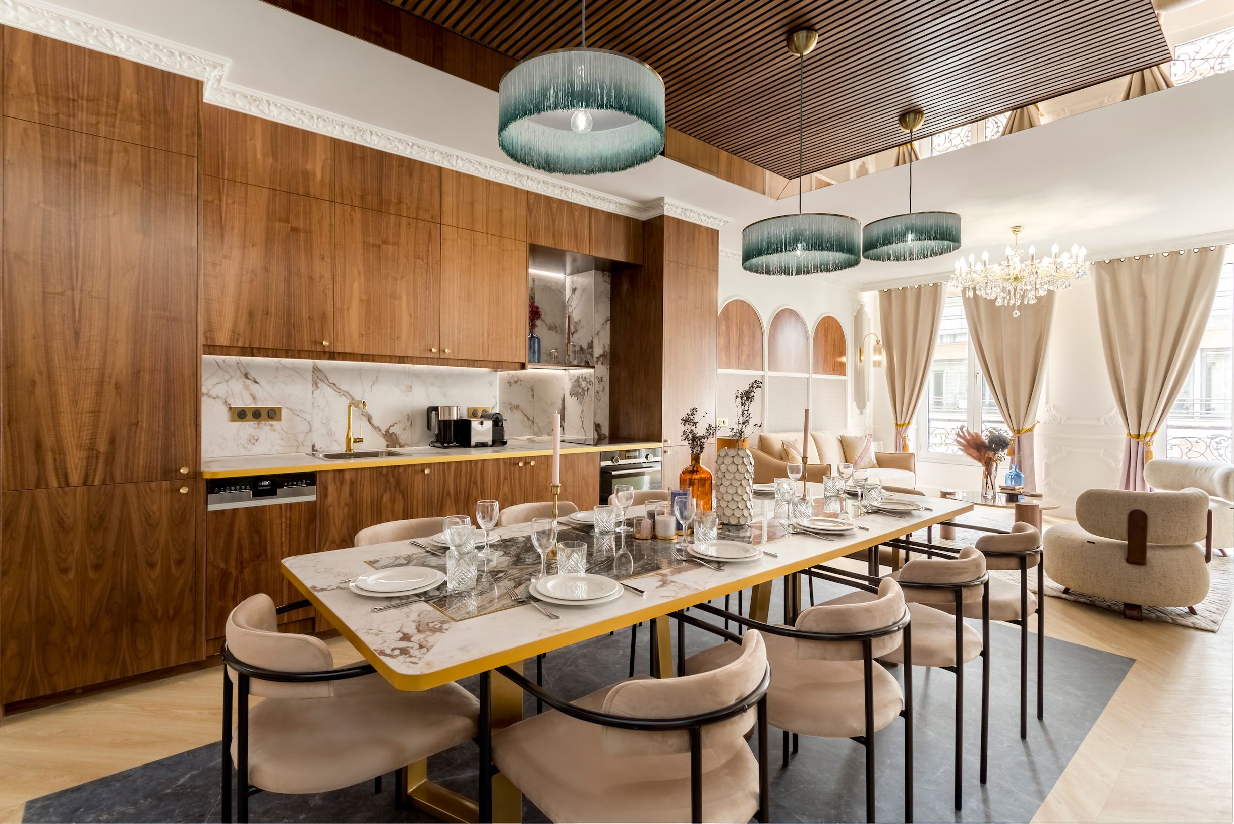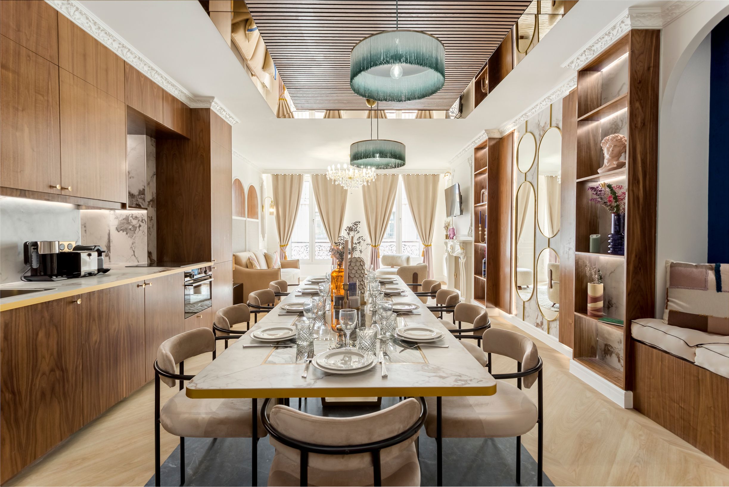 For those looking to experience the cultural highlights of Paris, this apartment a short stroll from the Palais Garnier, is ideal. It’s also within walking distance of the Louvre Museum and the Musée des Arts et Métiers. You’ll also find plenty of shops, cafes, and restaurants on your doorstep too. Or pick up some food from the nearby bakery or market and dine at home in this elegant apartment’s large open-plan living space. This room also sleeps guests seven and eight on a comfy sofa bed. Perfect for family or friends, this place is great for those looking for a luxurious haven in the City of Light.