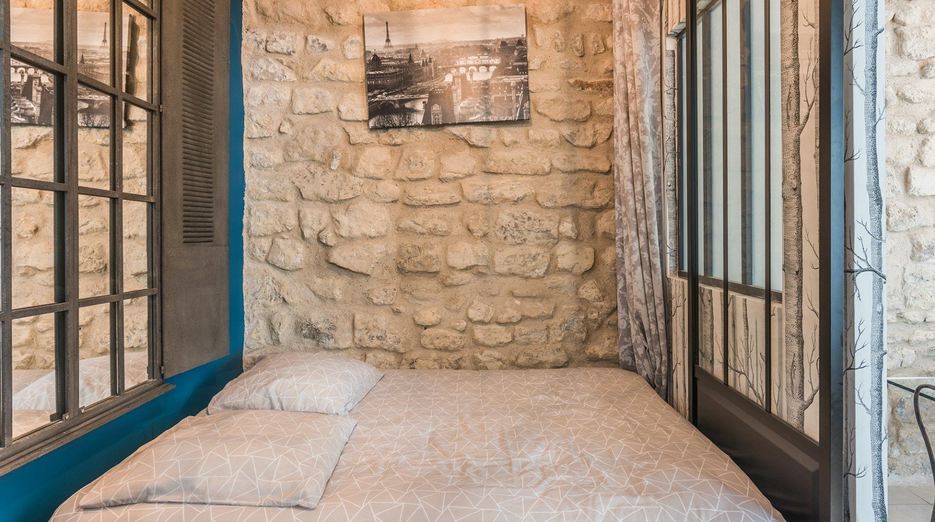Despite being in the centre of Paris, this apartment in Le Marais has a lot of rustic energy. It starts before you even go through the front door, which sits at the end of a paved and tree-lined courtyard. As well as being rather pretty, this off-street entrance means that it's much quieter than you would imagine given the location. Inside, there's an abundance of exposed stonework, as well as rugged sinks carved out of rocks and mirror frames made out of natural material. That being said, there are plenty of modern additions that act as a reminder you're in one of the most stylish cities in the world. The glass dining table is positively chic, as is the industrial light fitting above it. If this home gets you in the mood for more appreciation of fine artistry, Centre Pompidou is five minutes' walk down the road, while Musée National Picasso-Paris takes just over ten to reach.