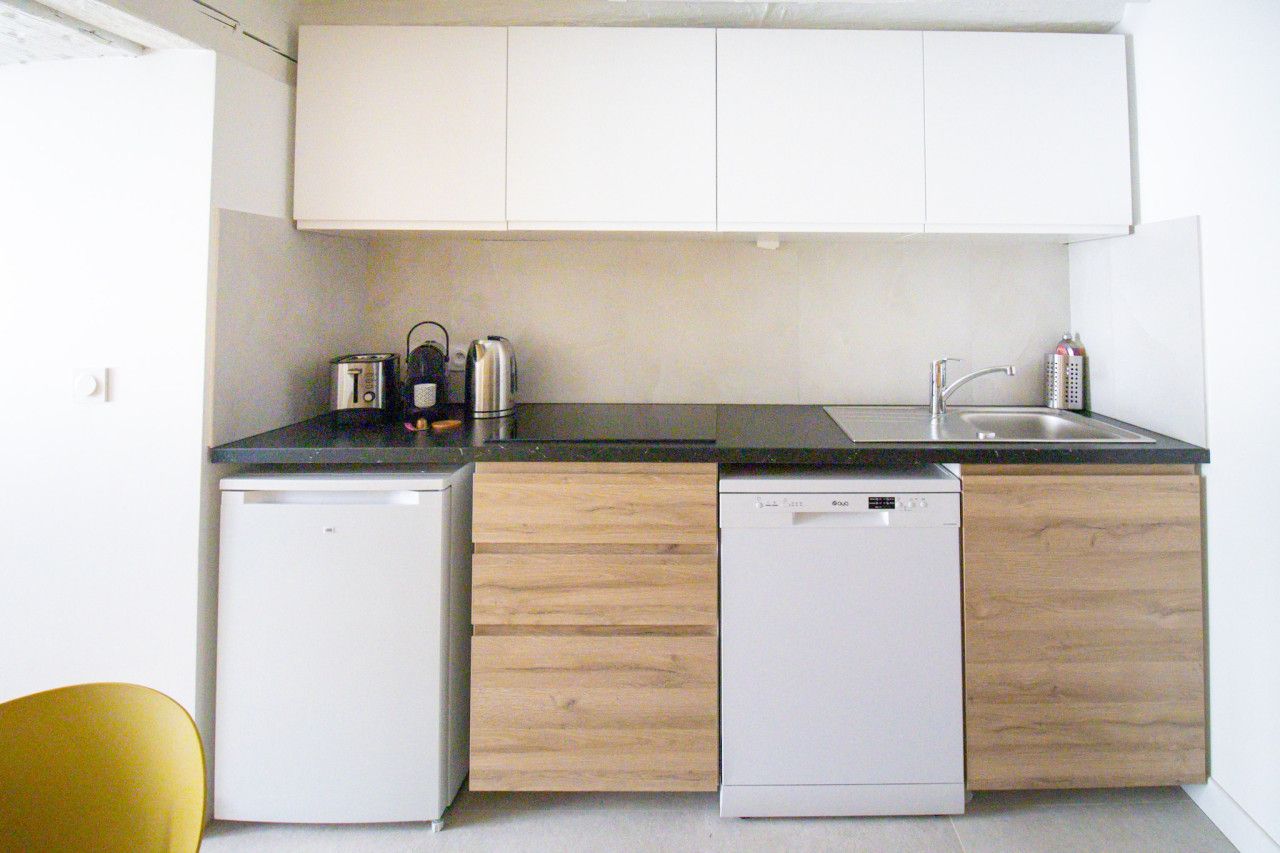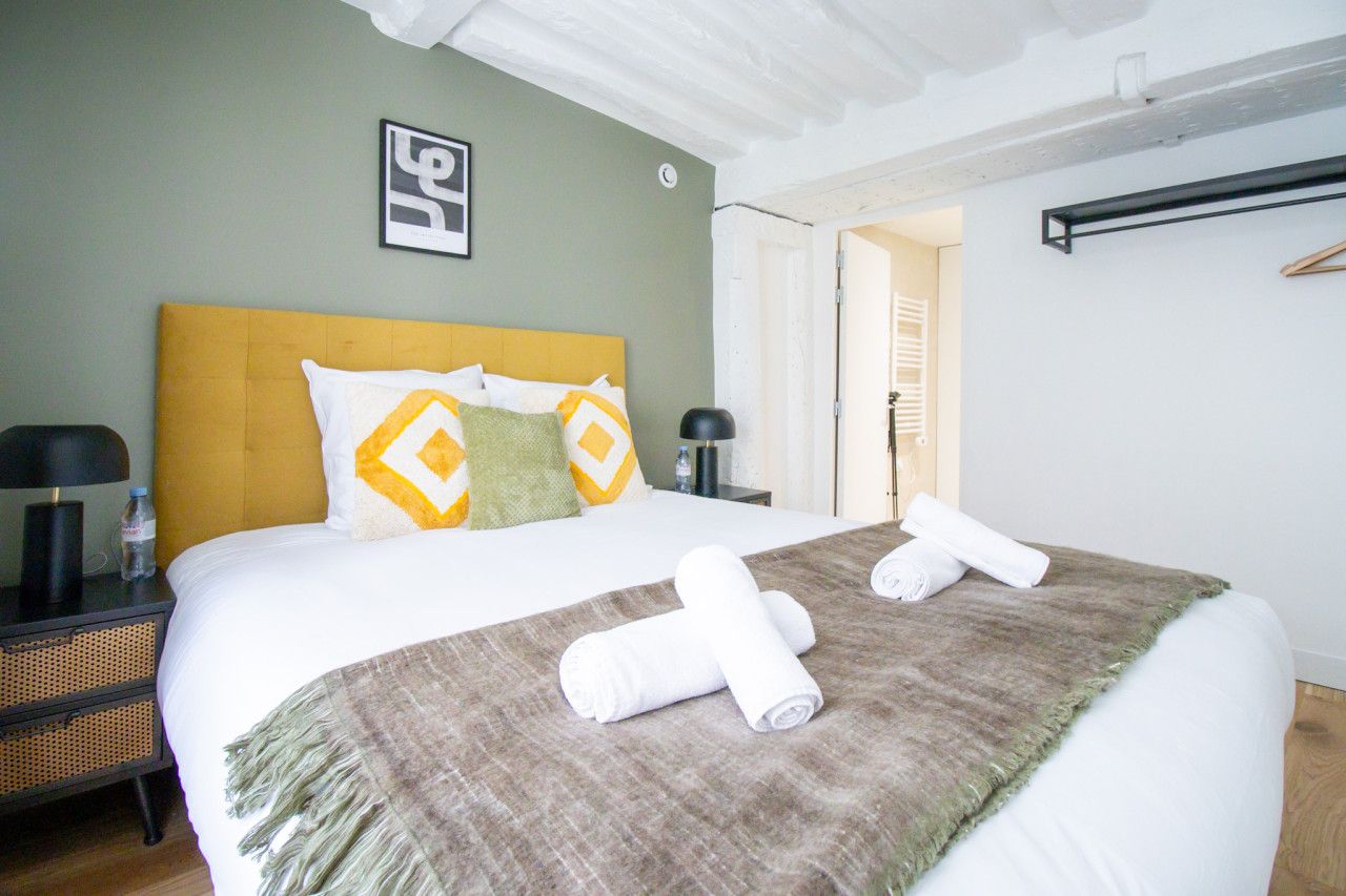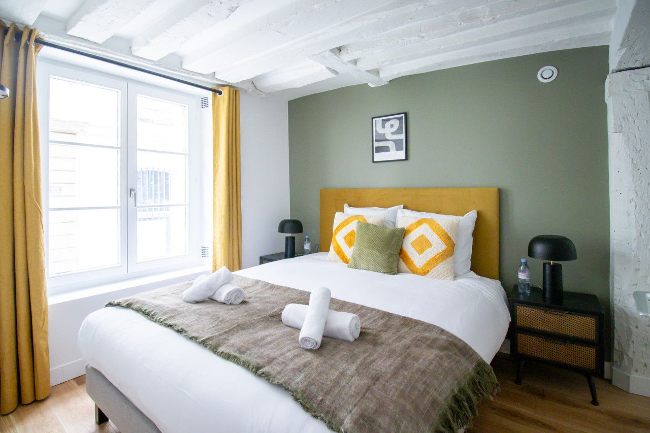 Located a short walk from the Place des Vosges, you’ll find plenty of things to see and do when you stay at this apartment. The National Archives Museum and the Pompidou Centre are within easy walking distance too. As you’d expect of such a great location, there are lots of cafes, bars and restaurants to explore. Having a number of eateries nearby is convenient, as this apartment’s kitchen doesn’t have an oven. We love the character features in the open-plan living space (this room also sleeps two guests on a sofa bed at full occupancy). This place is ideal for an unforgettable stay in the City of Light.