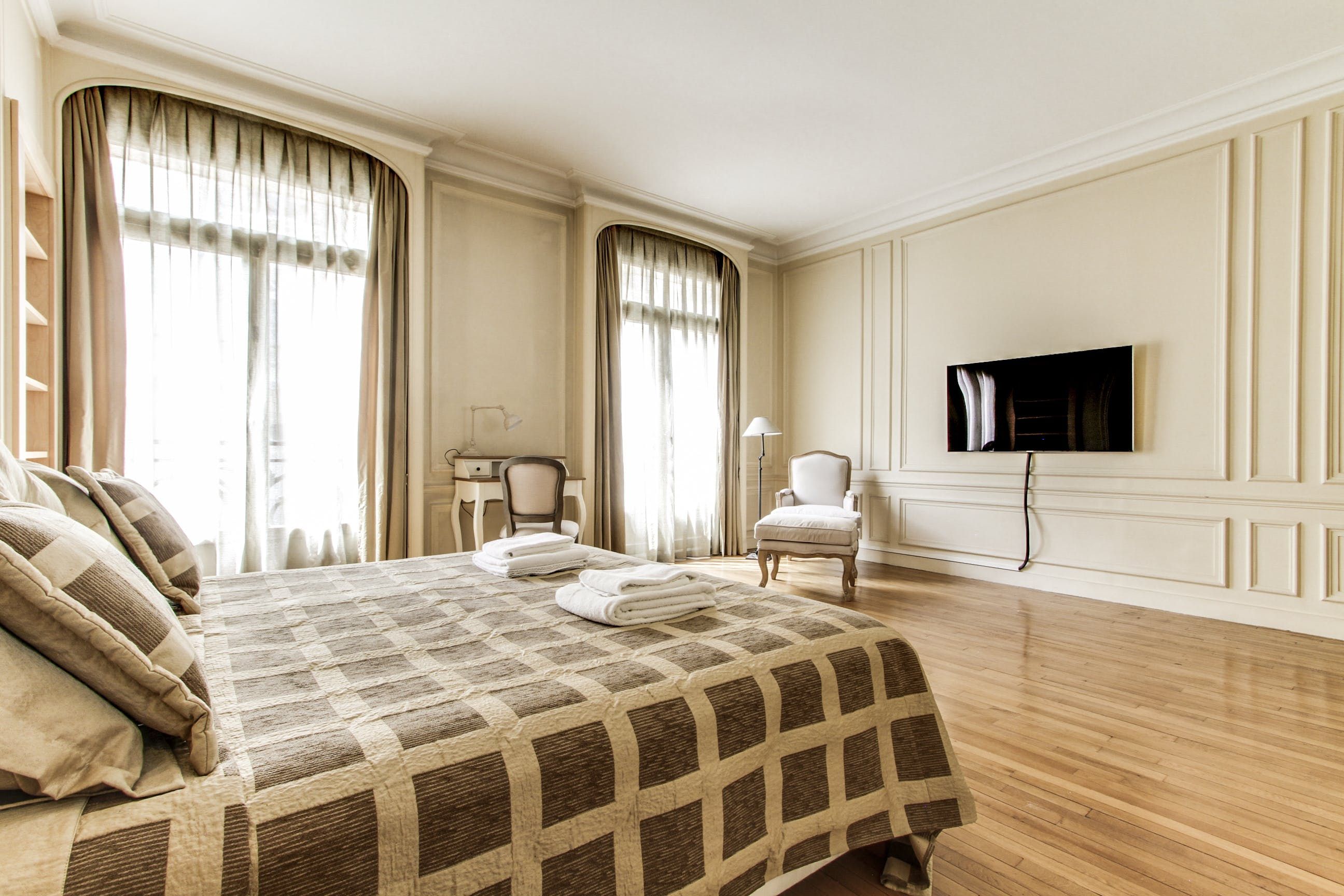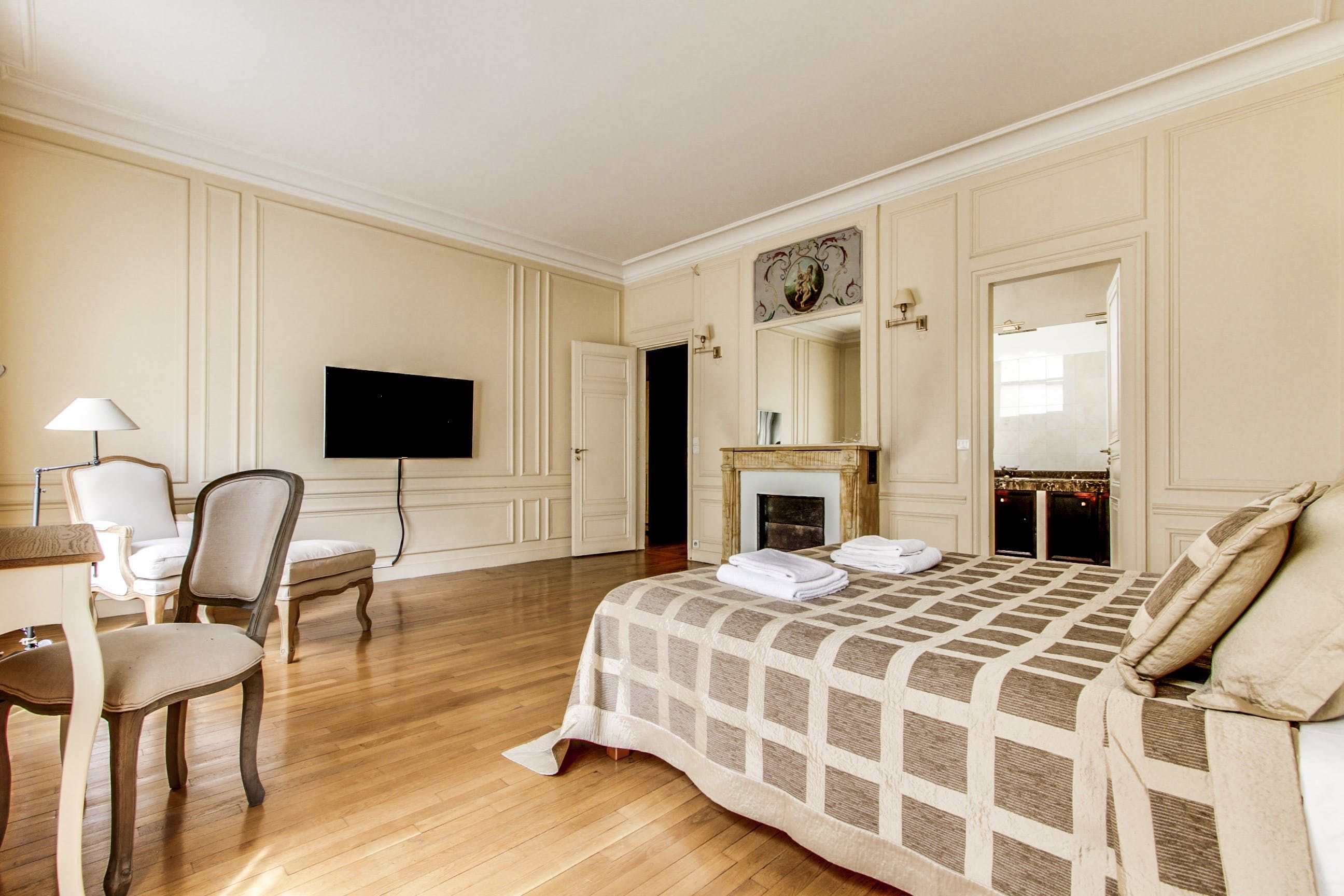 Just a short stroll from the elegant Champs-Élysées and the Arc de Triomphe, this apartment puts you in a privileged position from which to experience all of Paris’ grandeur. The home’s chic location is reflected in its classical decor, though a few areas feel a little worn – in particular, the bathrooms. That said, there’s plenty of room for everyone to spread out across the four bedrooms, and the dining room is the perfect place to gather for celebratory soirees when you’re not out sampling the local food scene.