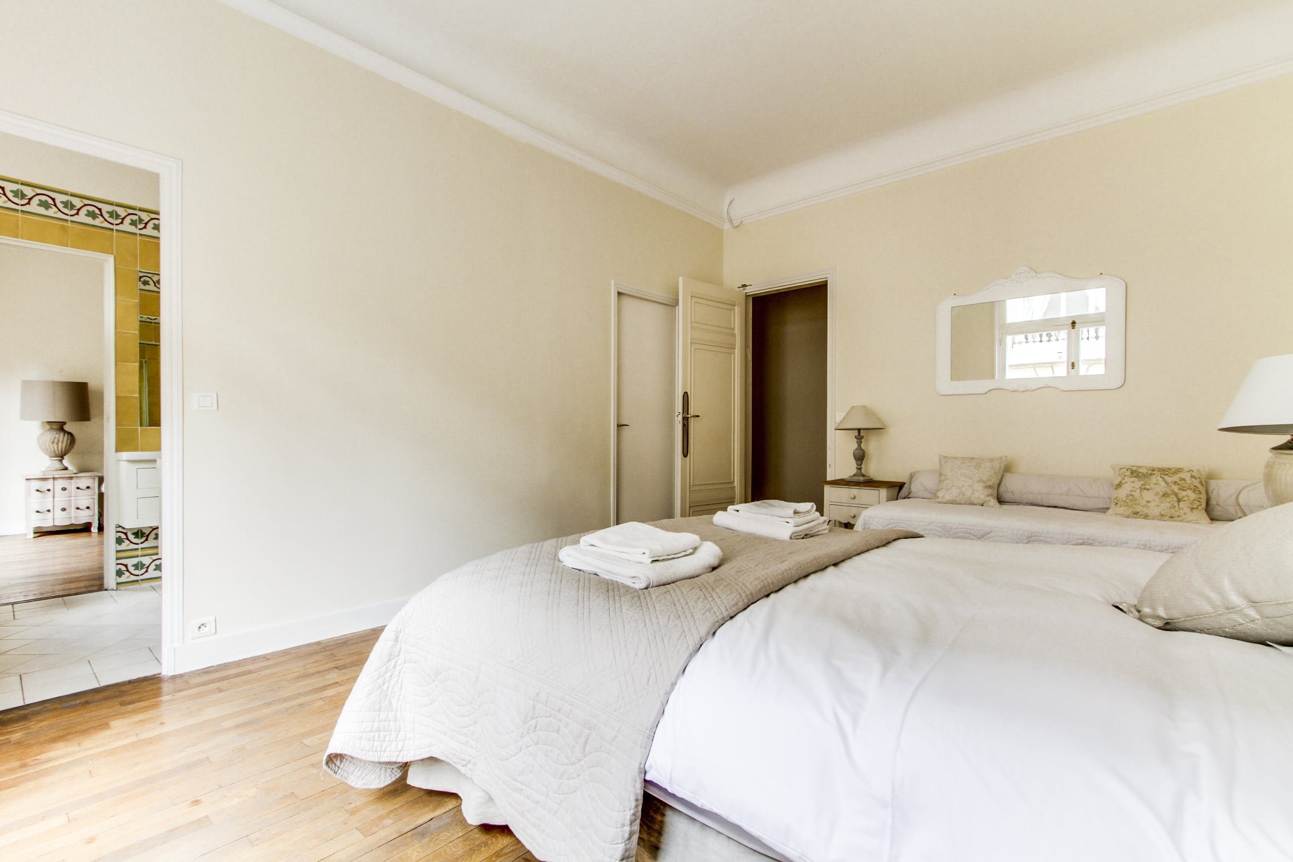 Home truths: *You may need to climb some stairs to access the apartment. *Given the home's central spot, expect to hear some street noise throughout your stay. *We think some areas of this home could do with a refresh. In particular, the bathrooms look a little tired. Two of the bedrooms share a Jack and Jill bathroom. *The kitchen's dining table only has five seats around it. That said, there's a separate dining room where you'll find enough seating for all guests. *There's no parking here, but we recommend skipping the car and exploring Paris on foot or by public transport instead. The nearest supermarket is a five-minute walk away.