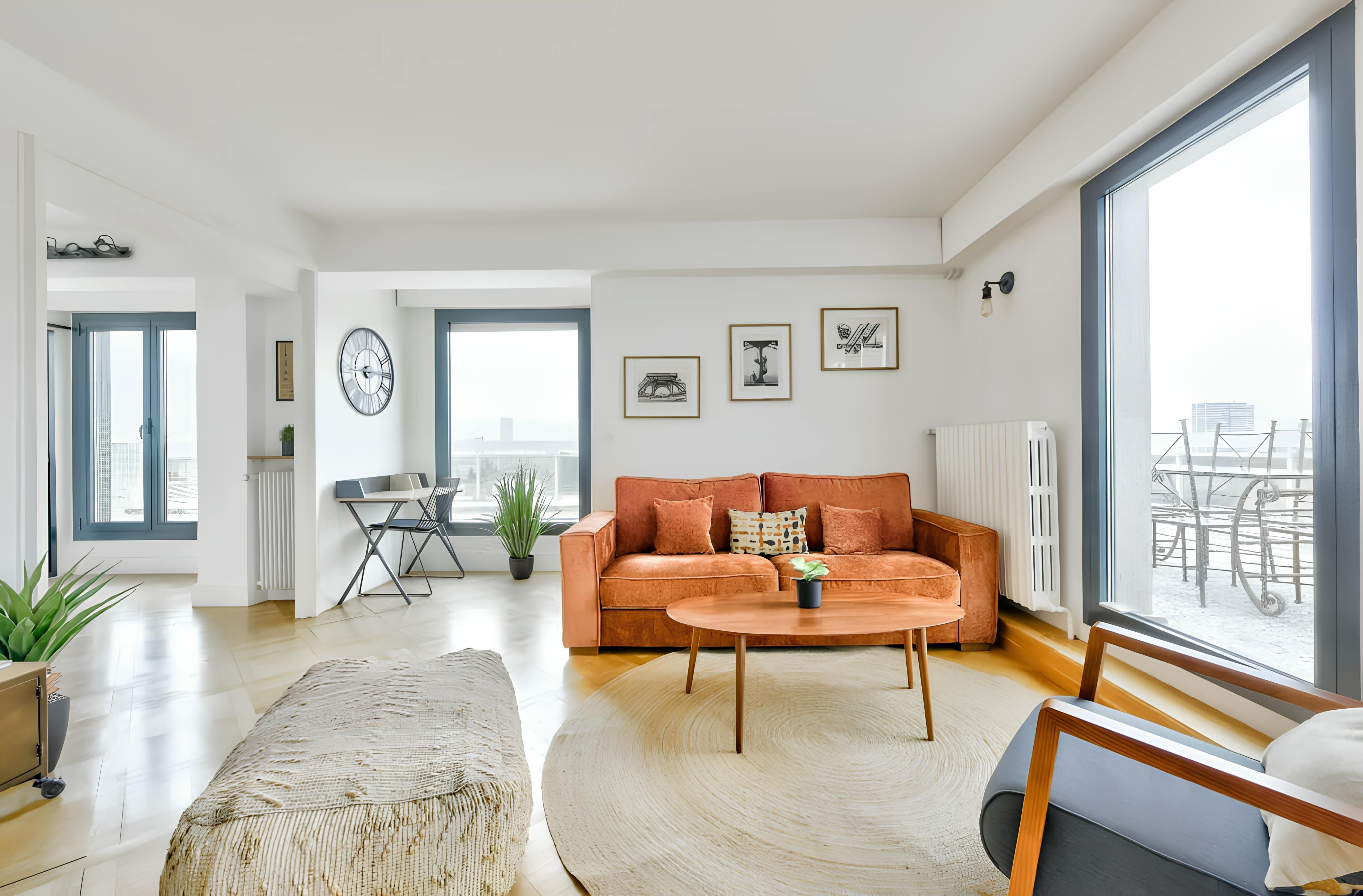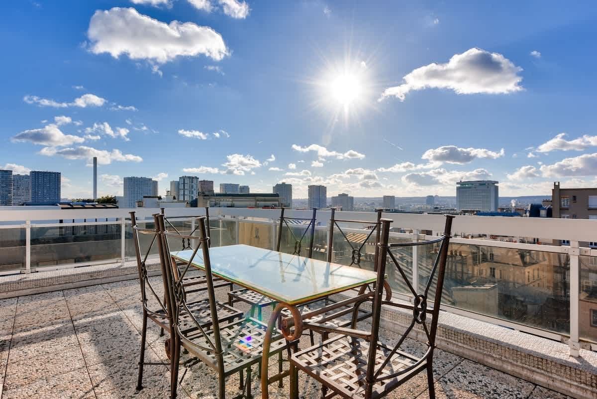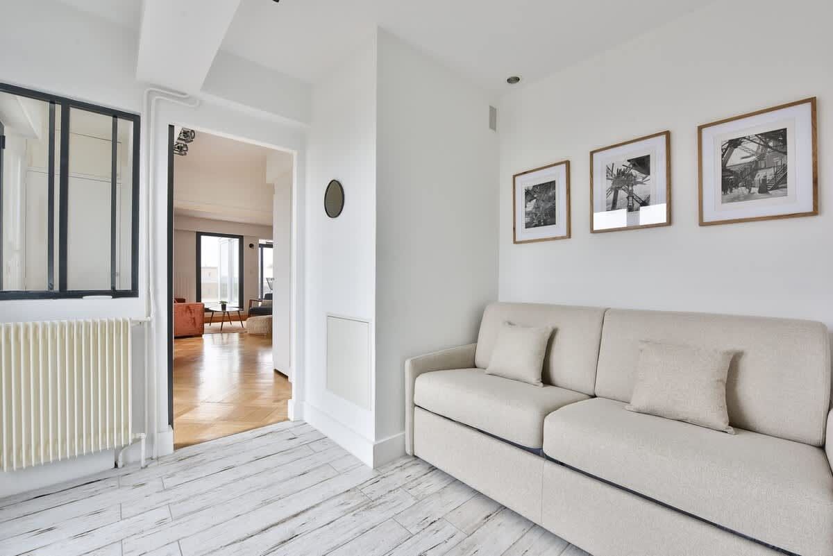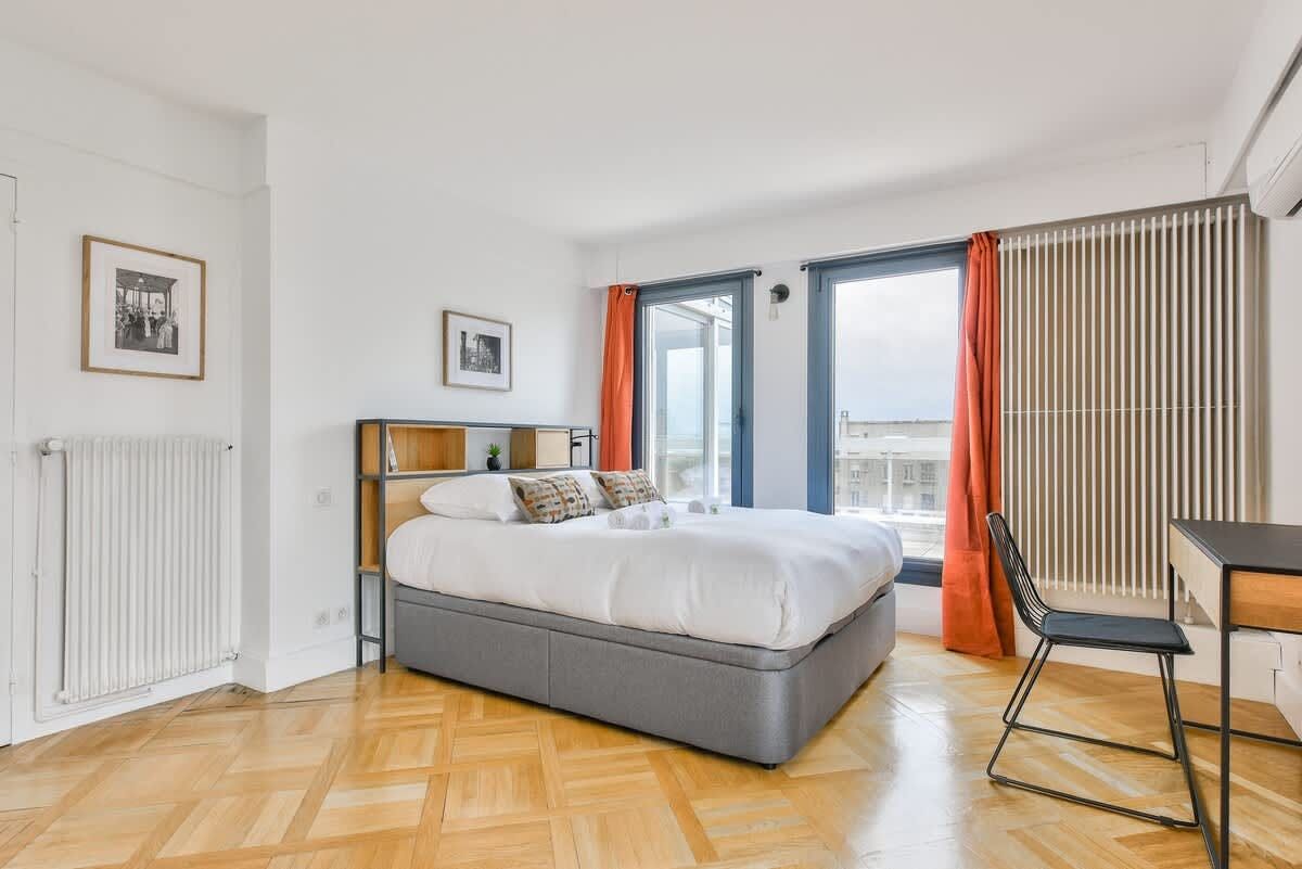 Does a stay in Paris get any better than waking up to views of the Eiffel Tower? This apartment comes with terraces and sweeping 360-degree views of the city, so you can watch the sunrise with your coffee and toast the evening as the tower sparkles after dark. Inside, there’s an open-plan kitchen and living area, a bright dining space wrapped in glass windows, and even a desk corner for catching up on emails. And when you’re ready to explore, you’re perfectly placed – the Seine, Trocadéro, and metro stops that whisk you across the city are all just a short stroll away.
