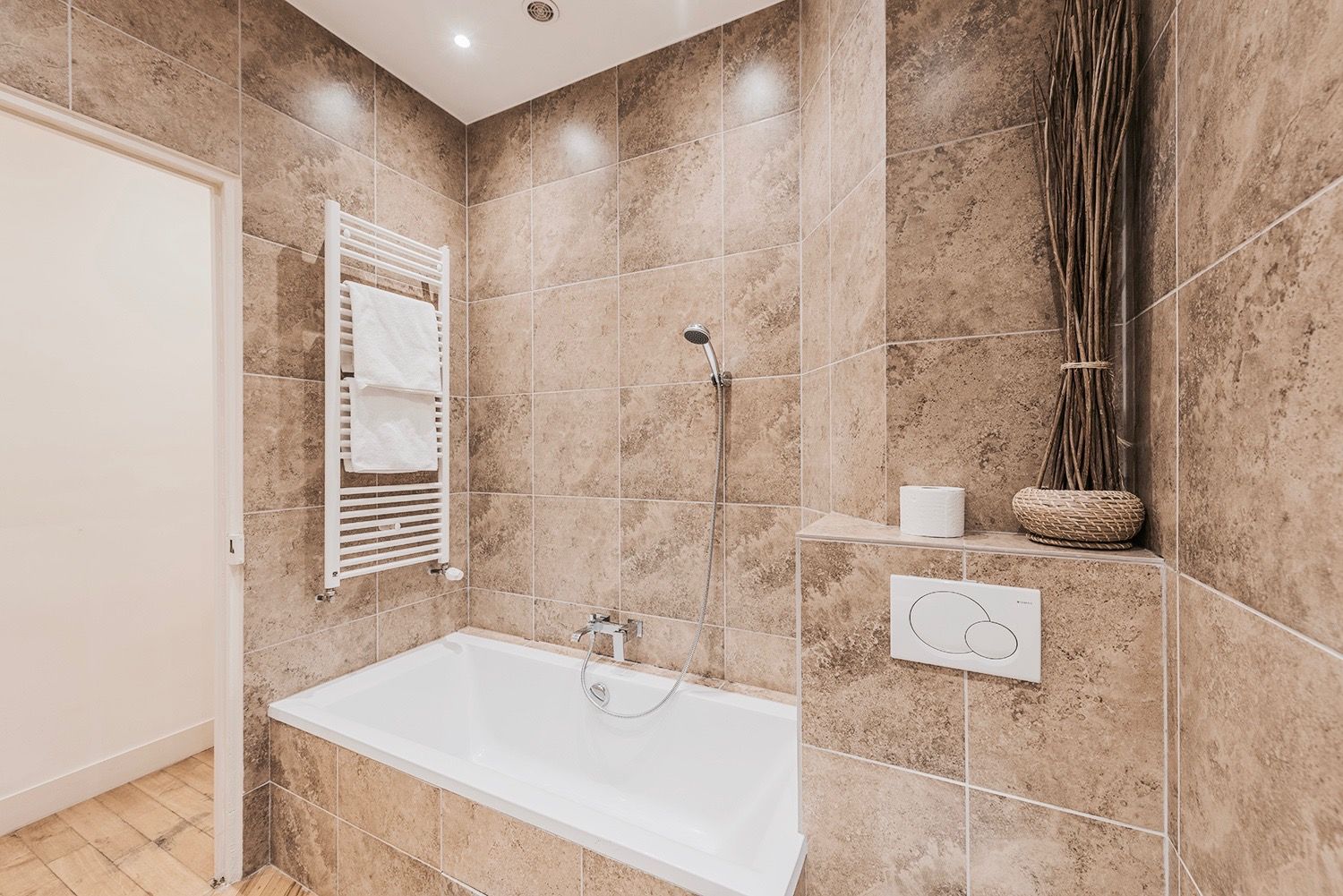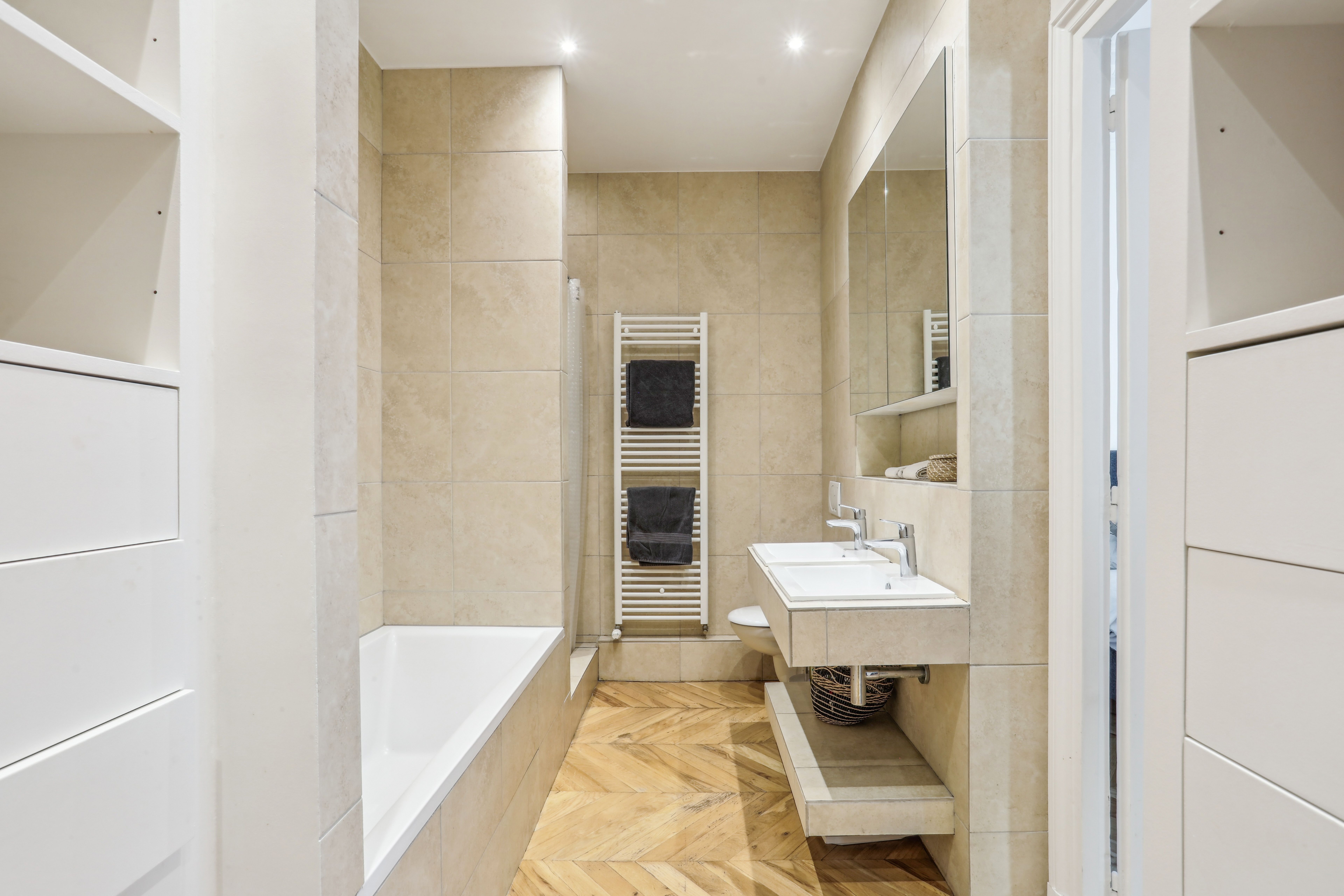 You’ll be surrounded by stories at every turn in this Parisian apartment. Encounter intriguing original details in the decorative marble fireplace and ornate Russian chimney surround, along with antique furniture, a period tapestry and various portraits, all handed down through the generations of your host's family. While tradition and quality is the driving force behind the design, don’t think of this as a stuffy old museum — it's also full of modern conveniences, including a sleek monochrome kitchen. During your stay, you'll be located in the trendy Canal Saint-Martin neighbourhood, in which the next waterside bar or buzzy restaurant is never too far away. Alternatively, the galleries and quirky boutiques of Le Marais are a twenty-minute stroll to the south.