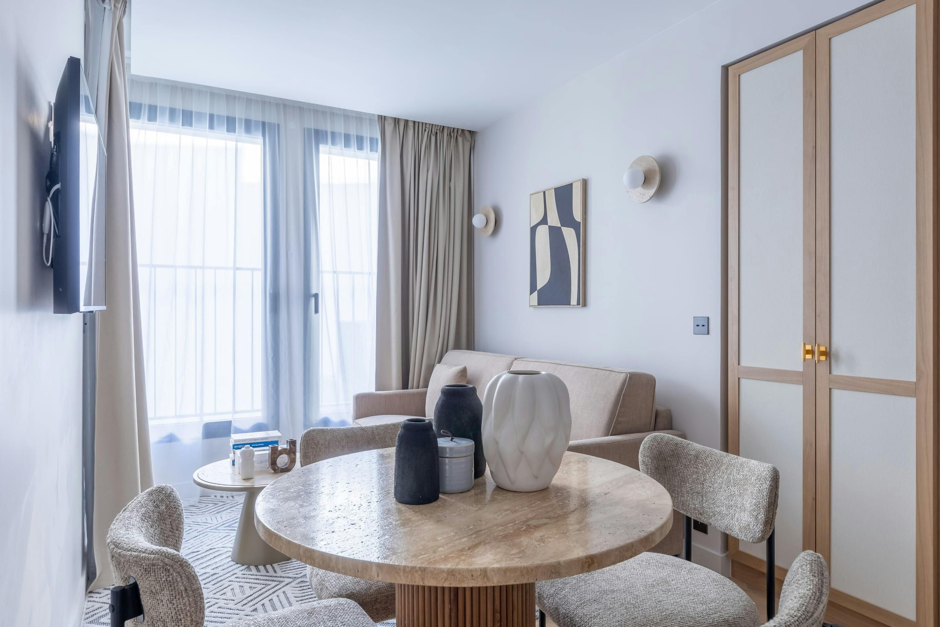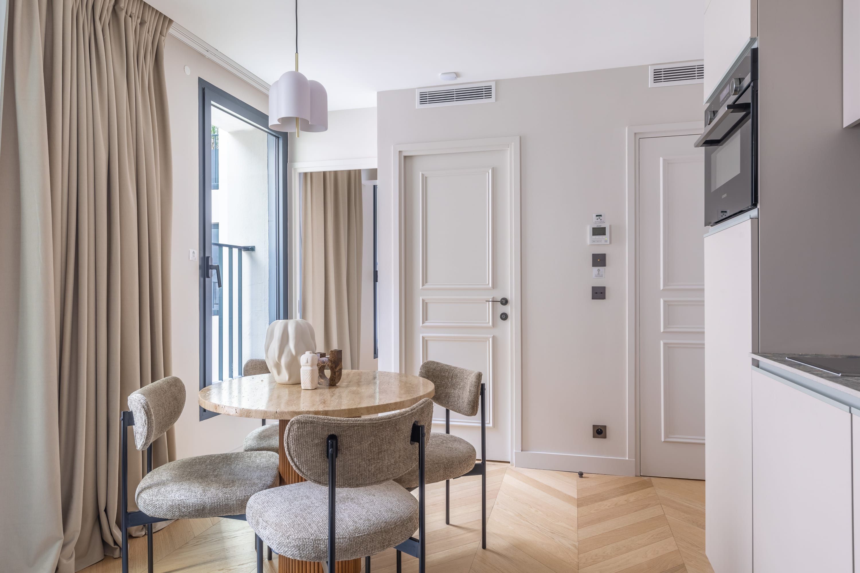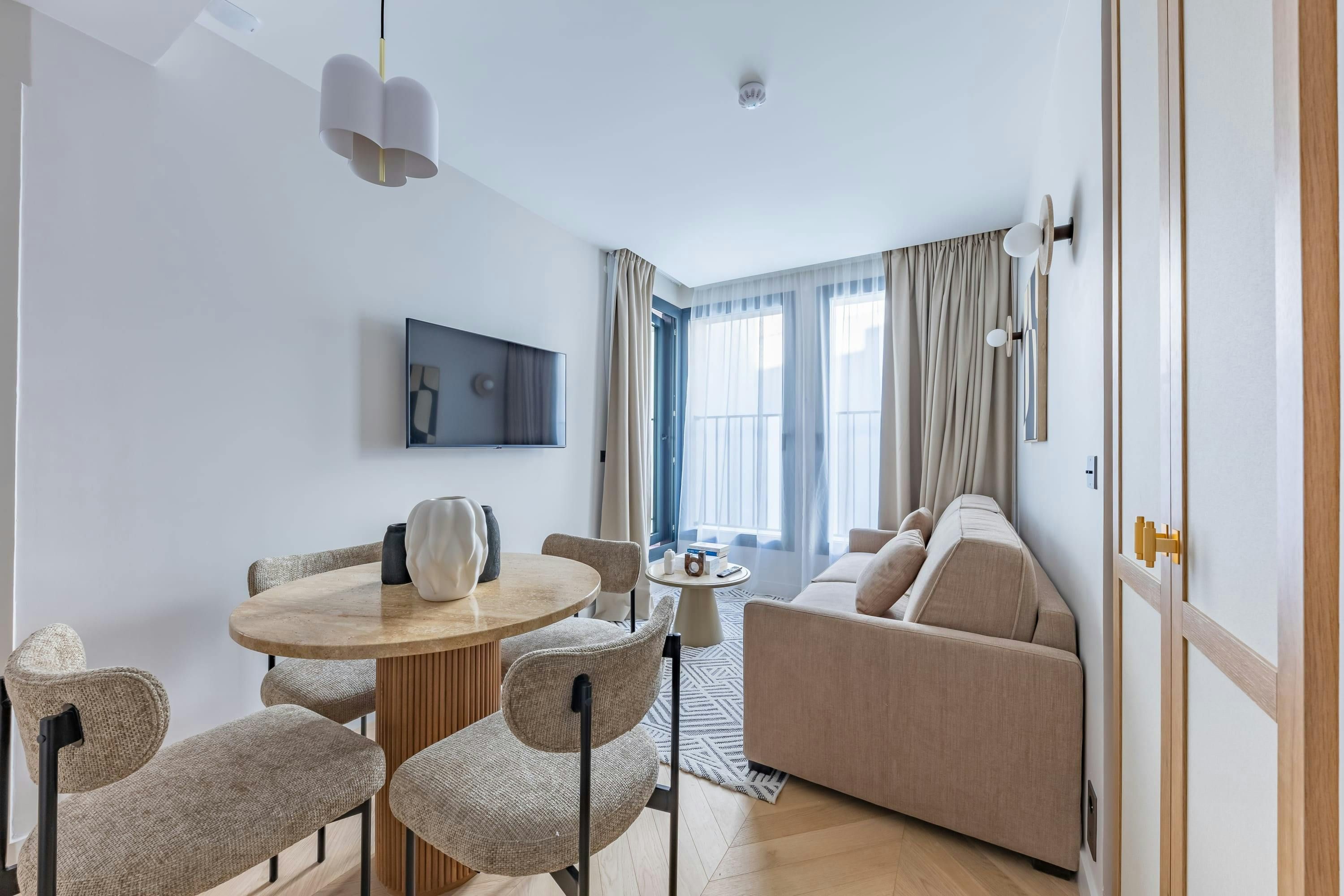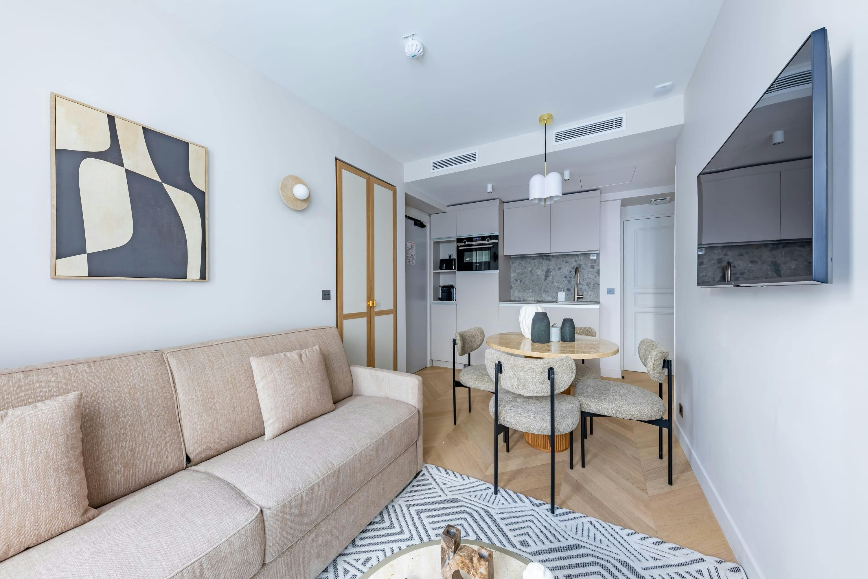 This contemporary apartment brings you to the magical heart of Paris. Nestled between Opera and Madeleine, you’ll be spoiled for choice when it comes to iconic sights, restaurants and cafes. It’s also extremely well connected with public transport links making it easy to explore further afield. Back at home, you’ll find plenty of space to stretch out and relax with two living rooms, two kitchens and a balcony. There’s a Nespresso machine for your morning coffee, a desk for your after-hours studies, even a shared gym for morning workouts and all the essentials you could need to settle in and make it your own.