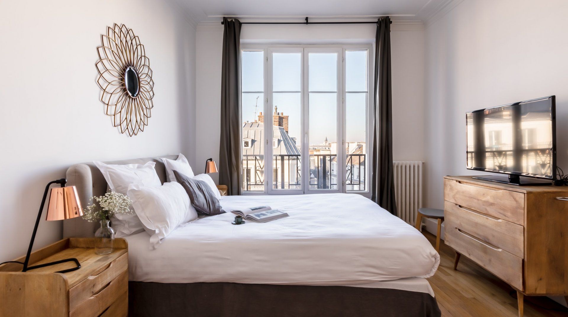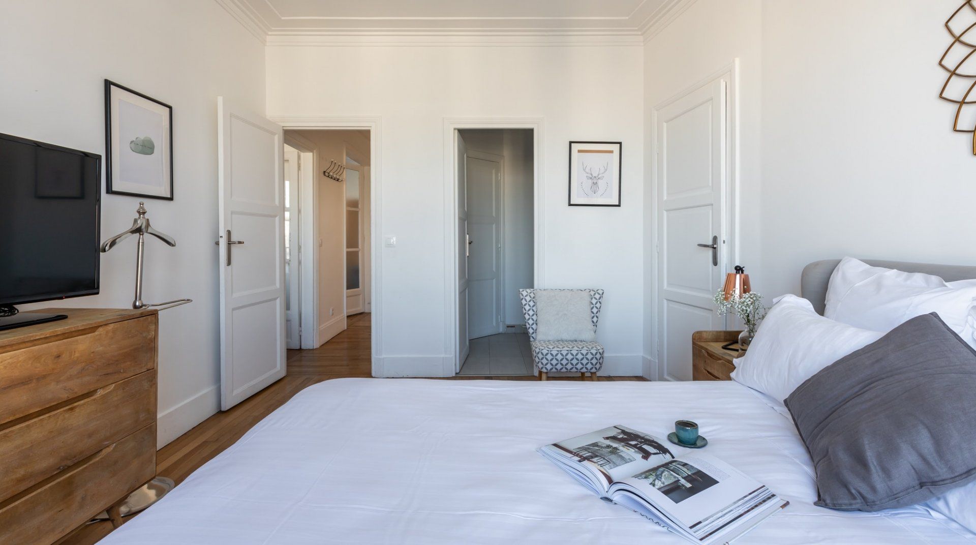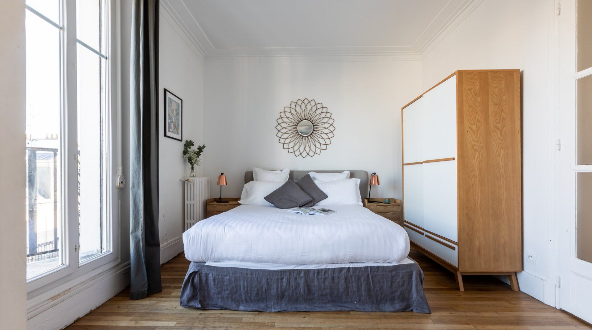 In an art nouveau building located in the latin quarter, you can find this light and bright home that ticks every box. The large windows are luminous, drenching each room in light, as well as offering stunning views of the Eiffel tower. Decorated in a Scandi-style, the rooms are minimal and pared-back, yet cosy and warm – a delight after a day's exploration. The kitchen is well-equipped, ideal to cook up a storm, but there's only a small counter to enjoy dinner at, so a better choice for those who want to eat out.
