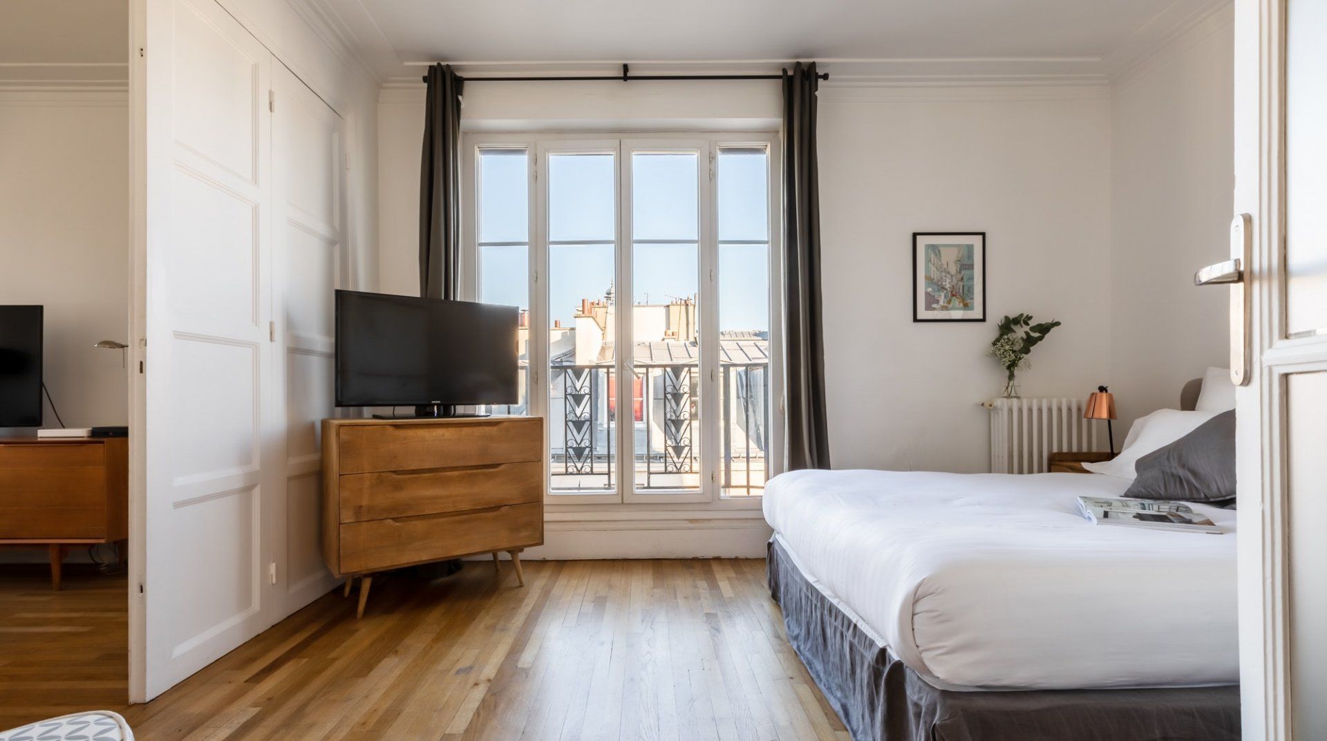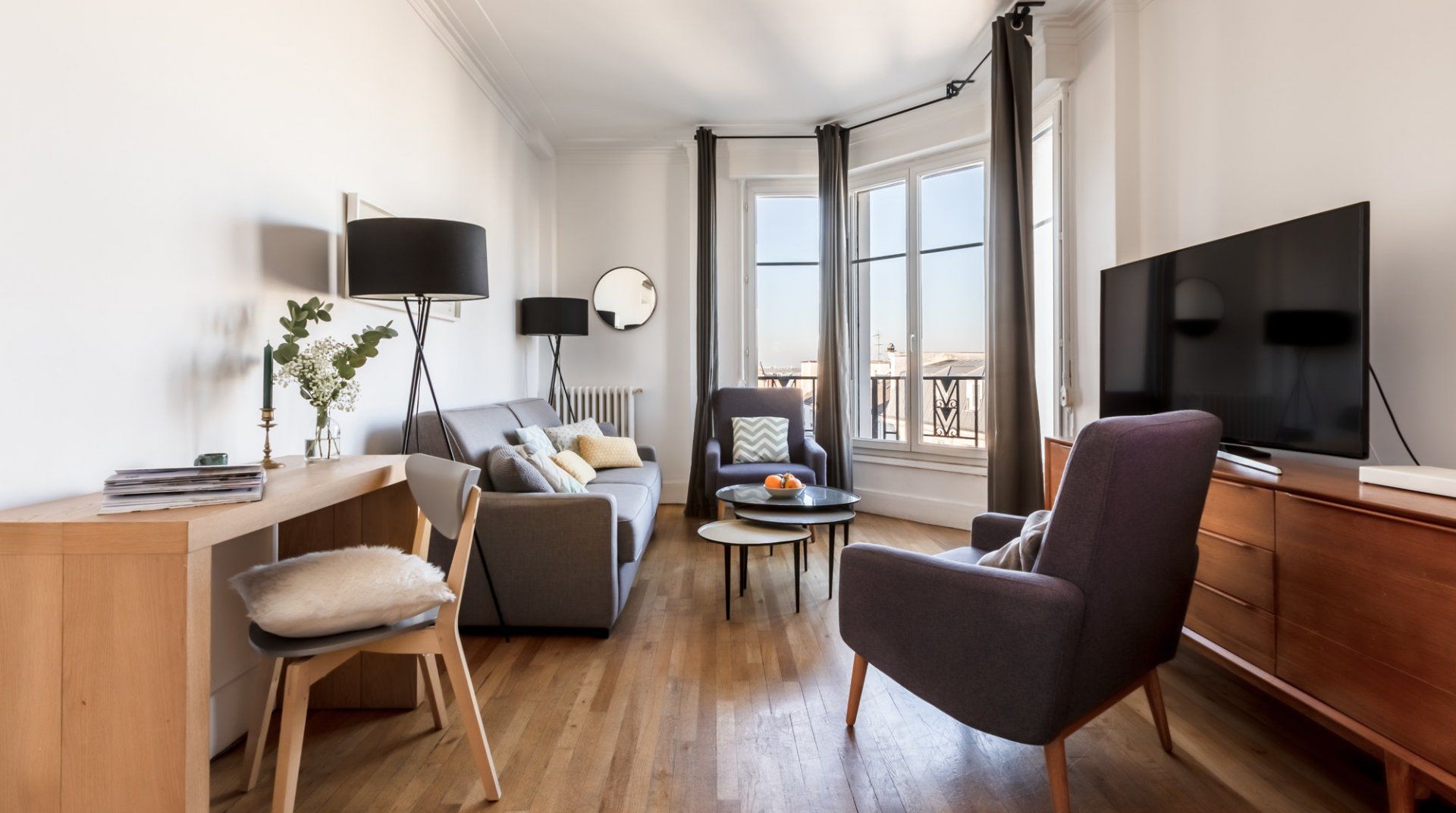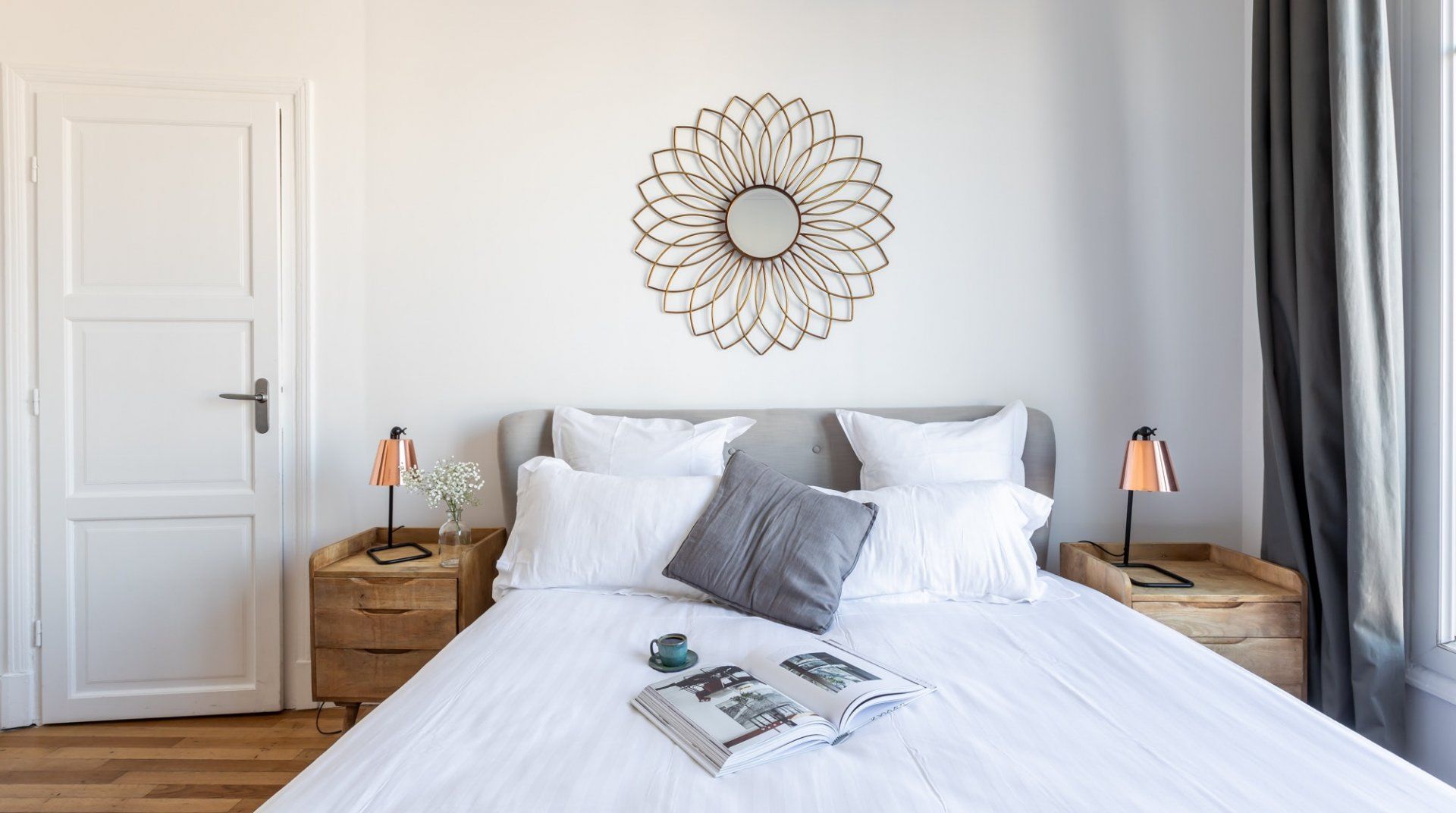 In an art nouveau building located in the latin quarter, you can find this light and bright home that ticks every box. The large windows are luminous, drenching each room in light, as well as offering stunning views of the Eiffel tower. Decorated in a Scandi-style, the rooms are minimal and pared-back, yet cosy and warm – a delight after a day's exploration. The kitchen is well-equipped, ideal to cook up a storm, but there's only a small counter to enjoy dinner at, so a better choice for those who want to eat out.