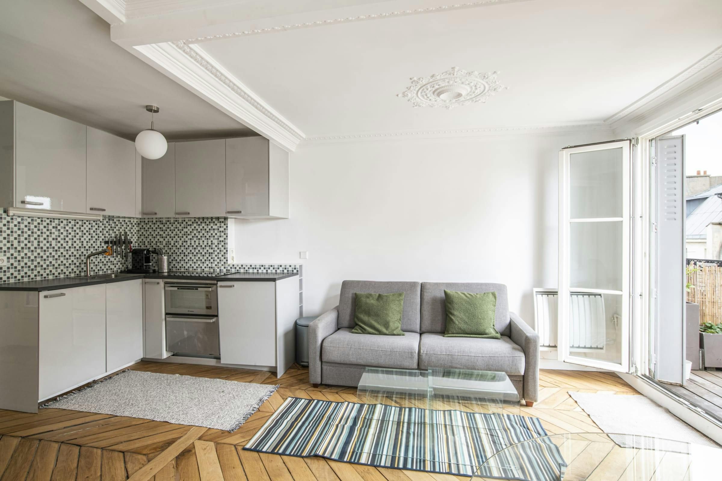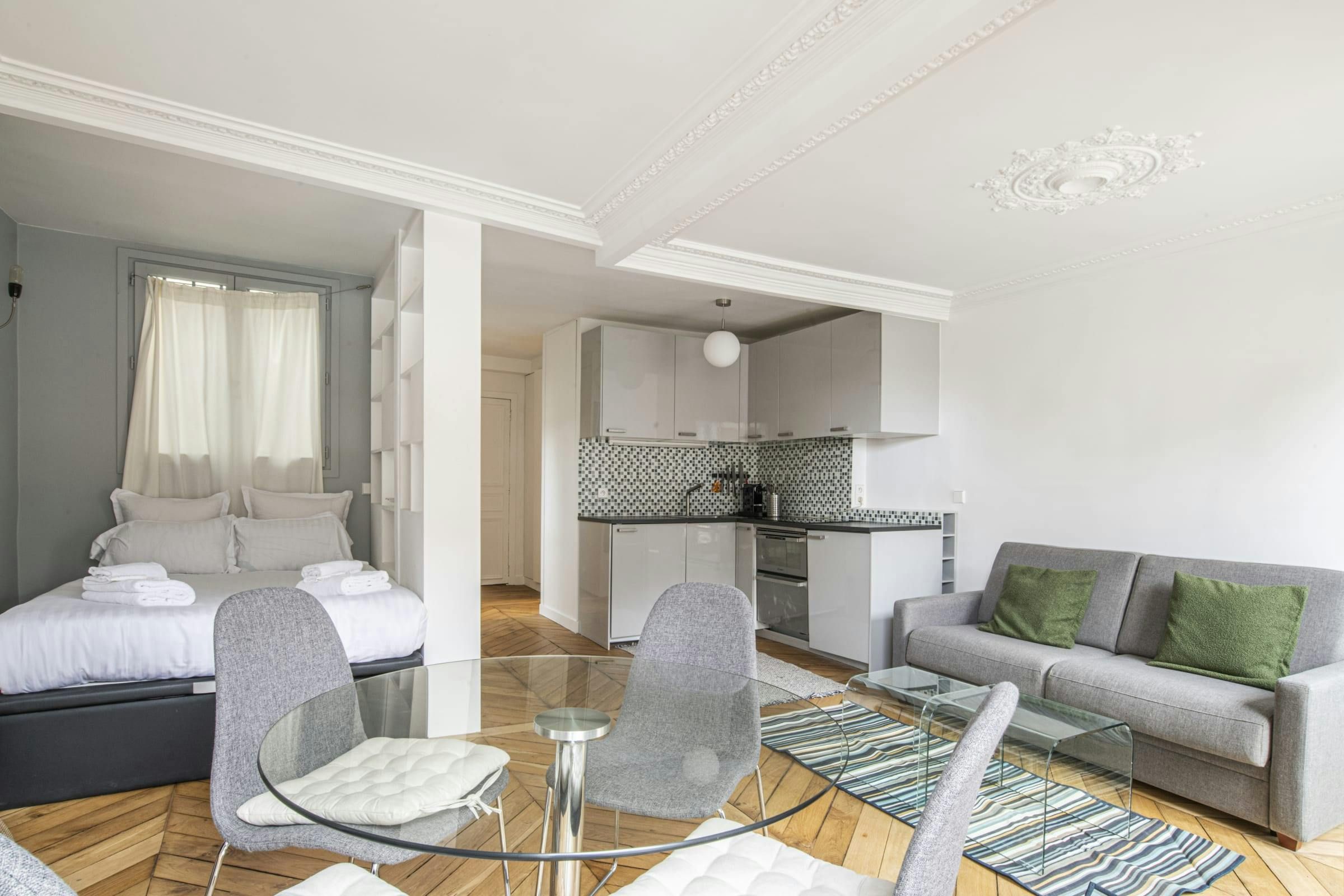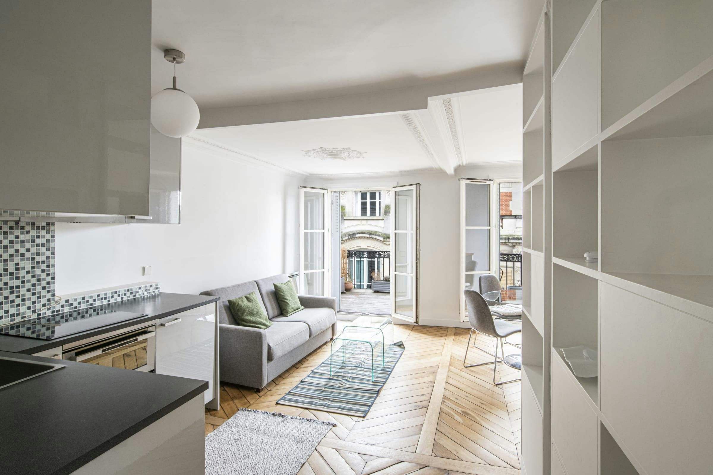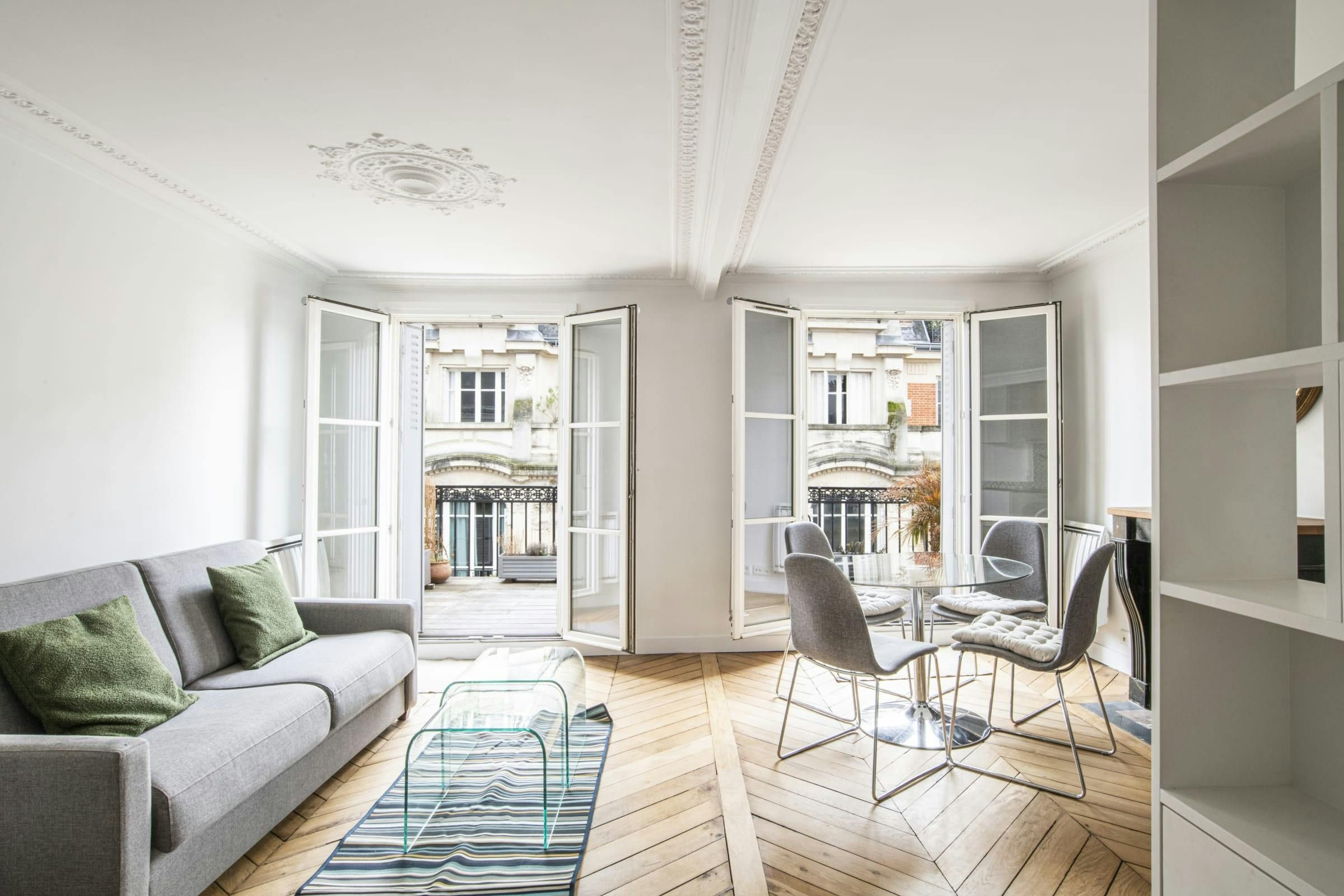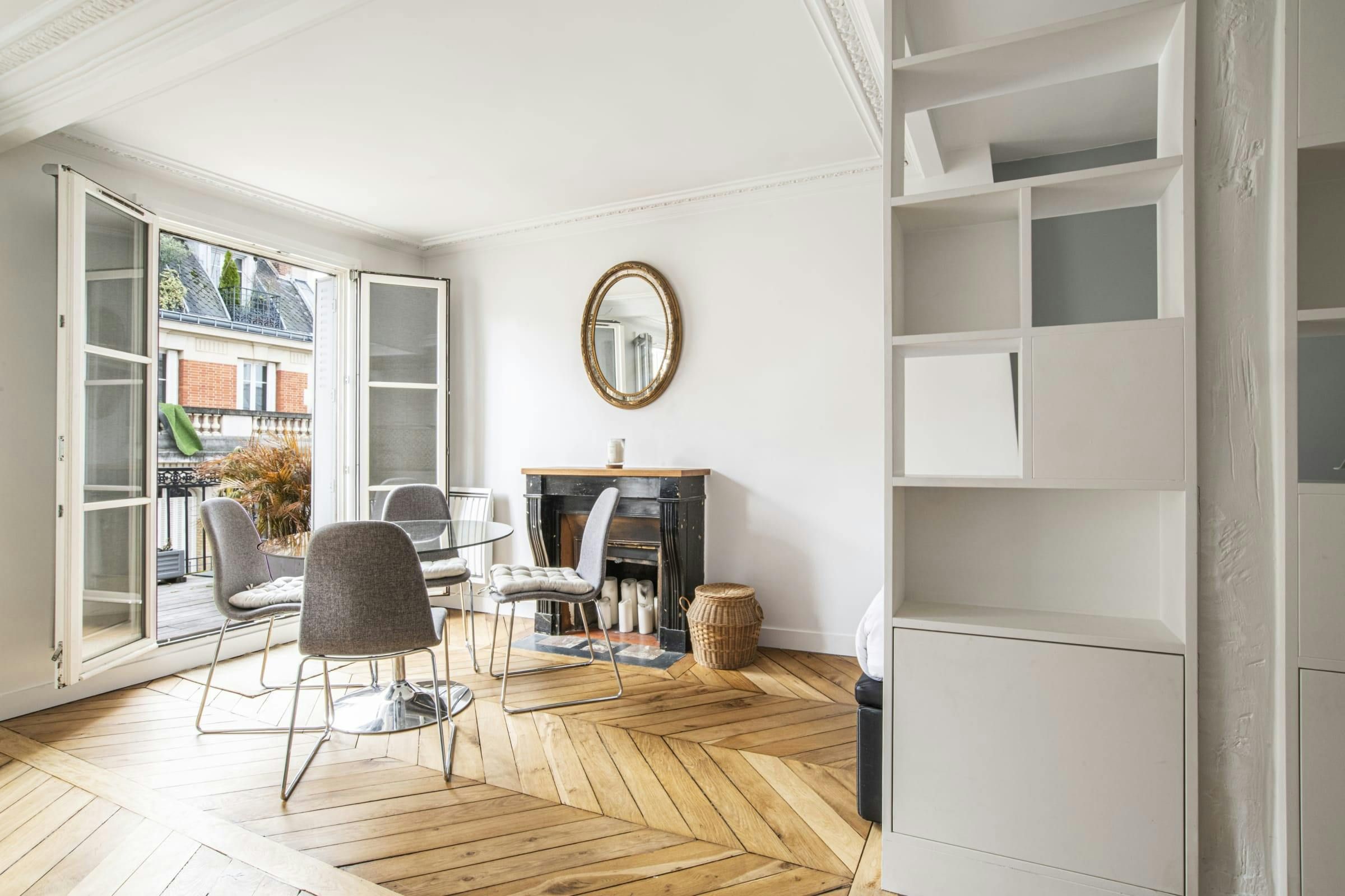 Behind the doors of this classic Parisian building is this compact yet perfectly put-together apartment. A bright living and dining space makes it easy to unwind, whether you’re sharing a meal at the dining table or lounging with a film. It’s also in a great location. Step outside and you’ll find the trendy restaurants, galleries, and buzzing cafés of the 10th arrondissement waiting to be explored, with the rest of Paris just a metro, bus, or train away. Our highlight? roomy balcony, ideal for enjoying a morning coffee, or evening cocktail.