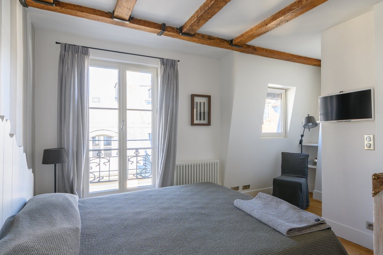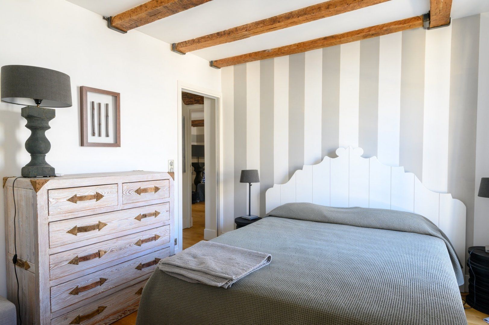 A characterful home if ever we saw one in an exceptional location, a stone's throw away from Saint-Germain metro station – this was an inevitable addition to the Plum collection. The decoration is bold yet brilliant, with a mix of thick grey horizontal and vertical stripes alongside exposed brick walls, old rustic beams and solid wooden doors complete with their original steel latches. It should be warned, that there is no air conditioning so things can get hot during the summer months, this aside, the home is well-equipped, with everything you'd need for a comfortable stay in Paris.