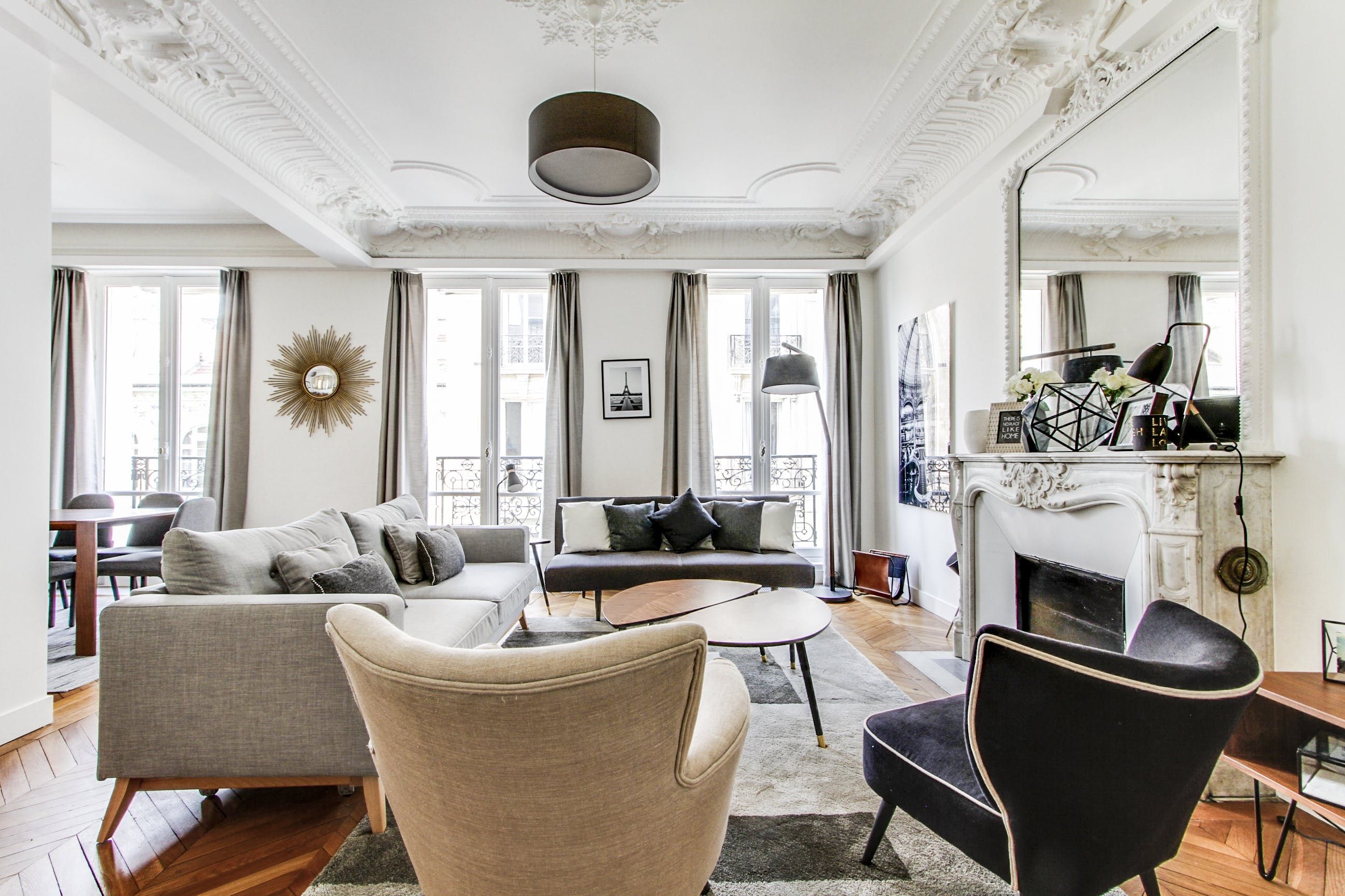 A decadent ode to Haussmannian elegance, this beautiful apartment located a three-minute walk from the Champs-Élysées is just the ticket for those looking for a luxurious Parisian stay.