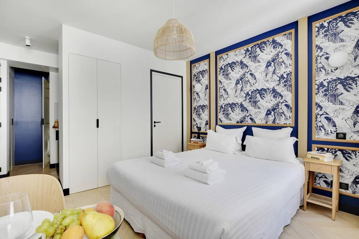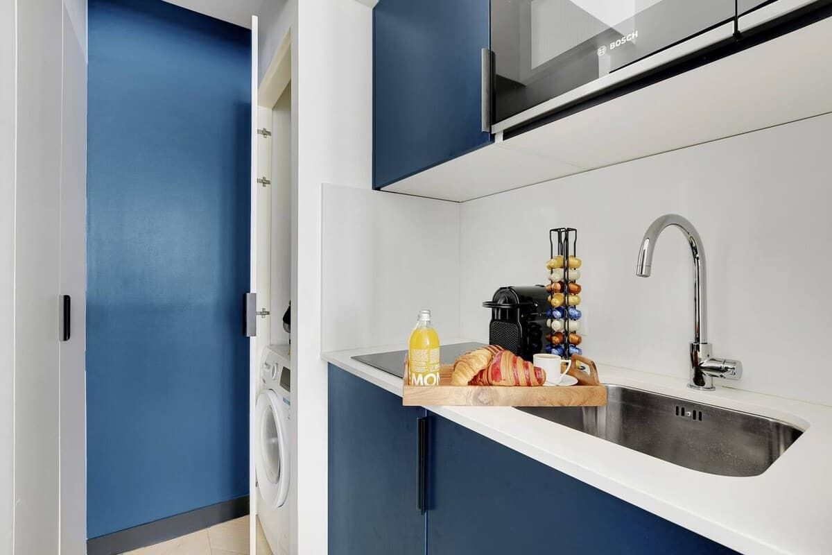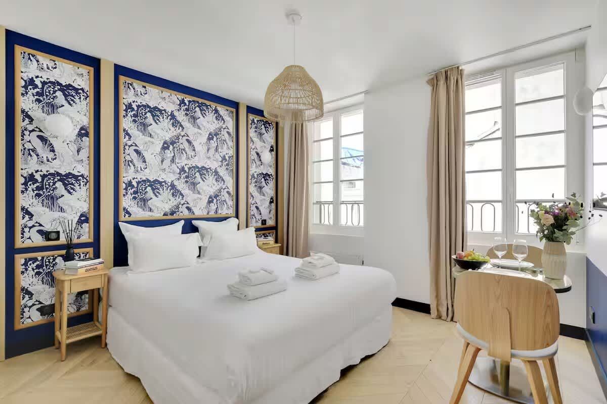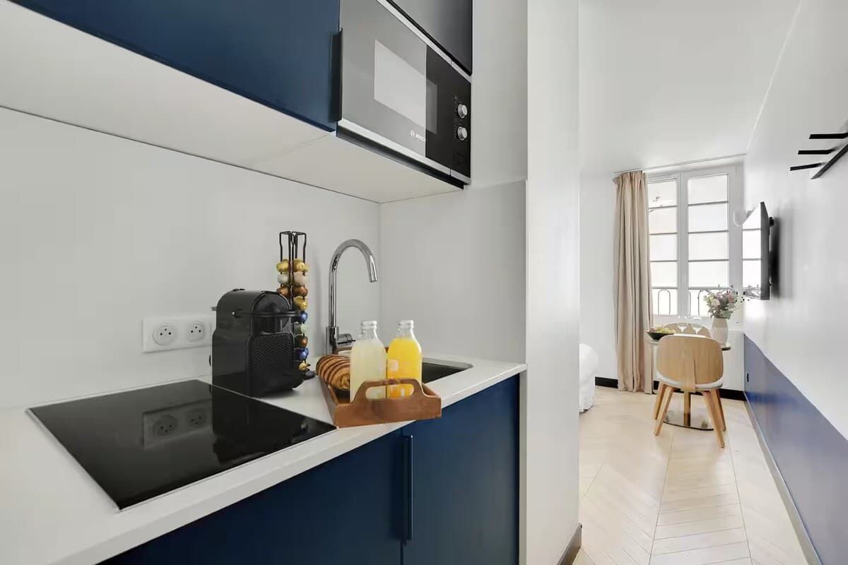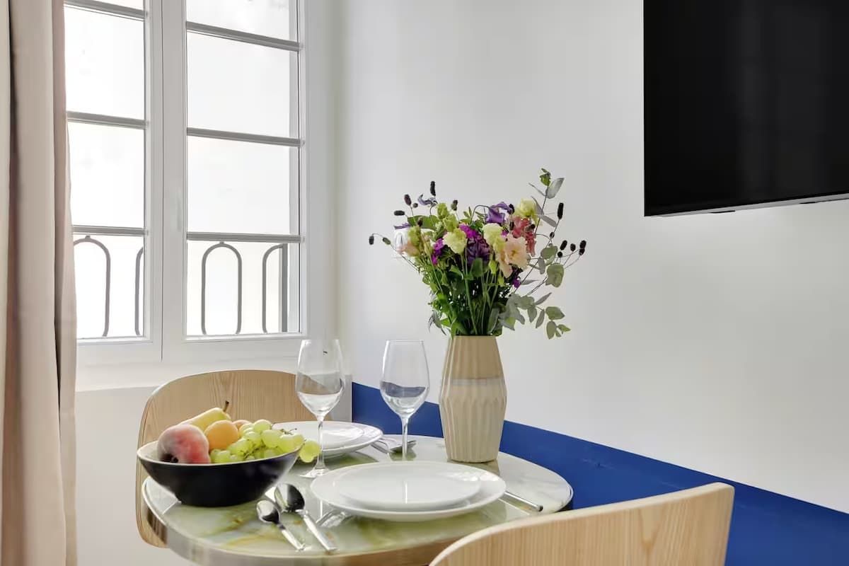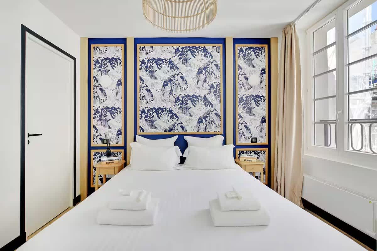 Situated just a short stroll from the iconic Place de la Bastille, this studio apartment’s location is ideal for history lovers. Within walking distance, you’ll also find places like Canal Saint-Martin and pretty squares like Place des Vosges. There are a variety of shops, bakeries, cafes and restaurants in the neighbourhood too. The apartment itself is cosy and there’s a small kitchenette (no oven). This place is perfect for a couple, solo traveller or business professional seeking a base in the heart of the city.
