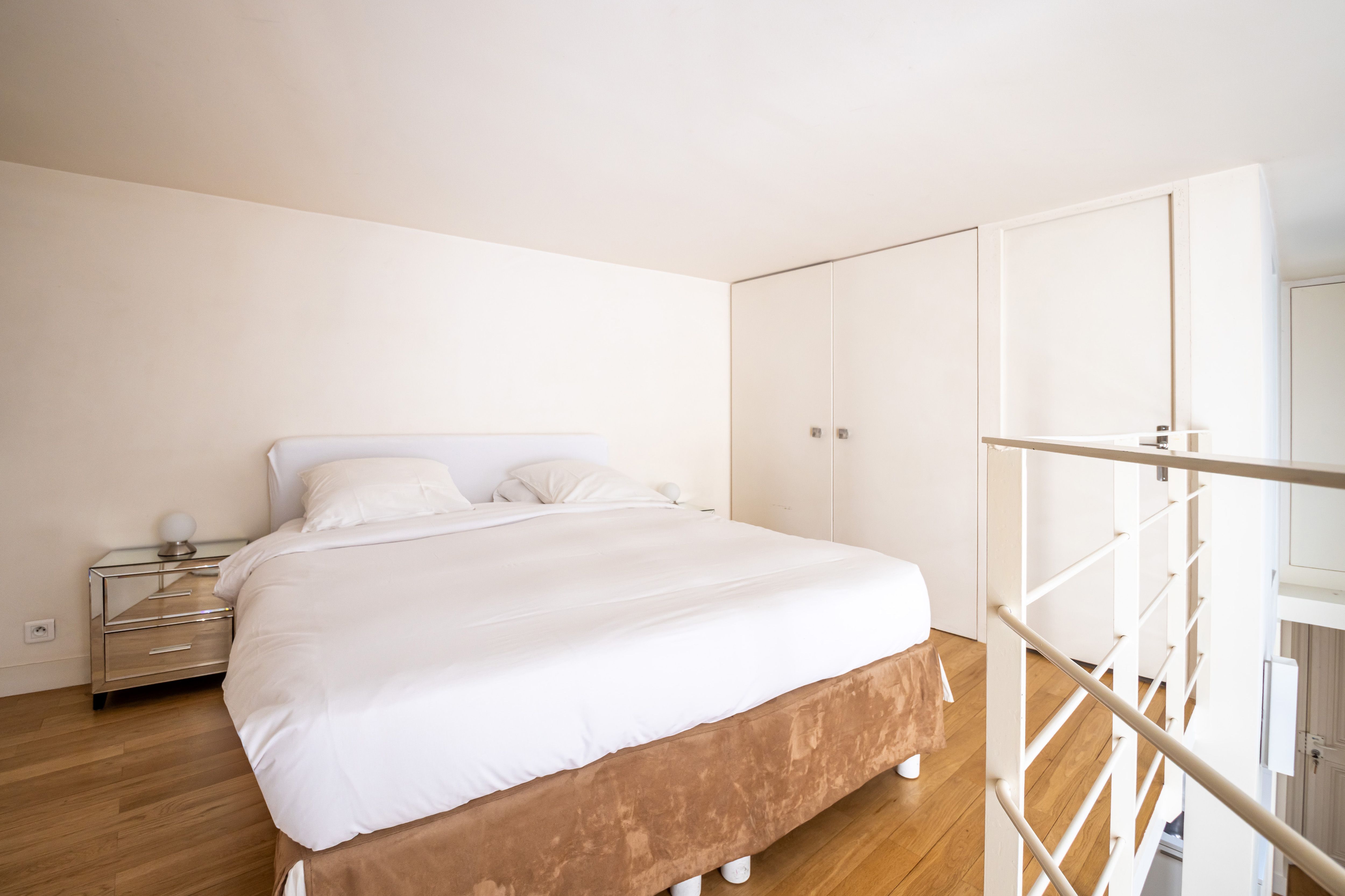 Built around a central courtyard, this one-bedroom apartment in Paris' Latin Quarter is at the heart of the capital's cultural district. There's almost a loft vibe to this home with its spiral staircase leading to a mezzanine double bedroom, and there's lots of natural light coming into the main communal area. You're only a short walk away from the banks of the Seine as well as Notre Dame on the Île de la Cité.