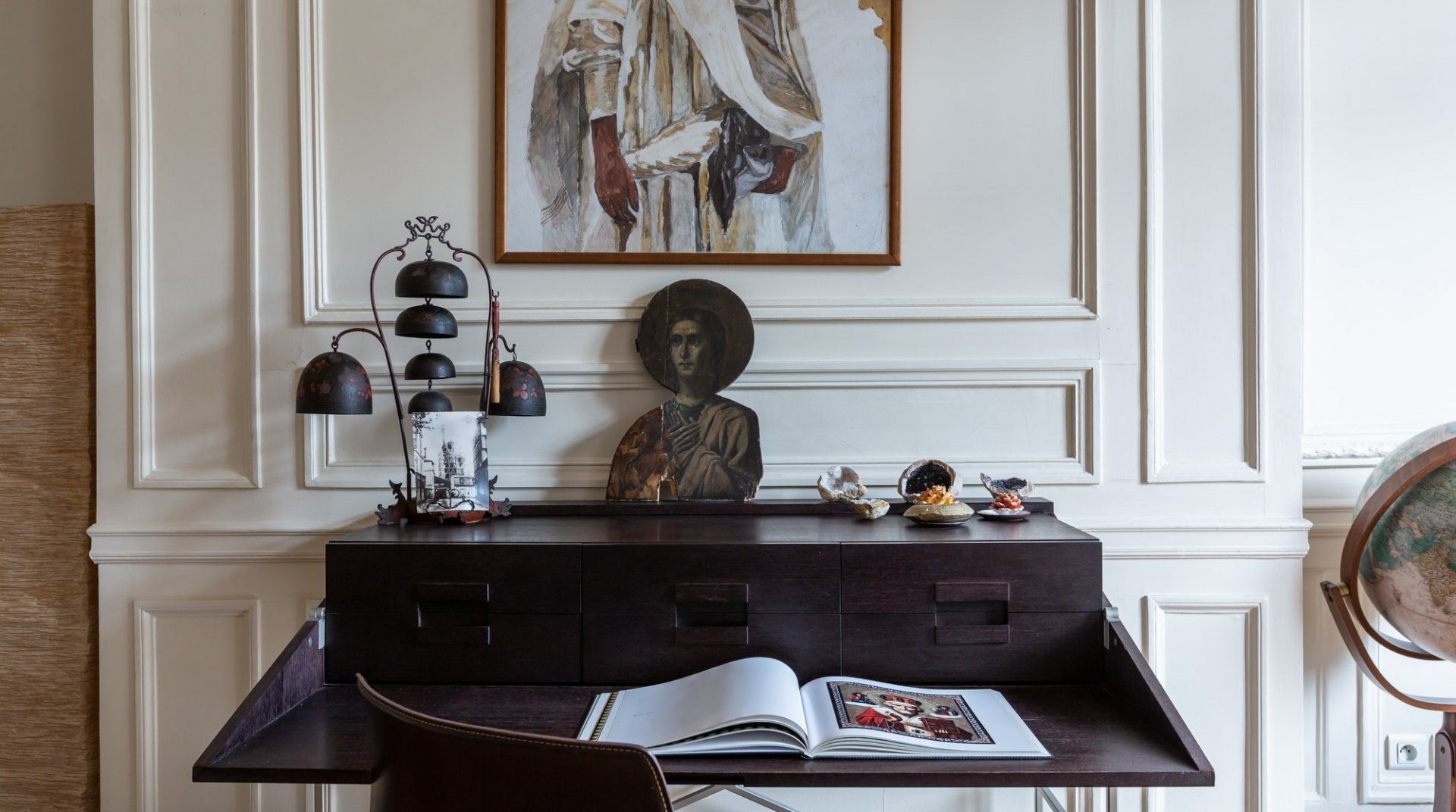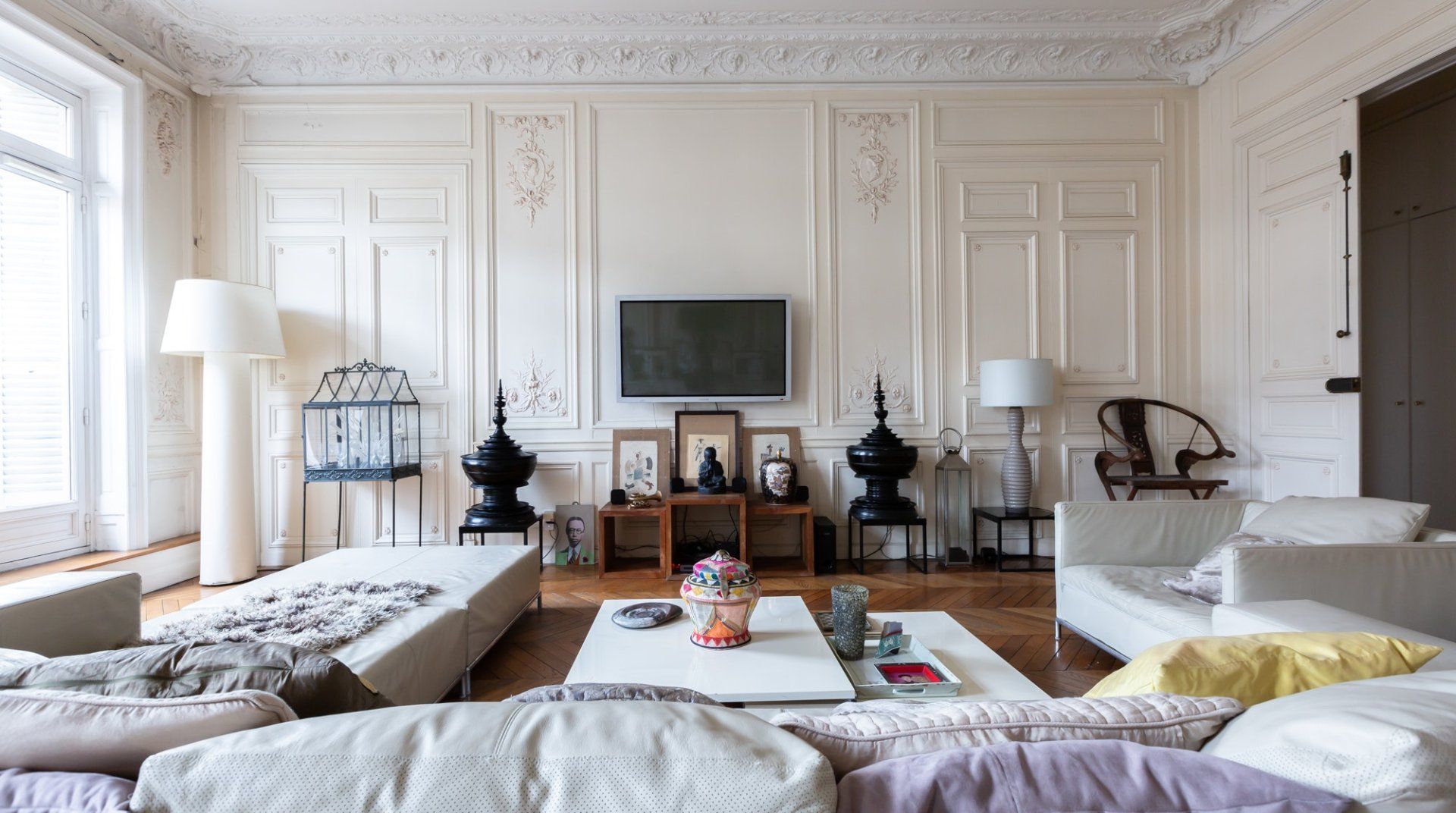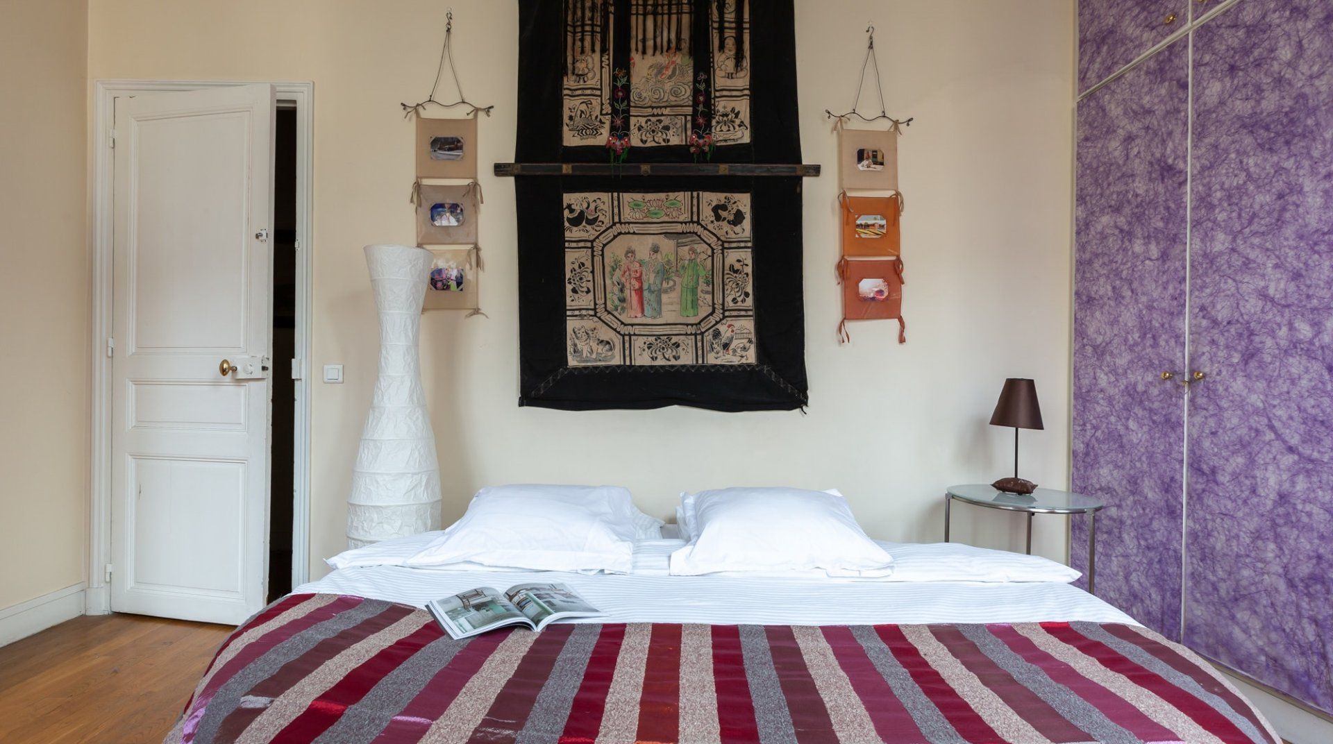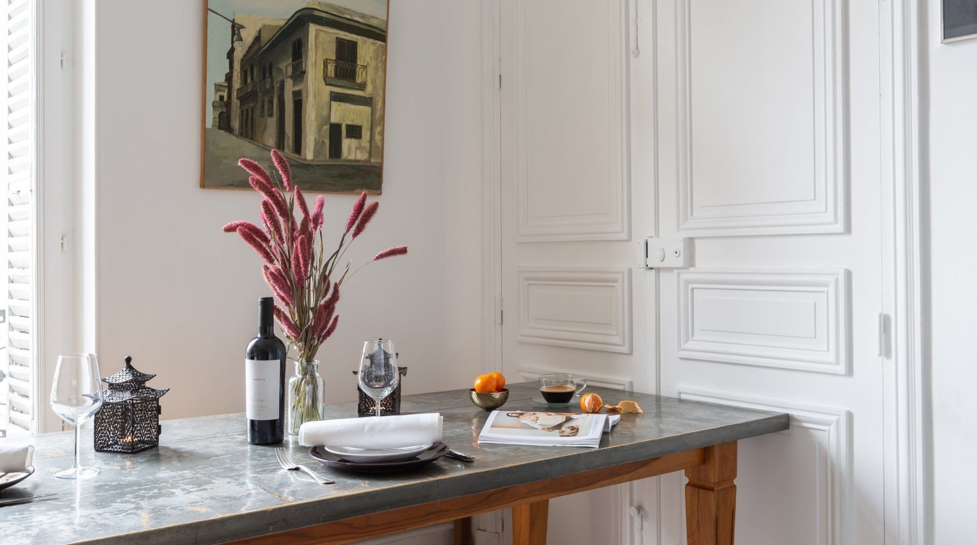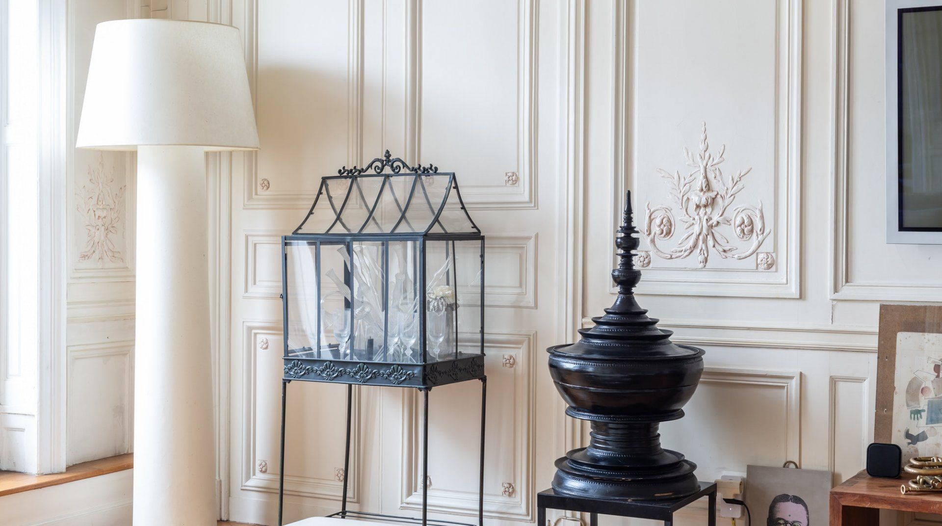 Parquet flooring, ornate wainscotting, and Juliet balconies at every window – this apartment is the epitome of Parisian chic. Brimming with worldly antiques (including a Buddha statue) as well as striking artwork, the atmosphere here is eclectic and grand. Frankly, we can't get enough of this place – imagine waking up to the sunlight streaming through the sash windows, enjoying a luxurious breakfast in the breezy kitchen and sipping coffee as you overlook the city streets. There are two impressive living areas (one doubles as a study), so there's more than enough space for even large groups to spread out. And the bedrooms are a dream, particularly the four-posters draped in vibrant curtains and the unique round bed in the fourth bedroom. You couldn't ask for a better spot to take in the magic of Paris. This home is in the heart of the city, halfway between the Opéra Garnier and the Palais Royal, overlooking the bustling Avenue de l'Opéra. Pyramides Station is right next to the building, while sights like the Louvre and the Tuileries Gardens are less than a ten-minute stroll away.