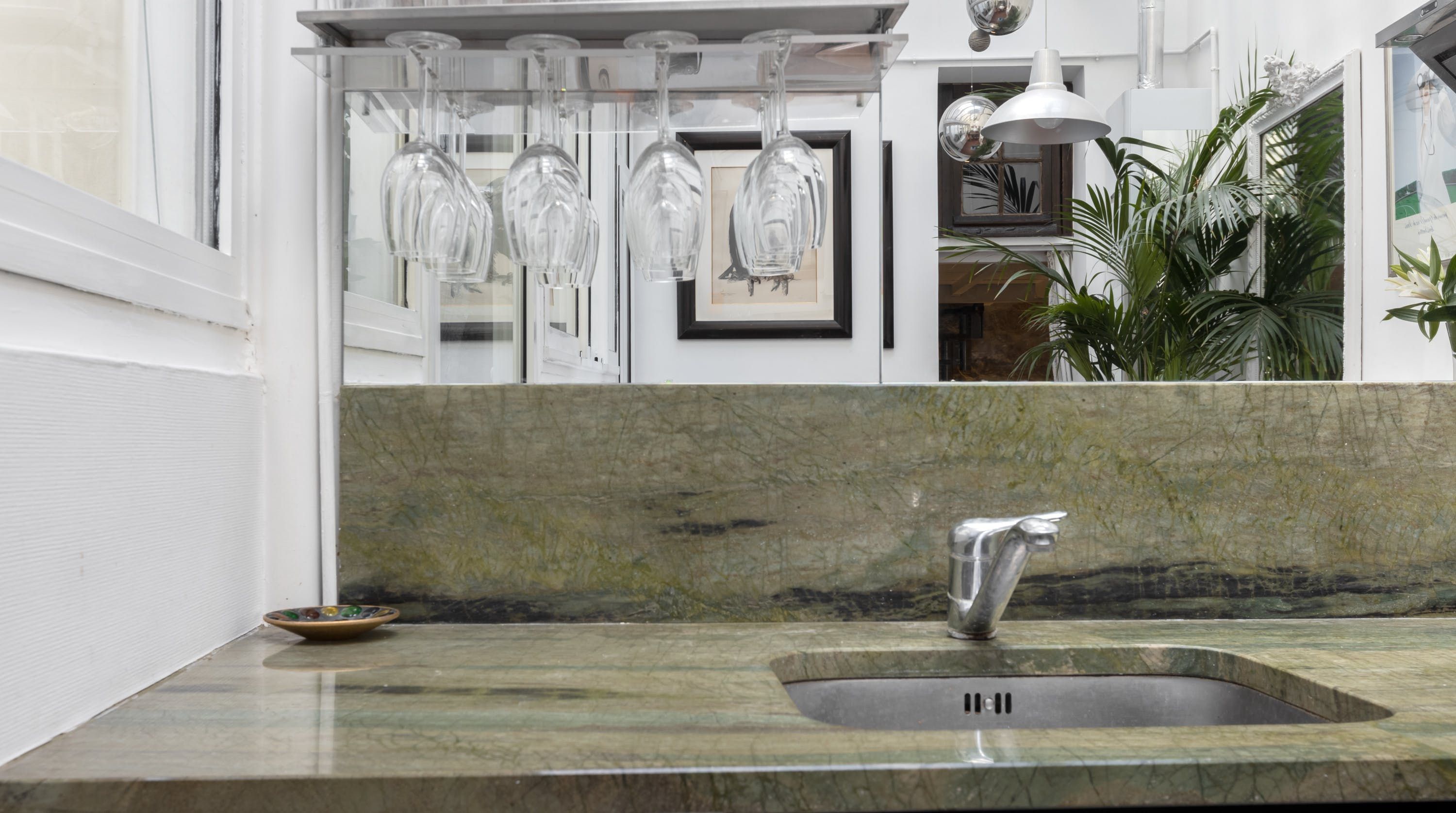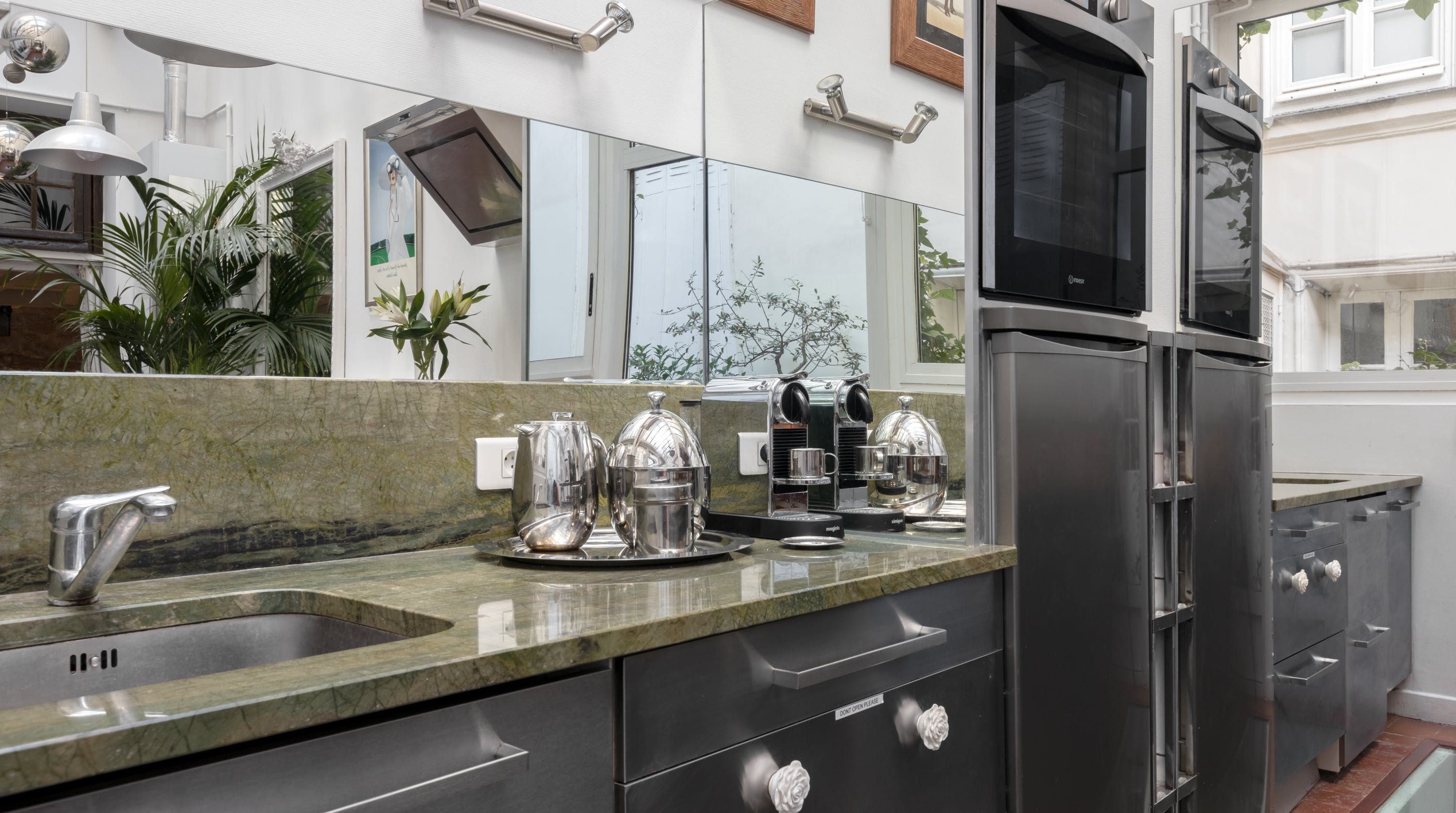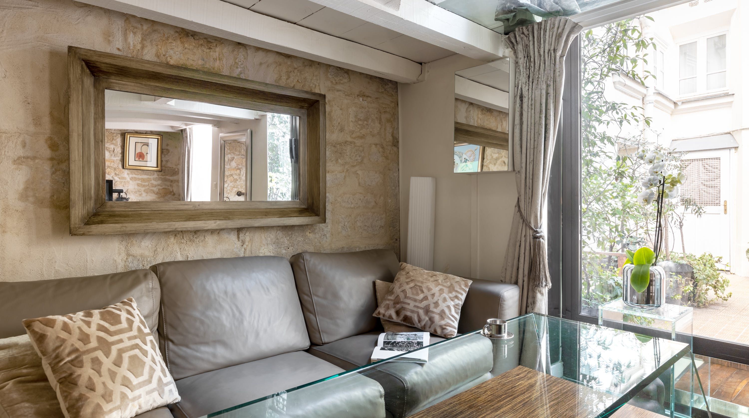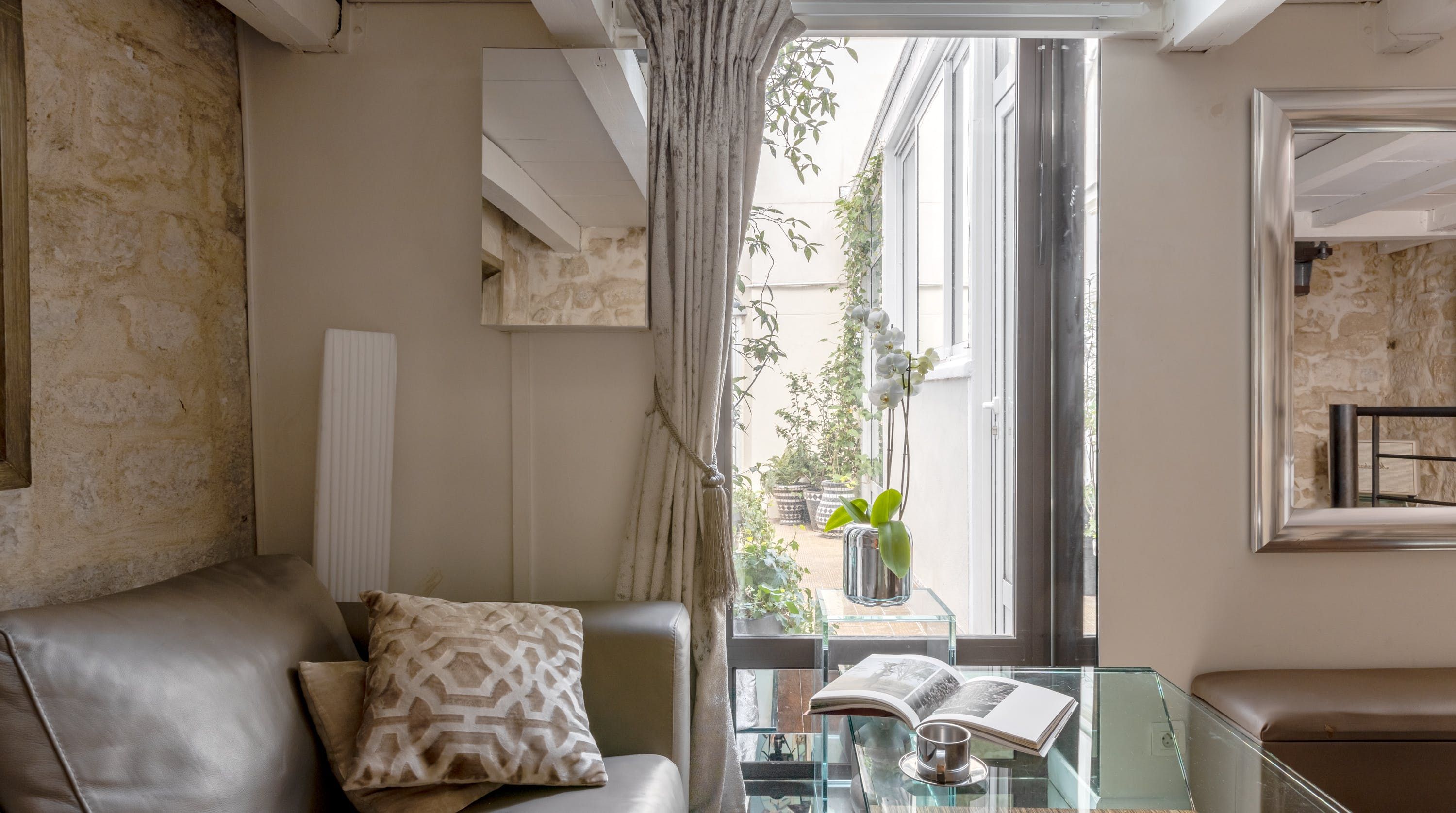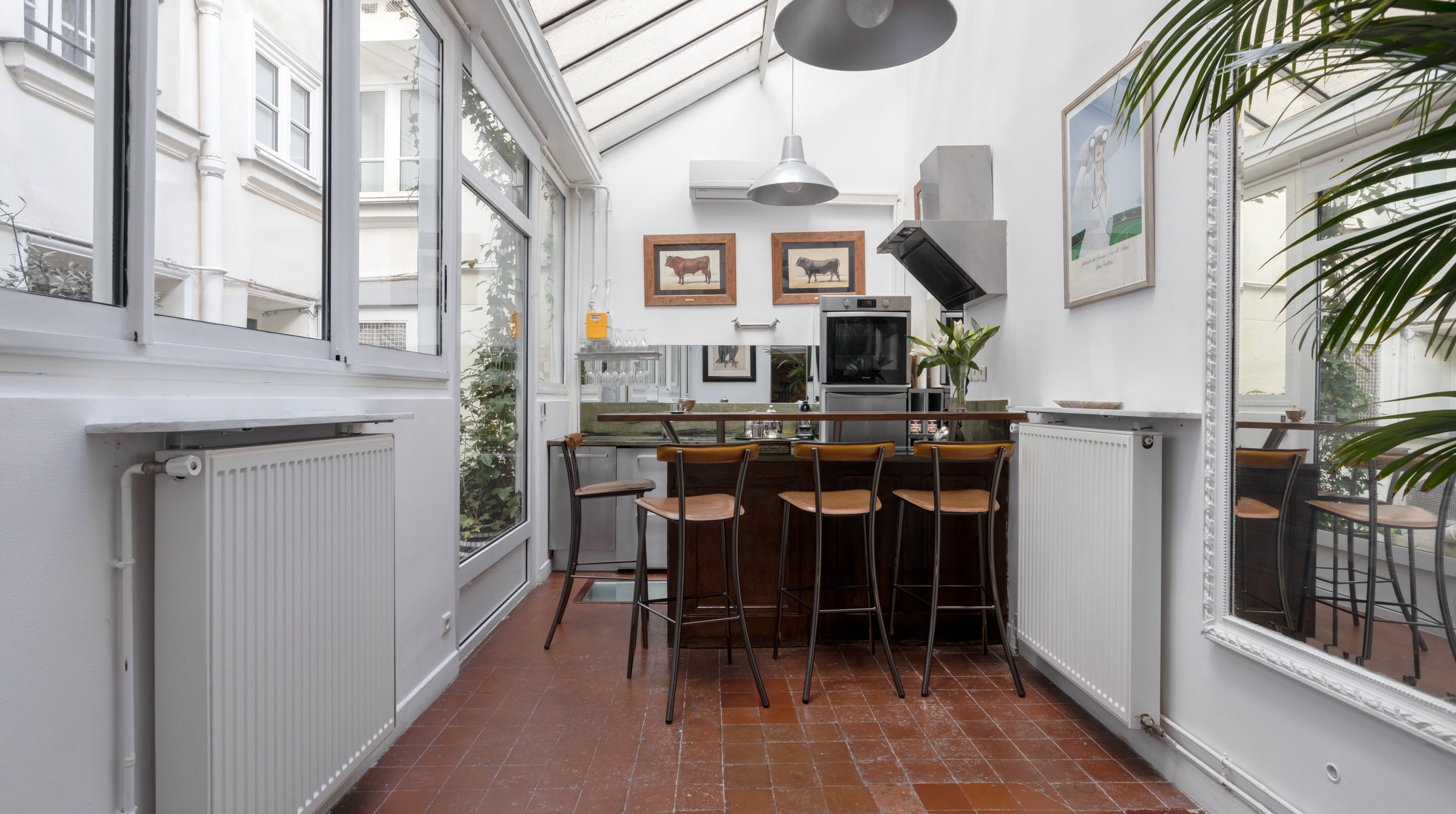 Nestled in the heart of l'Île St Louis and tucked away in a quiet courtyard lies this kooky abode. Sprawling across three floors with a quaint courtyard, there's something truly relaxing about this hidden-away home. Although the distribution with a bedroom in the basement may not be to everyone's taste, the conservatory-style kitchen is the jewel in this home's crown - large enough to both cook and entertain.