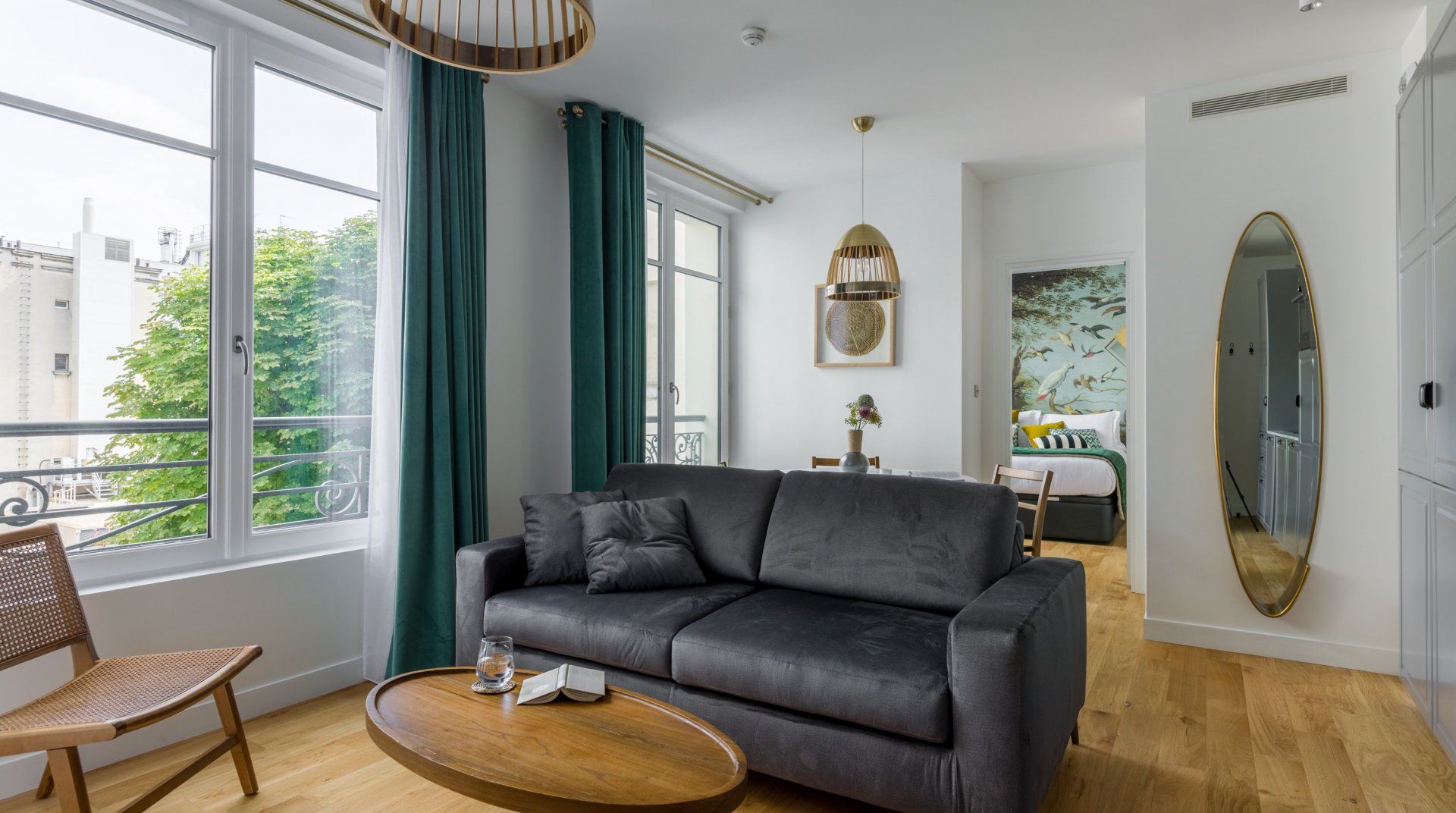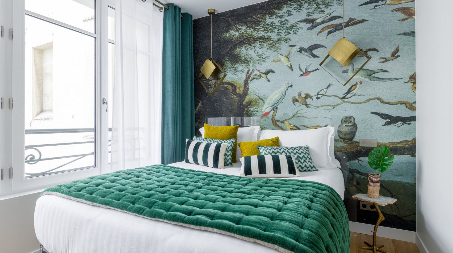When your closest main road is the Avenue des Champs-Élysées, it’s not a stretch to say that you might be staying in one of Paris’ most elegant and sought-after homes. Three minutes around the corner from this designer shopping hub, this flat is as beautiful as its surrounding area. First off, the communal area of the building is the epitome of luxury and style. Enjoy the company of other residents alongside a full-size pool table, plush lounge, fire pit, and library, all lit by a huge skylight. And up in your own living space, there’s a modern Scandi vibe with a luxury edge. We love the subtle way that natural elements seep into the home too. Views from the wrought-iron balconies look down to a serene, green courtyard. Your bedroom is a fabulous homage to birds and ornithology – owls and pheasants watch over you from a colourful mural above the bed. With all of these features, it’s easy to forget that you’re right in the heart of a bustling metropolis. If you do need a reminder, stroll to the Arc de Triomphe with ease just six minutes away. And if you want to delve deeper into the city, Georges V metro station is only four minutes from home.