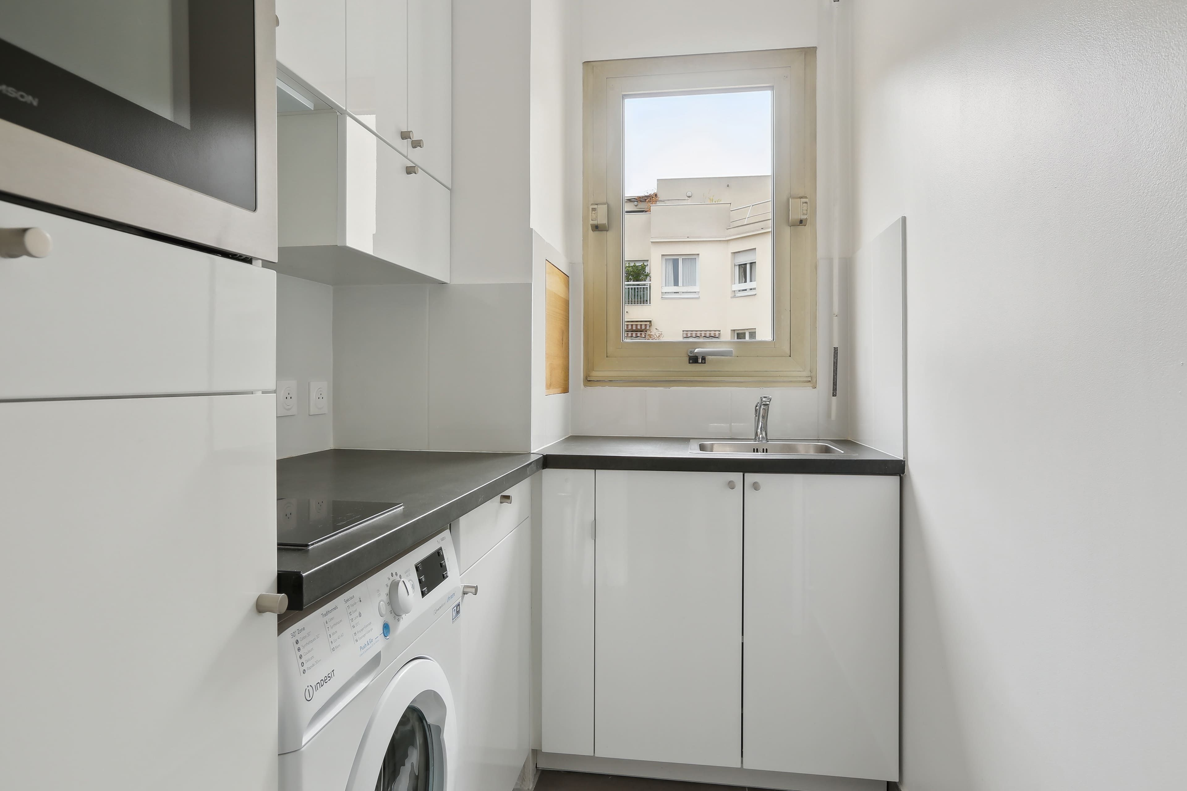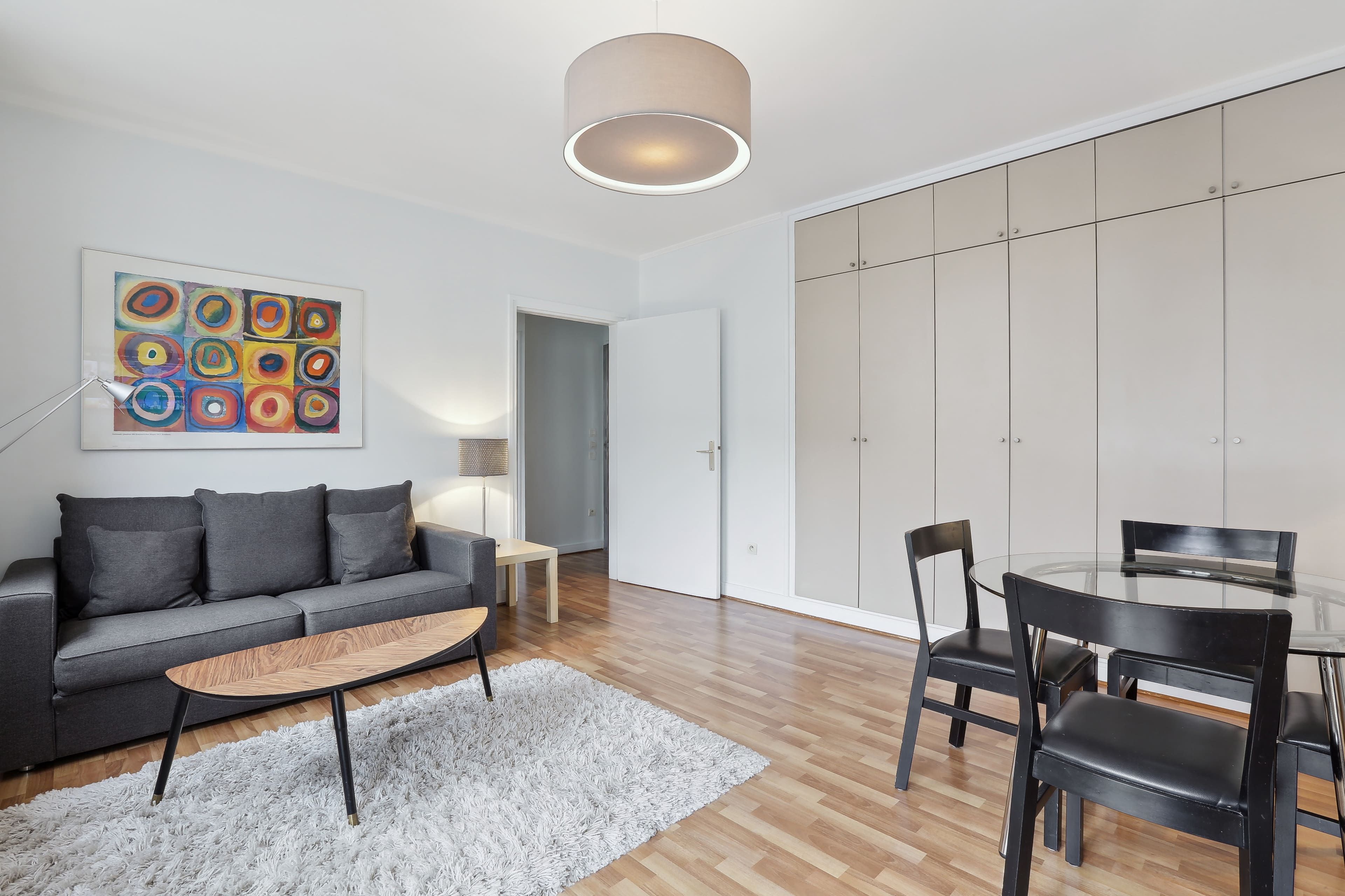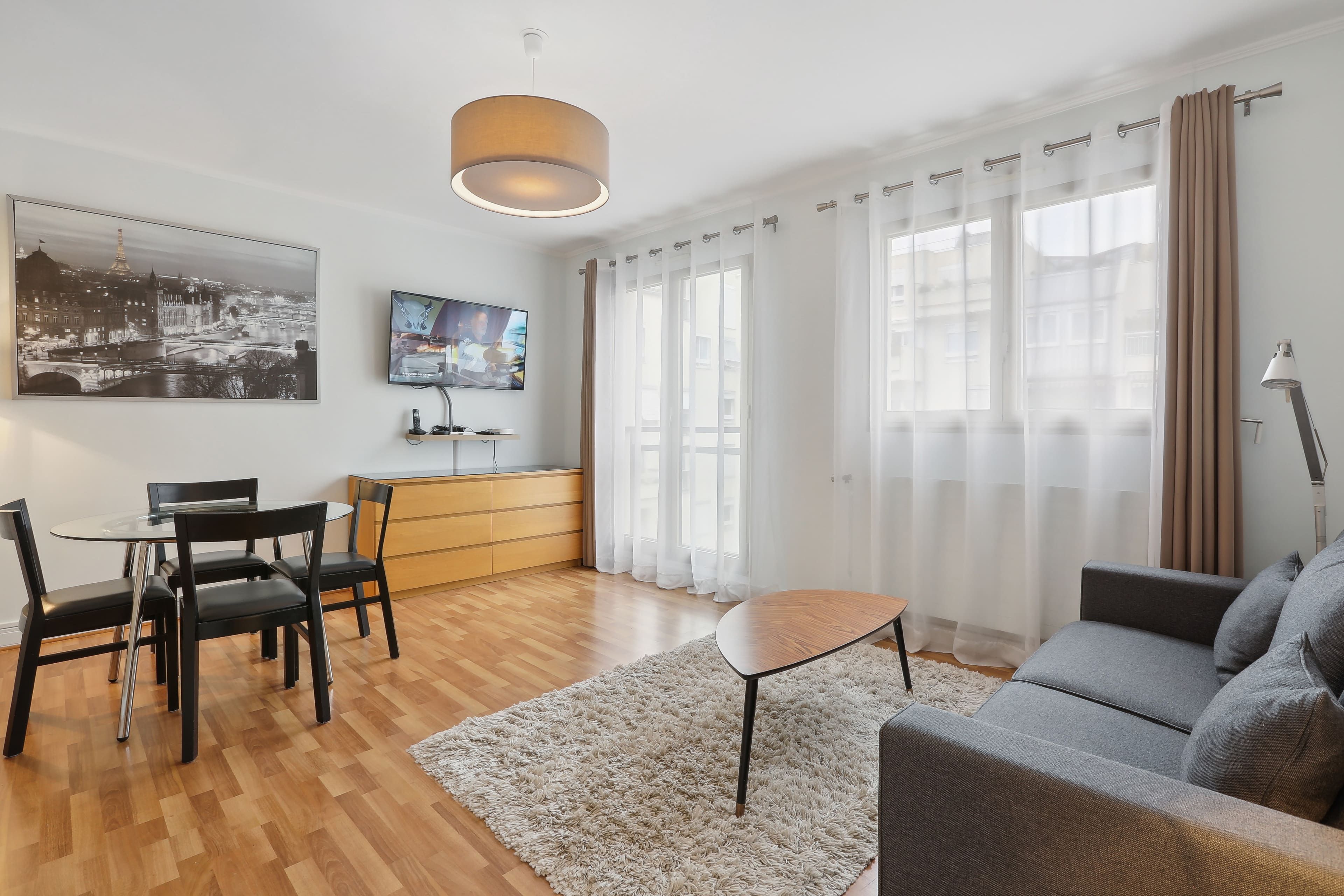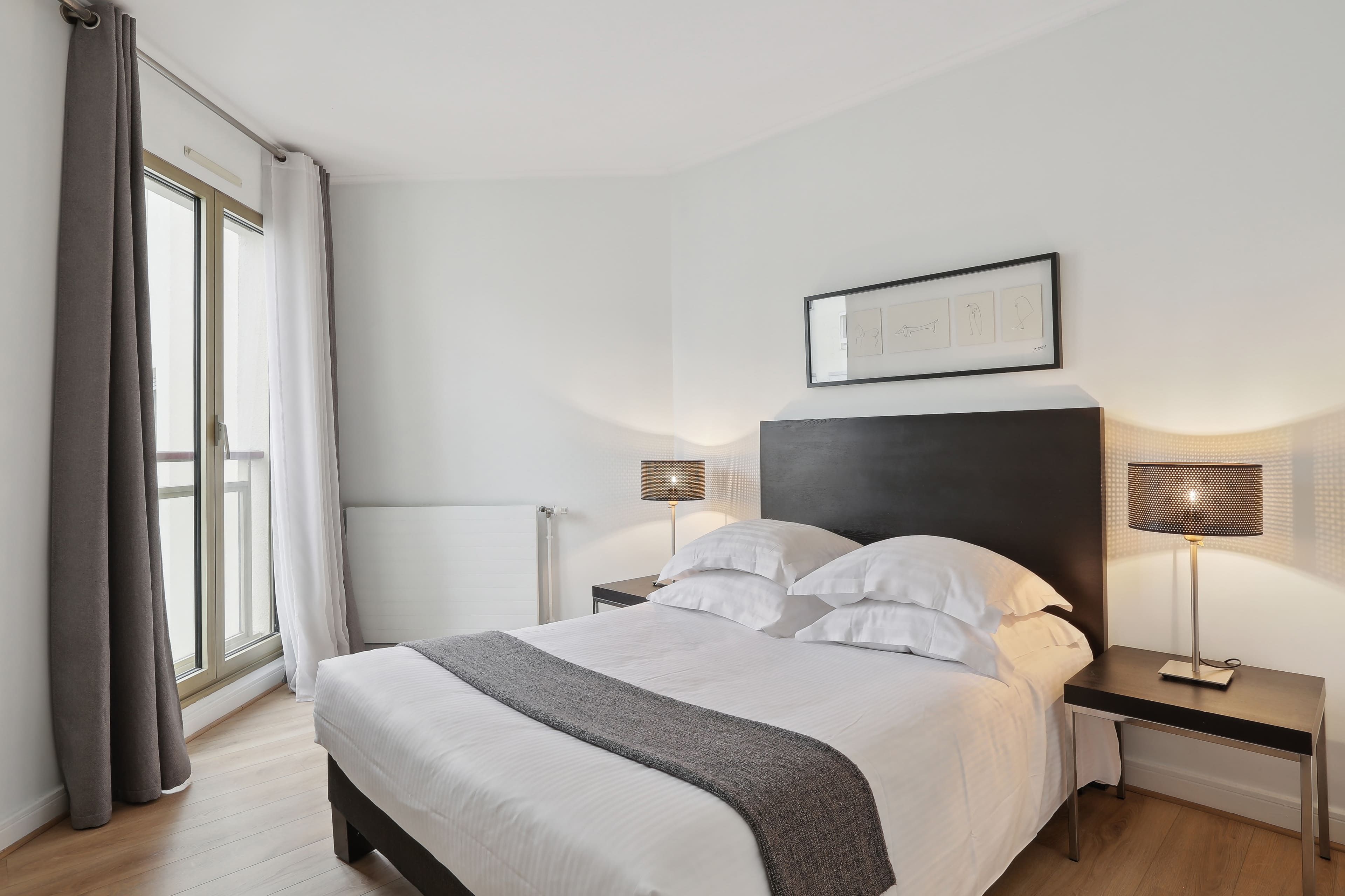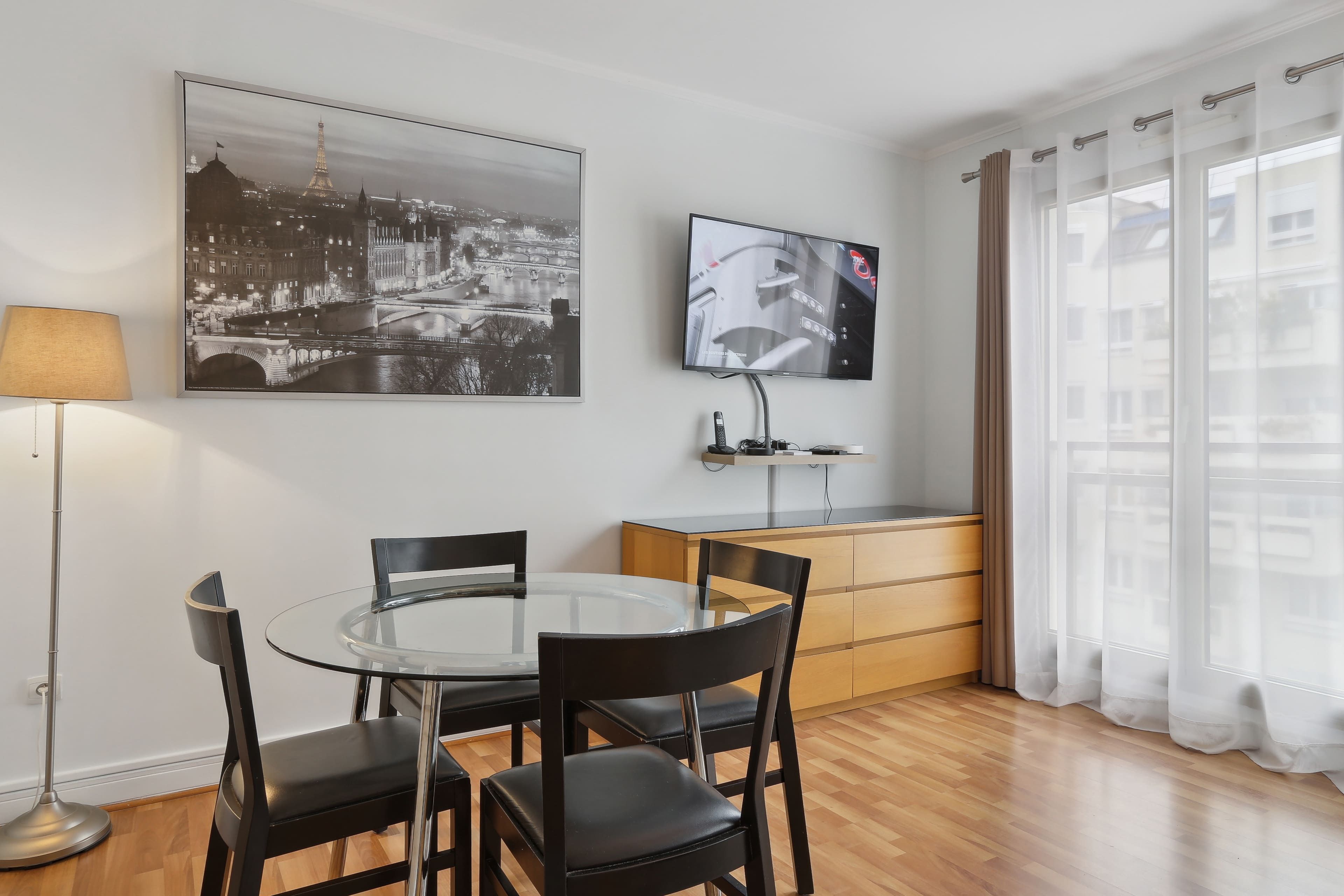Designed for business travellers, this serviced apartment has a fantastic address in Paris. The Centre Pompidou and Le Marais with its array of restaurants and bars are a short stroll away. The nearby excellent public transport links also allow for easy travel around the city. This modern apartment has plenty of storage, and while the kitchen is compact, it has everything you probably need for when you want to cook at home. This place is a sound choice when you need to stay in the City of Light.