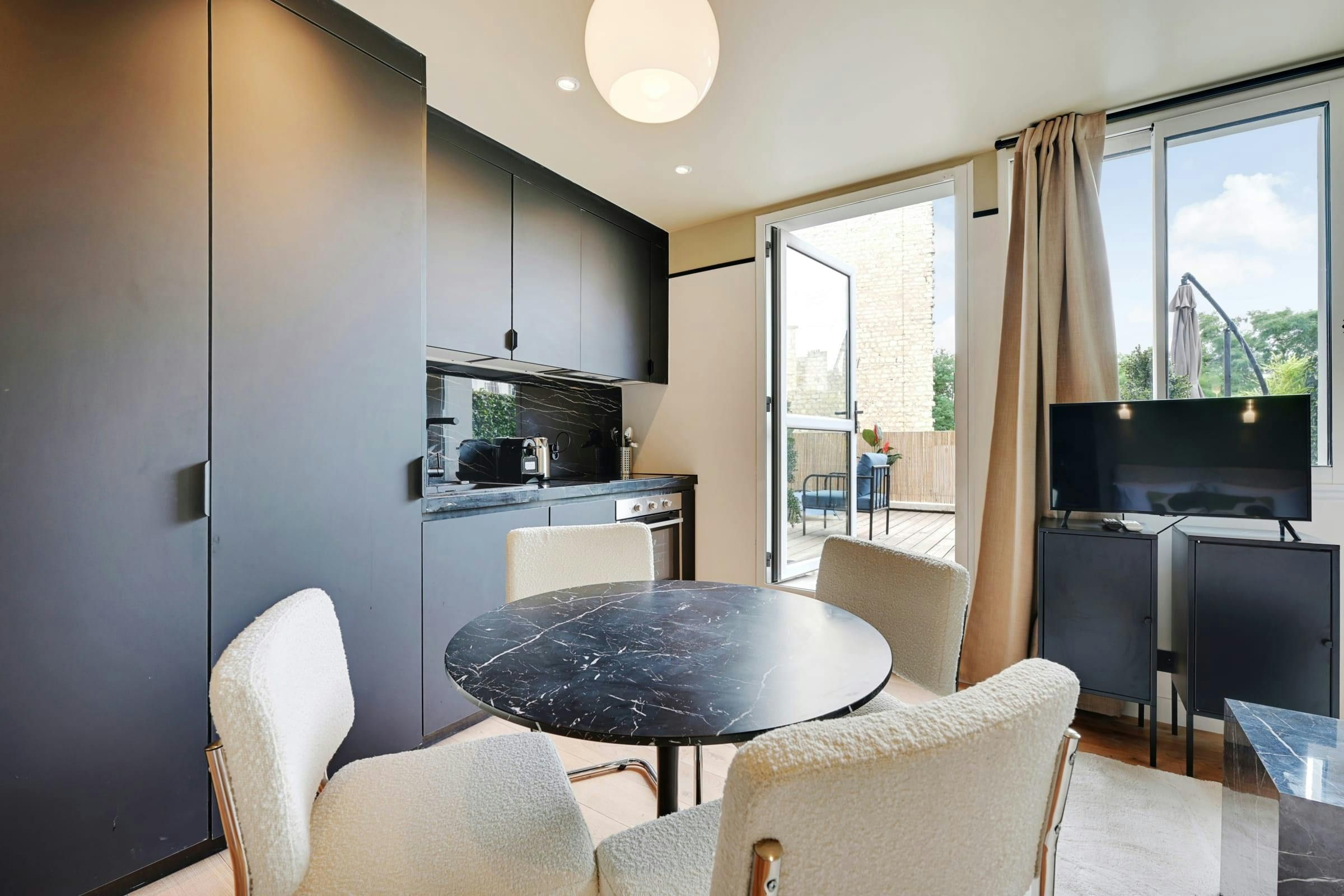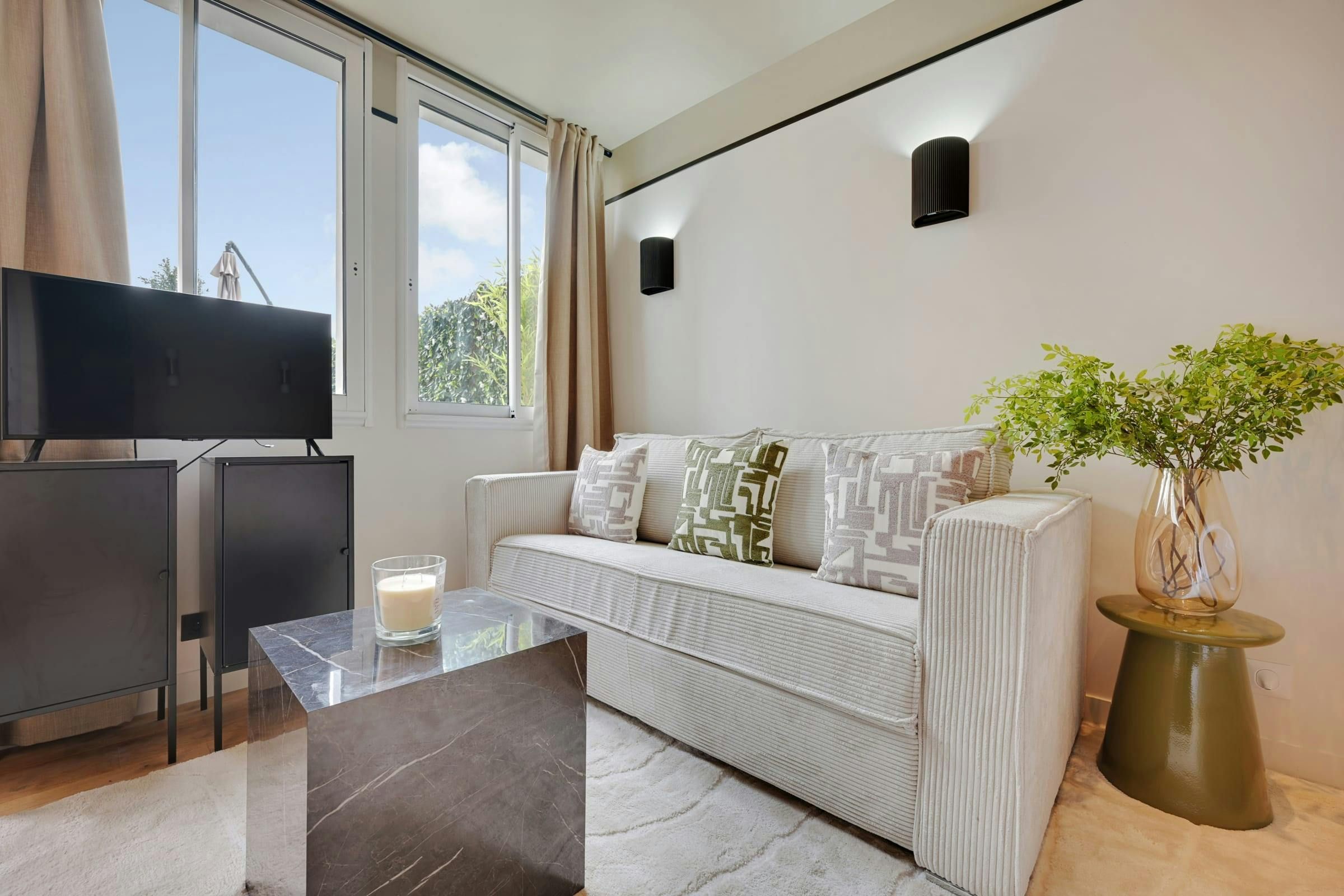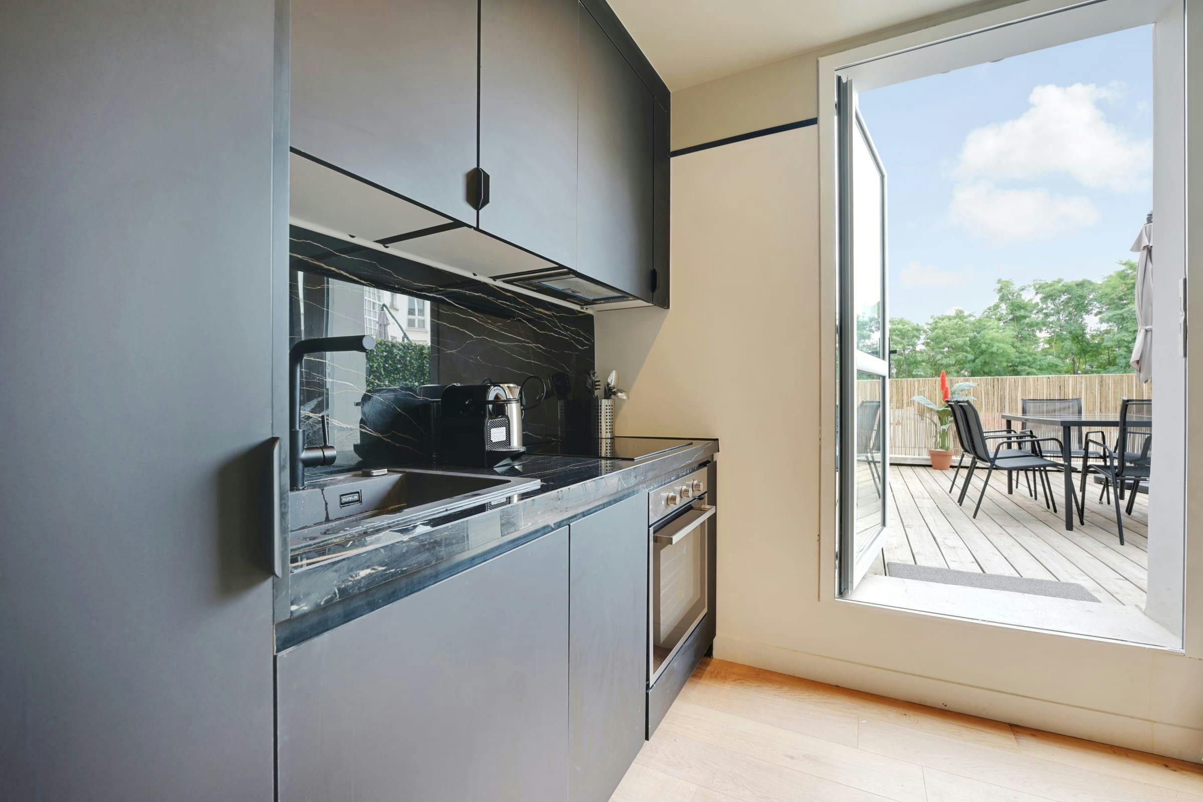 This studio in the 12th arrondissement is a serious plus if you’re a fan of outdoor living. You’ll have the benefit of a particularly rare find in Paris – a big, private terrace complete with a sun lounger, an outdoor sofa and a table perfect for an alfresco-style charcuterie board in the afternoon. While there’s a sofa bed alongside the queen-size bed, this apartment is only suitable for two – perfect if you both prefer your own space. The location is also great for those who love urban greenery – Paris’ zoo is a quick walk away, which itself is right on the edge of the sprawling Bois de Vincennes, the city’s biggest park.