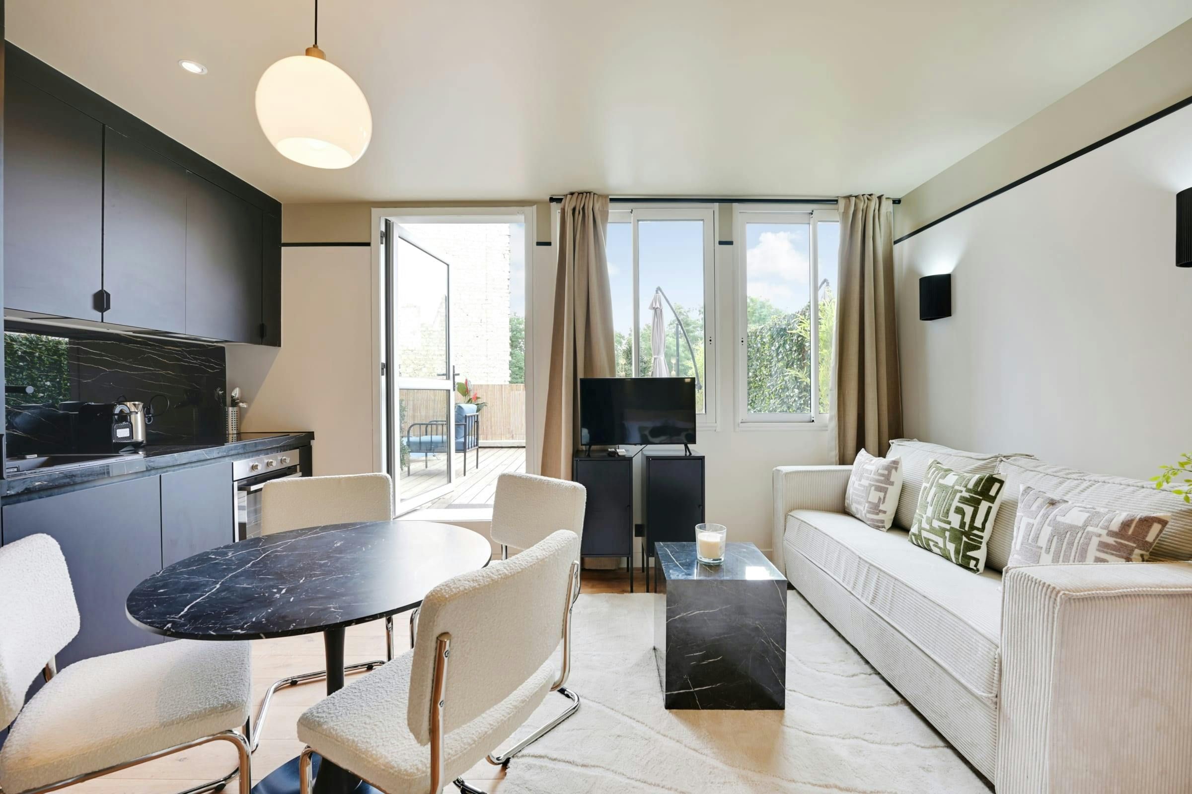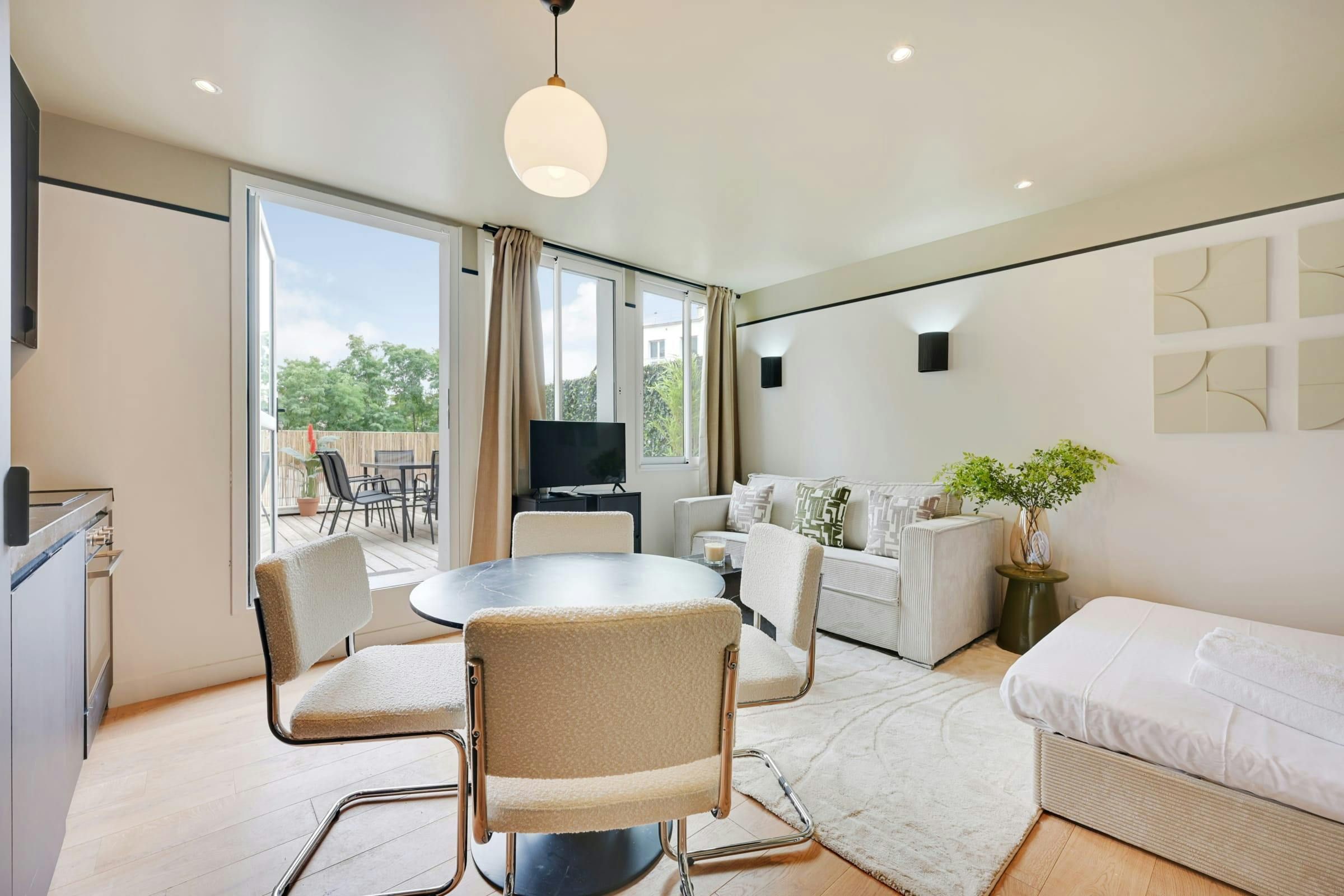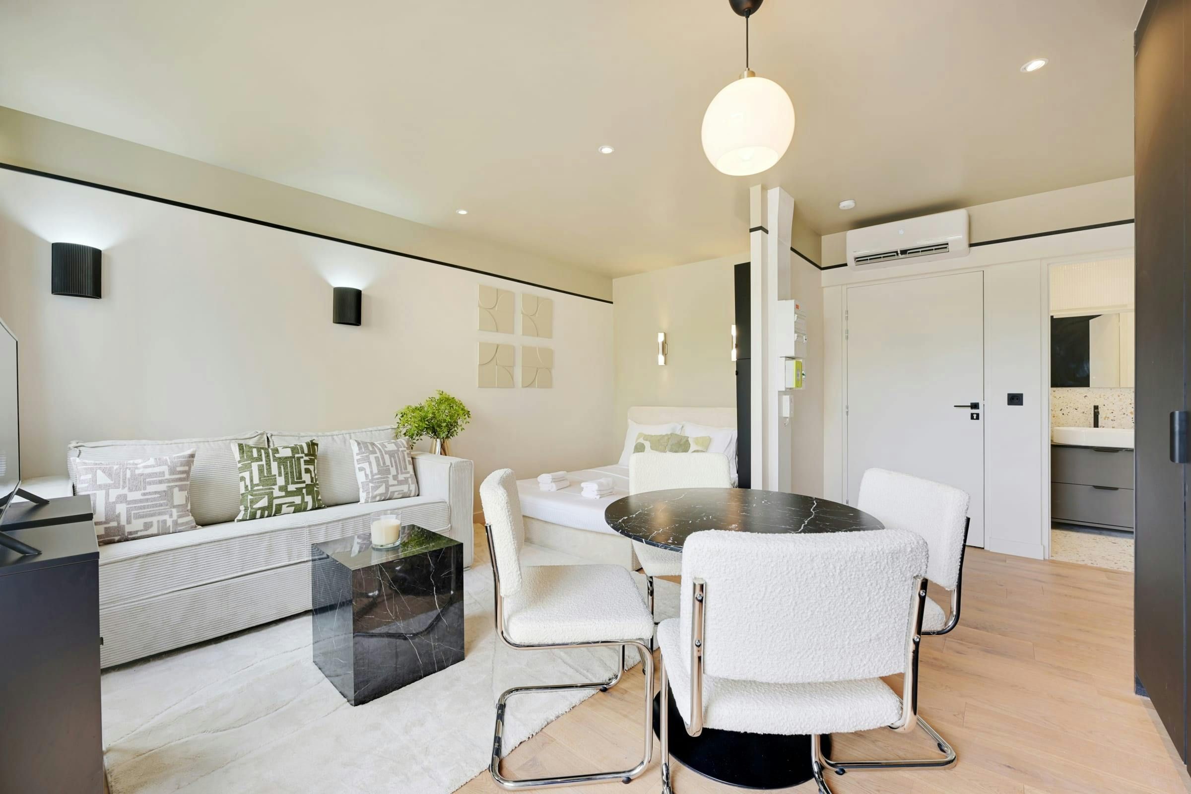 This studio in the 12th arrondissement is a serious plus if you’re a fan of outdoor living. You’ll have the benefit of a particularly rare find in Paris – a big, private terrace complete with a sun lounger, an outdoor sofa and a table perfect for an alfresco-style charcuterie board in the afternoon. While there’s a sofa bed alongside the queen-size bed, this apartment is only suitable for two – perfect if you both prefer your own space. The location is also great for those who love urban greenery – Paris’ zoo is a quick walk away, which itself is right on the edge of the sprawling Bois de Vincennes, the city’s biggest park.