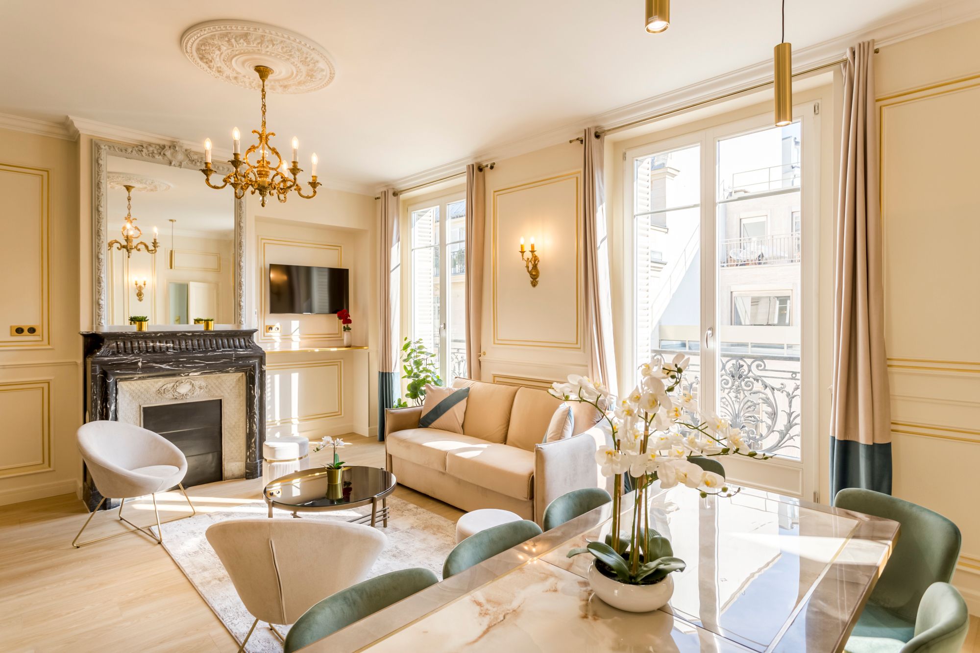 Just a few steps from iconic sights like the Louvre and Opera Garnier, this apartment is perfectly placed for a magical stay in Paris. You can stroll to bakeries, cafes and restaurants as well as the nearest public transport links – making it easy to explore further afield. Wherever the day takes you, this apartment has all the essentials you could need to switch off and relax. The open plan design is ideal for cosy family gatherings, while the bedrooms provide a calm space to unwind. Just note that two guests will sleep on a sofa bed in the living area.