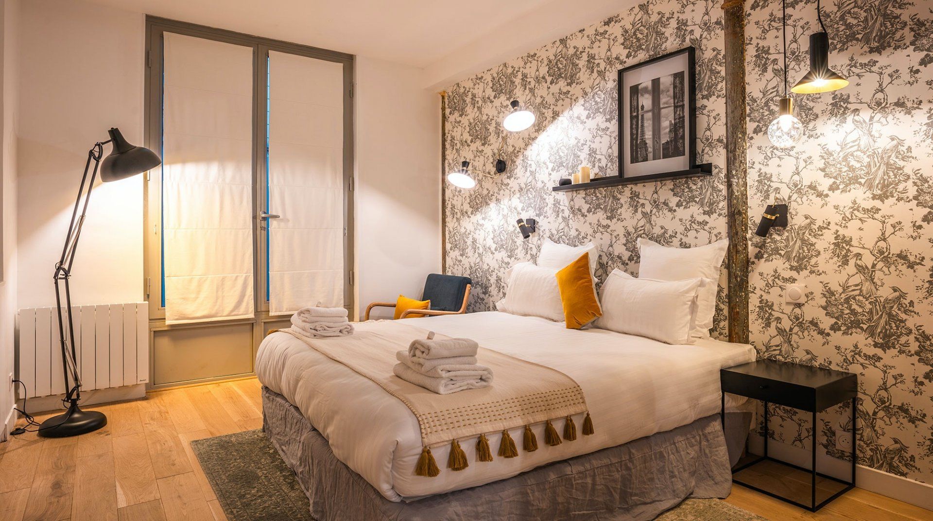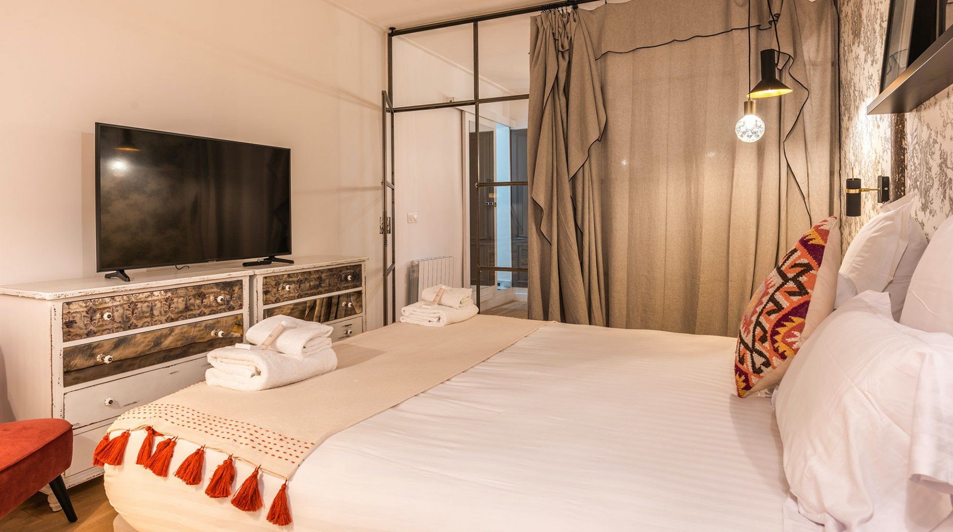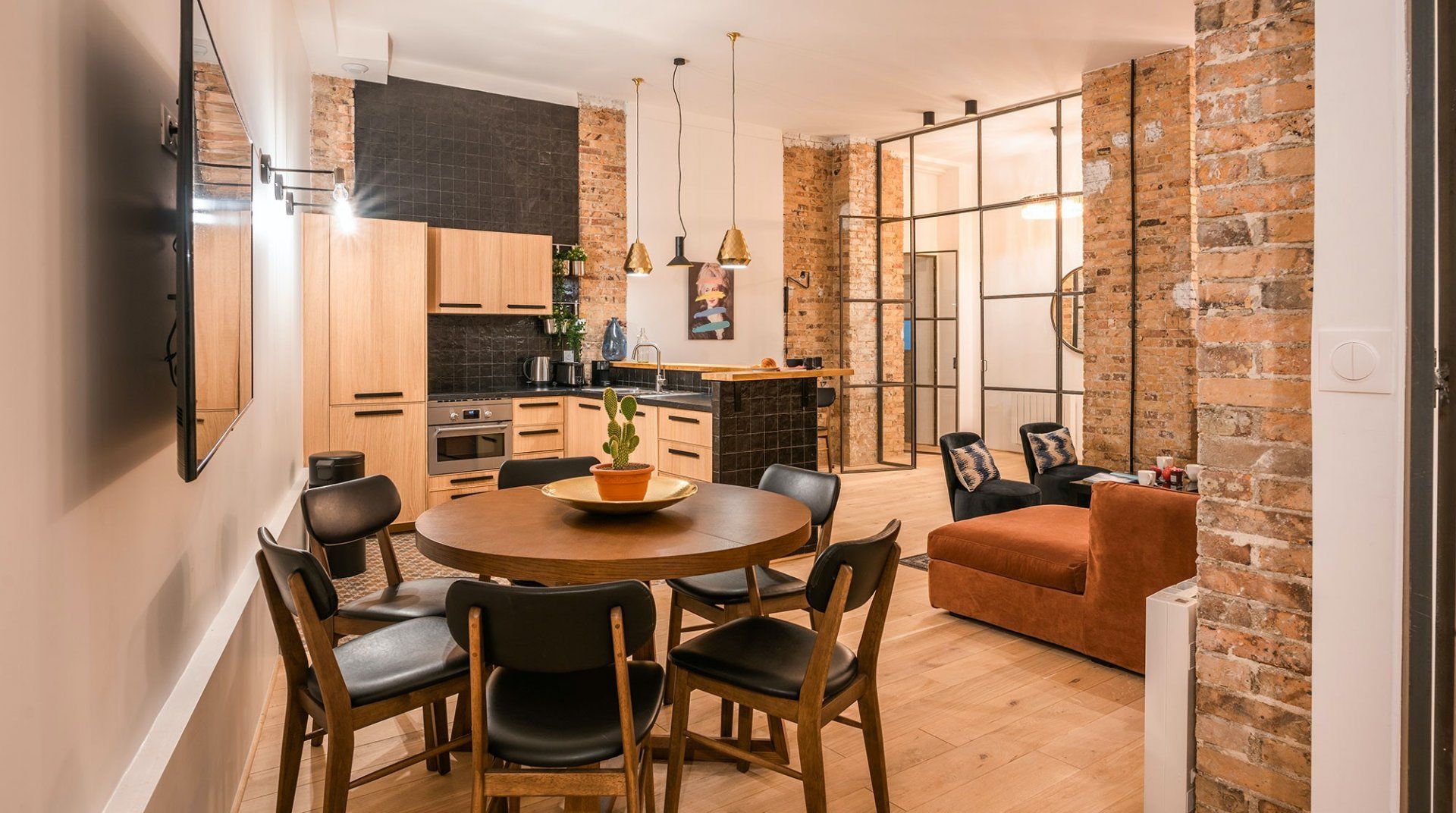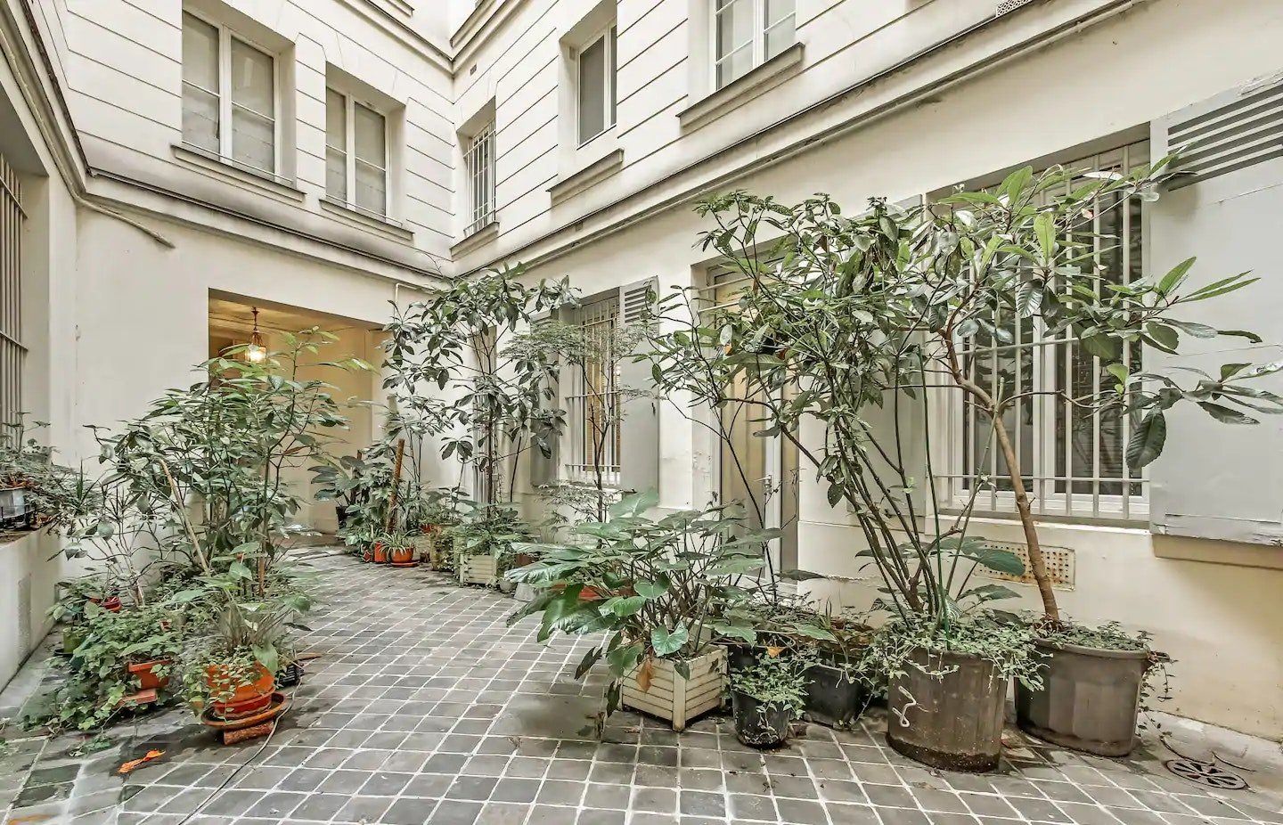 Paris’ 1st arrondissement isn’t number one for just any old reason. Home to the Louvre/Palais-Royal neighbourhood, this is a historically lavish part of the city where you'll find some of the biggest attractions. A four-minute walk from the Palais du Louvre itself, this apartment certainly continues on a majestic theme. Through a courtyard full of lush plants, the entrance to this building has the famous cream-coloured walls of Parisian homes that you’d expect. However, the interiors tell another story. A rich orange sofa welcomes you to the modern living space – with exposed brickwork, a glossy tiled breakfast bar, and a full-length glass partition wall to break up the bedrooms. While frosted windows save your modesty, there’s nothing modest about the decor of the rooms. Find striking floral feature walls, jazzy cushions, gilded mirror frames, and a freestanding tub in one of the en-suites – it’s bourgeois-bohemian at its best. Take a crisp, morning walk to the Jardin des Tuileries after your café au lait (it’s only ten minutes from home). The Louvre–Rivoli metro is just a two-minute walk, so you can also head out to discover any areas of Paris. You might find it hard to leave your surrounding area though – with boulangeries, restaurants, and bars aplenty, you can dine out or feast like a king in your sumptuous apartment.