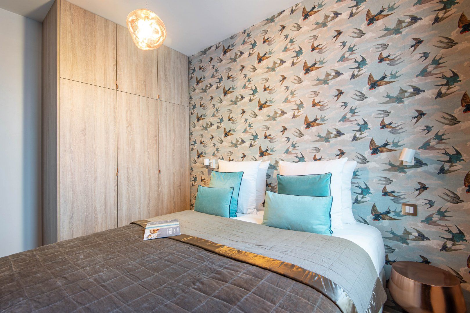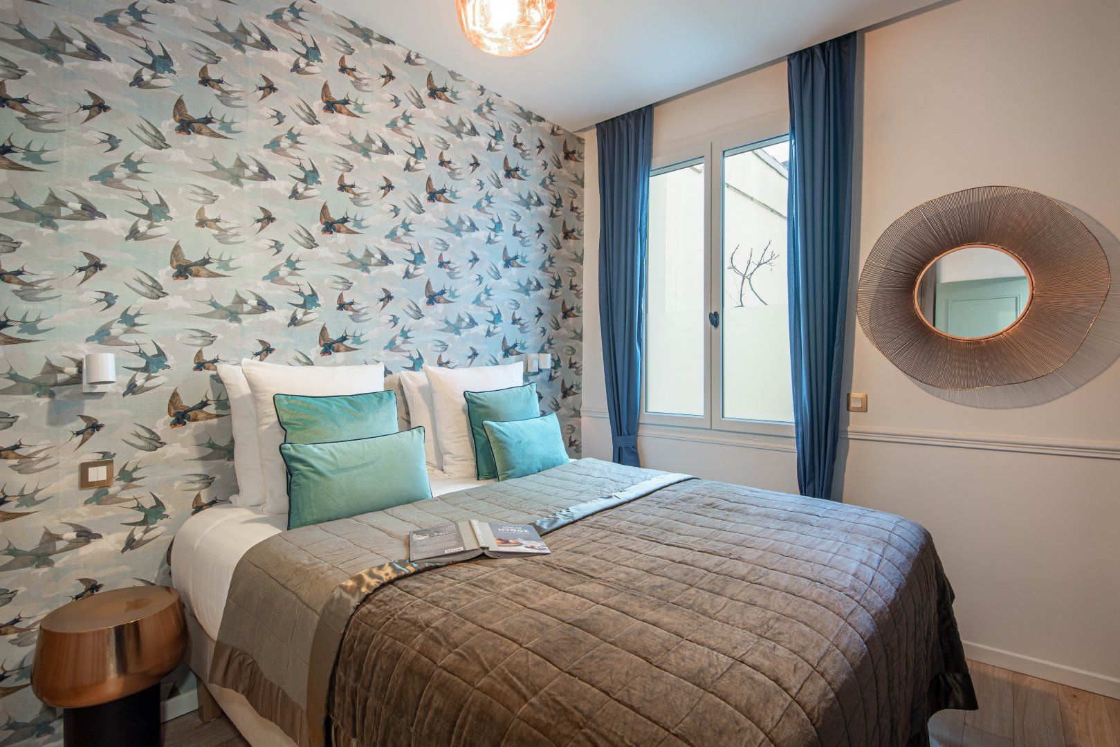 Located on the ground floor, in an old shop, this Parisian home is ladled with not only history but endless charm too. Warm and homely finishings make for an inviting living space for a large group of guests to gather around. Light fills the room as the floor-to-ceiling frosted glass windows allow the sun the reflect off the cool turquoise blue interiors beautifully. With enough space for up to six people, the roomy dining table is the perfect spot to share coffee, baguette and pastries in the morning while planning the day's itinerary. Head out for a spot of sightseeing, starting with the Eiffel Tower, which is just a twenty-minute walk away. Stroll along the River Seine from there or hop on the underground metro until you wind up amidst the popular shopping districts and museum areas of your choice. Why not catch an exhibition at the Grand Palais, before hitting the shops of the Champs-Elysées? If the prospect of having so many things to see and do is somewhat overwhelming – feel rest assured in knowing that the plush sofas, cloud-like beds and a dreamy bathtub will be ready and waiting for you at whatever time you choose to return home.