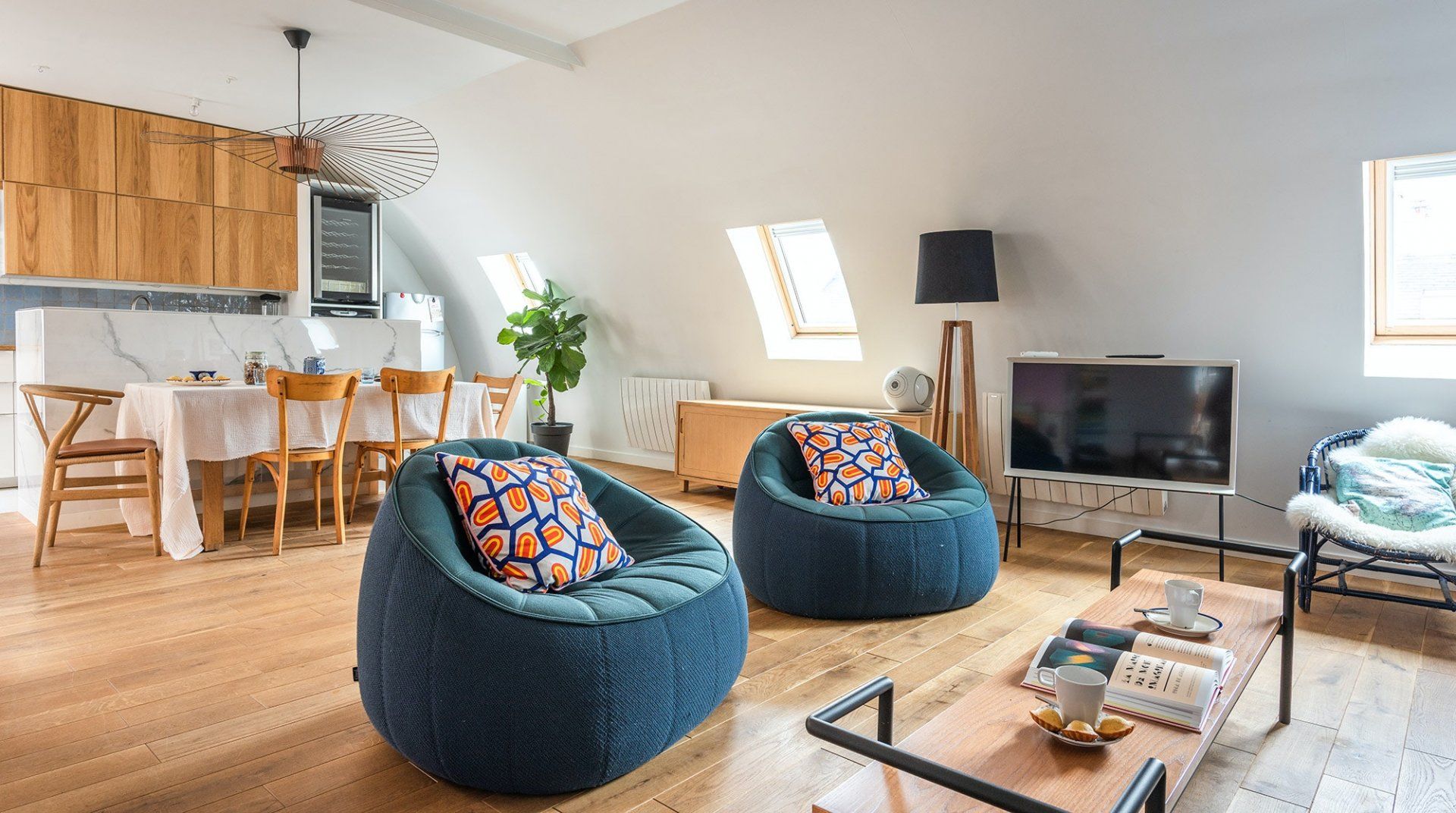 This chic apartment in the 7th arrondissement might be owned by a pair of designers, but it is more than road tested for family life. There's a guaranteed distraction for every age: expect plenty of toys, home cinema, library and craft supplies as well as a speaker to play all your tunes. We particularly loved the open-plan kitchen perfect for keeping an eye on the little ones while you assemble up a French feast. Getting delicious fresh produce is easy, with a delicatessen, bakery and patisserie just a minute's walk away from the flat. The streets around here are charming and tranquil while still being close to some iconic sights – the Eiffel Tower is only a five-minute stroll away. And when you just need to relax, those retro blue chairs are perfect for flopping down as you plan your next adventure.