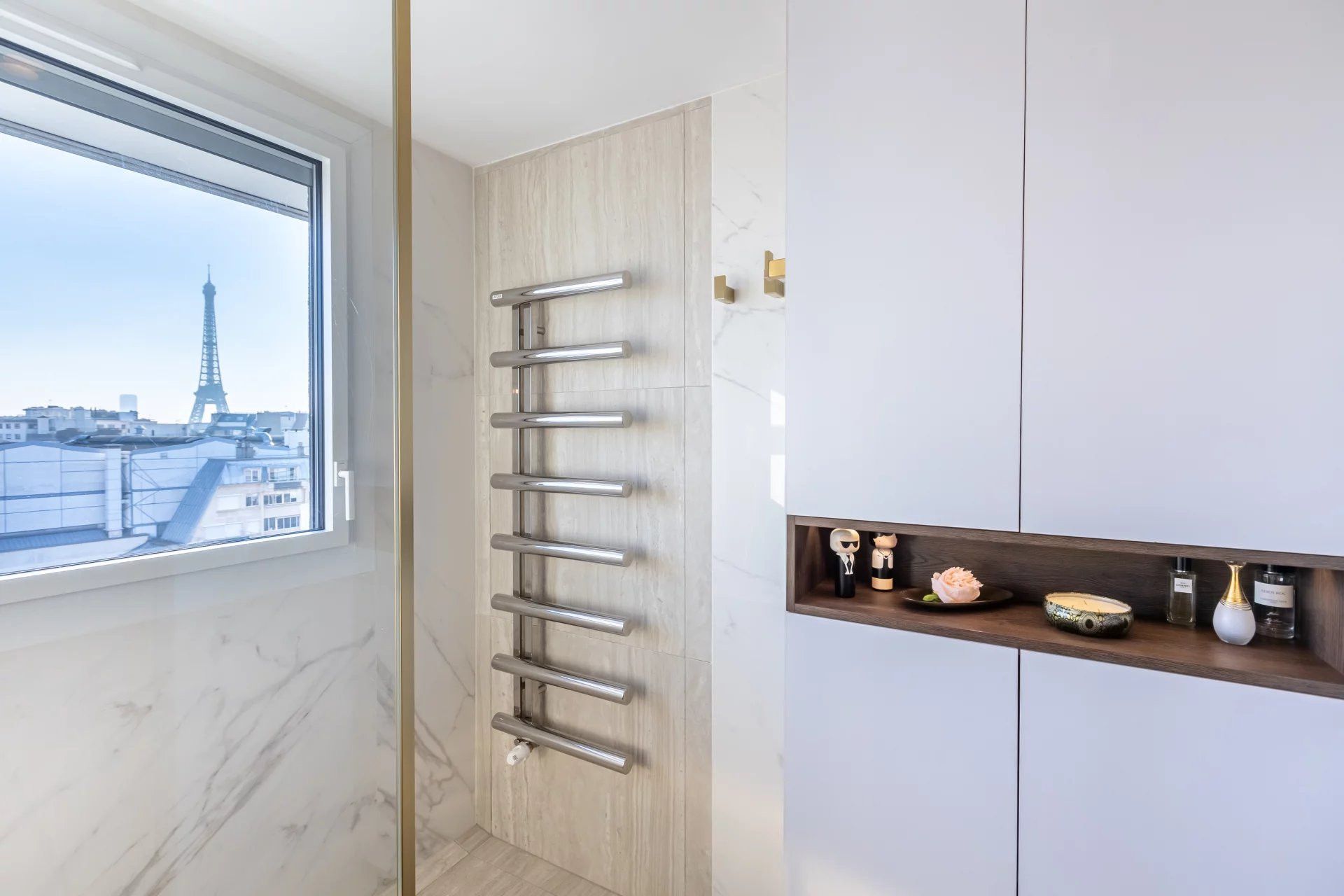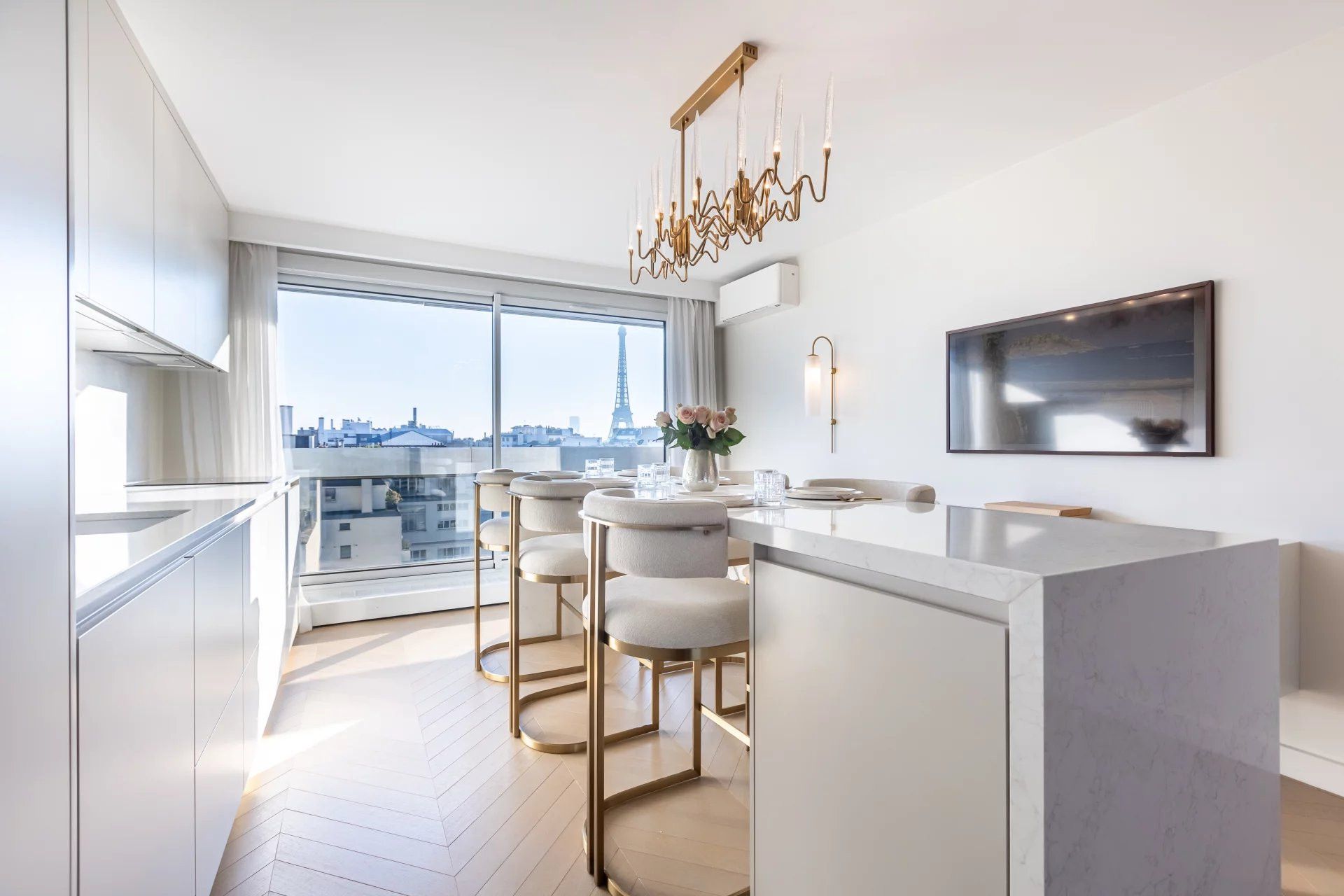 Style, quality and exceptional views are the highlights of this 16th arrondissement apartment. Inside, you can admire the Eiffel Tower while lounging in the bedrooms (both of which have en-suite bathrooms). There is also a private covered terrace and the dining table lends itself perfectly to sunset drinks. It’s worth noting there is no private parking available here, but you will find everything you could need within easy reach. From here, it’s just a short walk to Place du Trocadéro, while boutiques, restaurants and cafes are all a short stroll away.