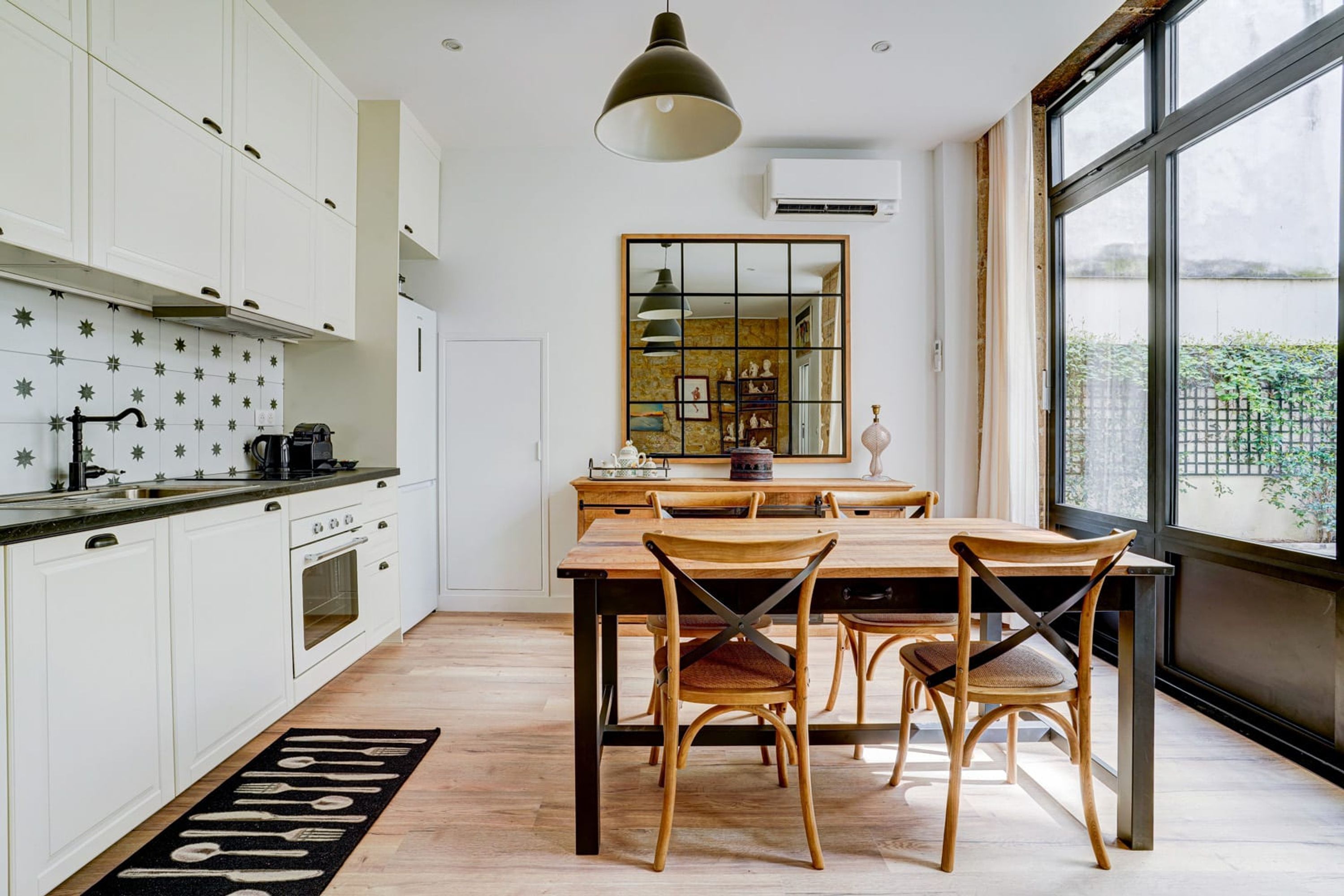 This cosy apartment offers a well-connected city stay in the heart of the 7th arrondissement. You’ll be steps from Bon Marché as well as markets, cafes and restaurants. It’s also just a two-minute walk to the 10 Vaneau metro station – making it easy to get across the city. The apartment has a studio-style layout and works perfectly for couples and solo travellers. There’s a desk for remote workers and the little patio is the ideal spot for warm weather drinks. Your host is also on hand to help organise extras like fridge frills and organised tours.