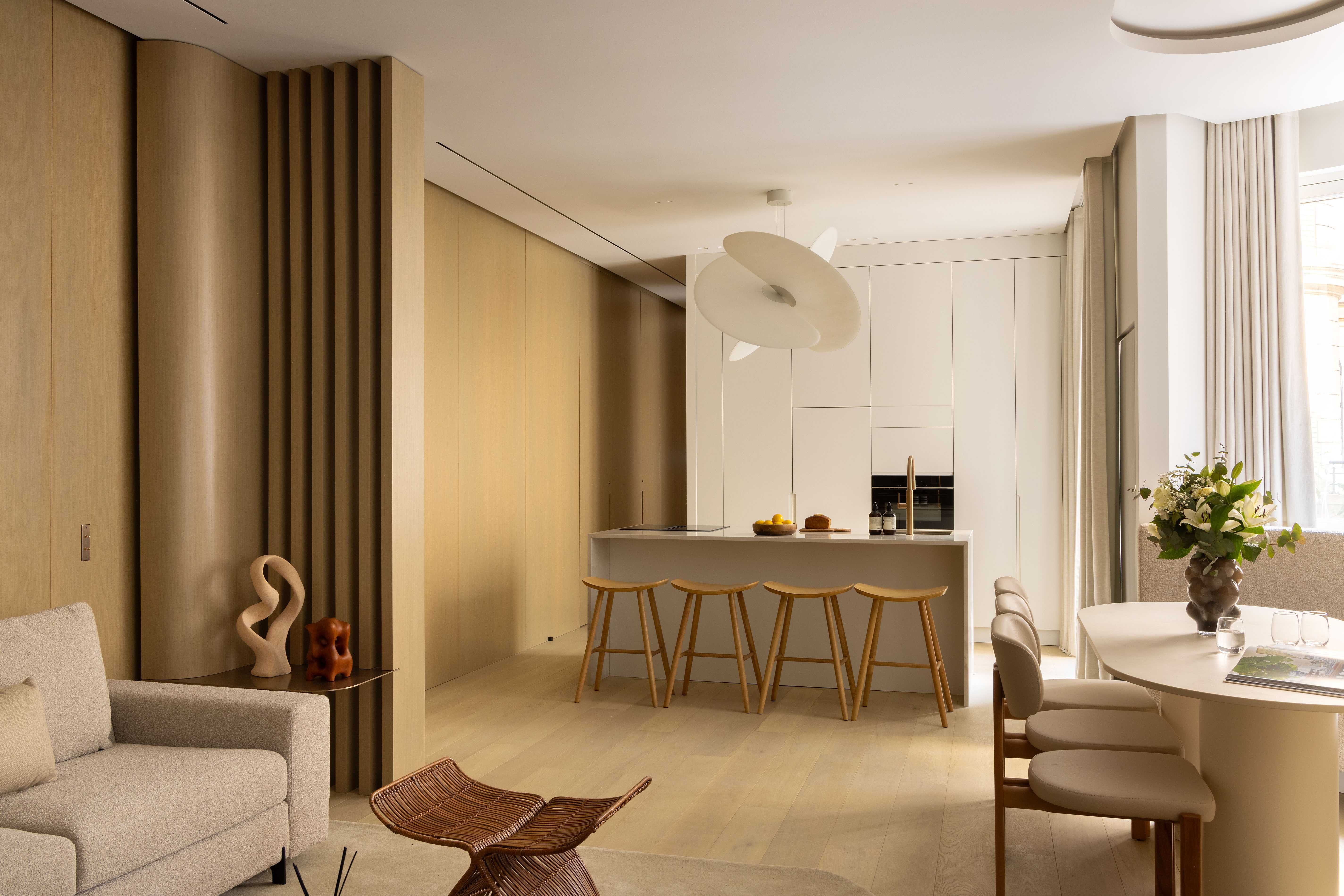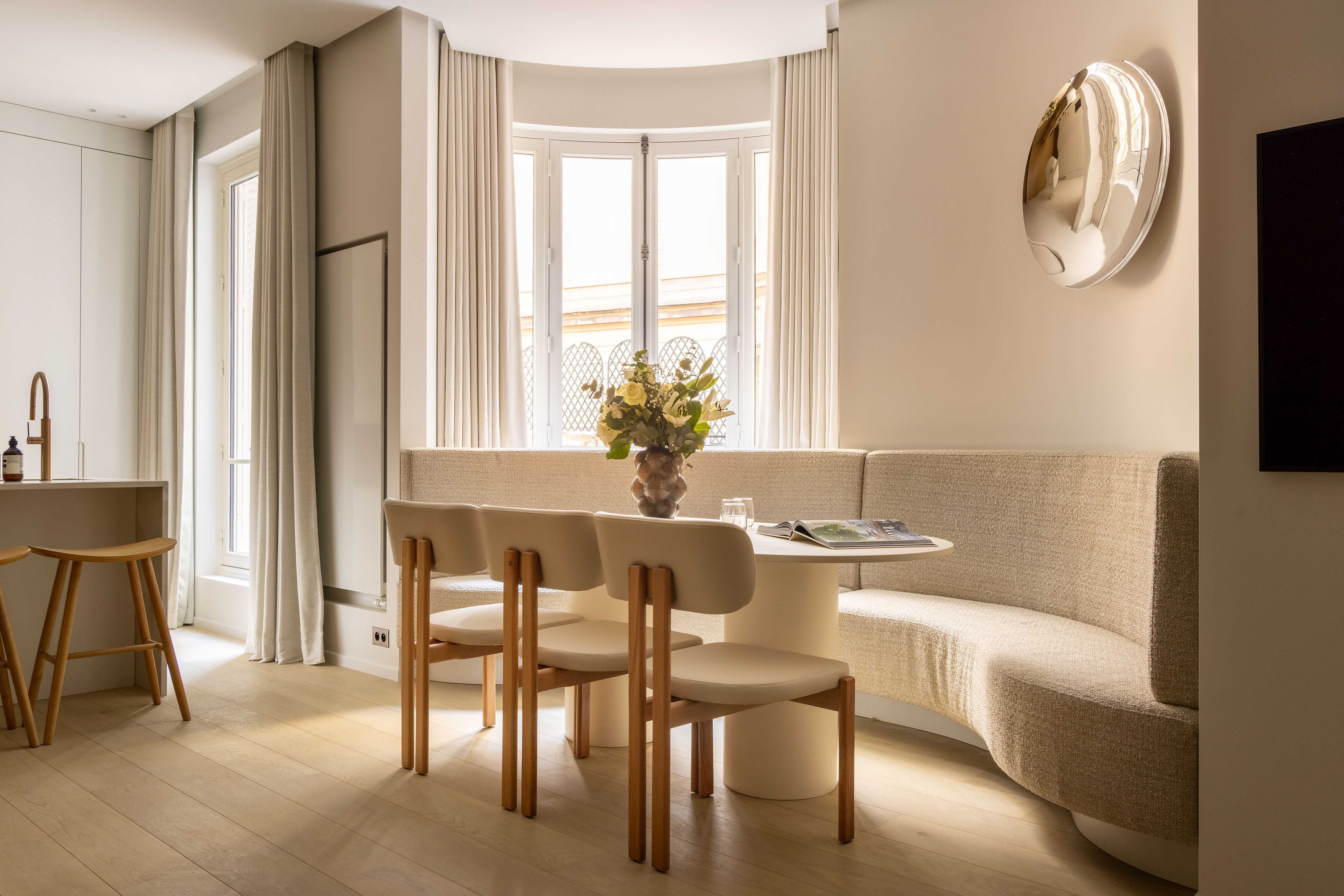 Effortlessly stylish and simple, this apartment perfectly embodies the Paris we love. Tucked in a classic Haussmann building, the rooms are ideal for families in search of a peaceful sanctuary to call home. There’s a sofa bed in the living room, two cosy bedrooms and two bathrooms with underfloor heating. Step outside and you’ll find it’s just a short stroll to iconic sights like the Champs-Élysées, the Opera and Parc Monceau. Paid street parking is available and it’s just minutes to the nearest Metro lines for explorations further afield.