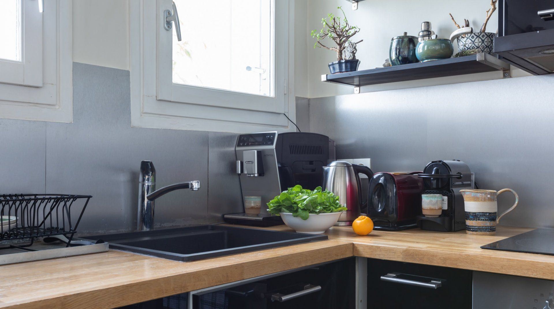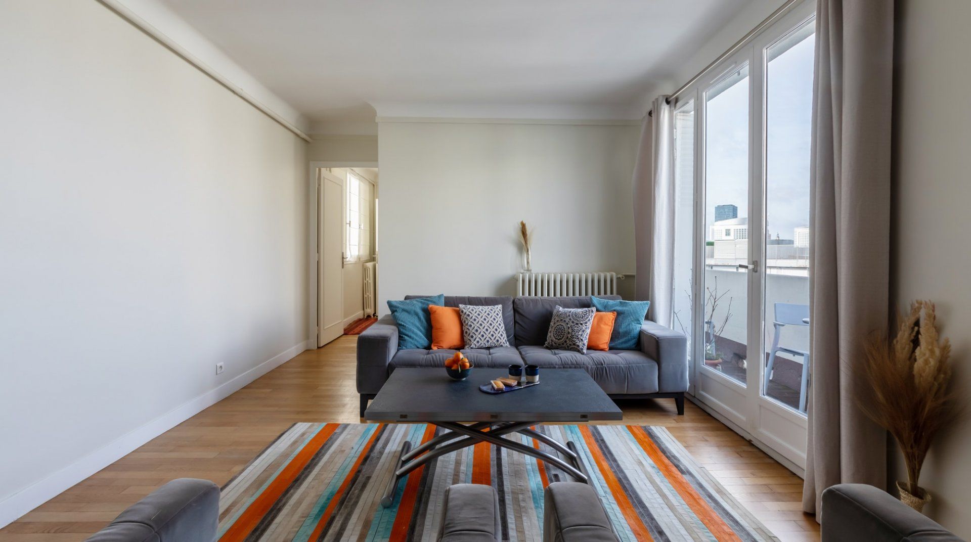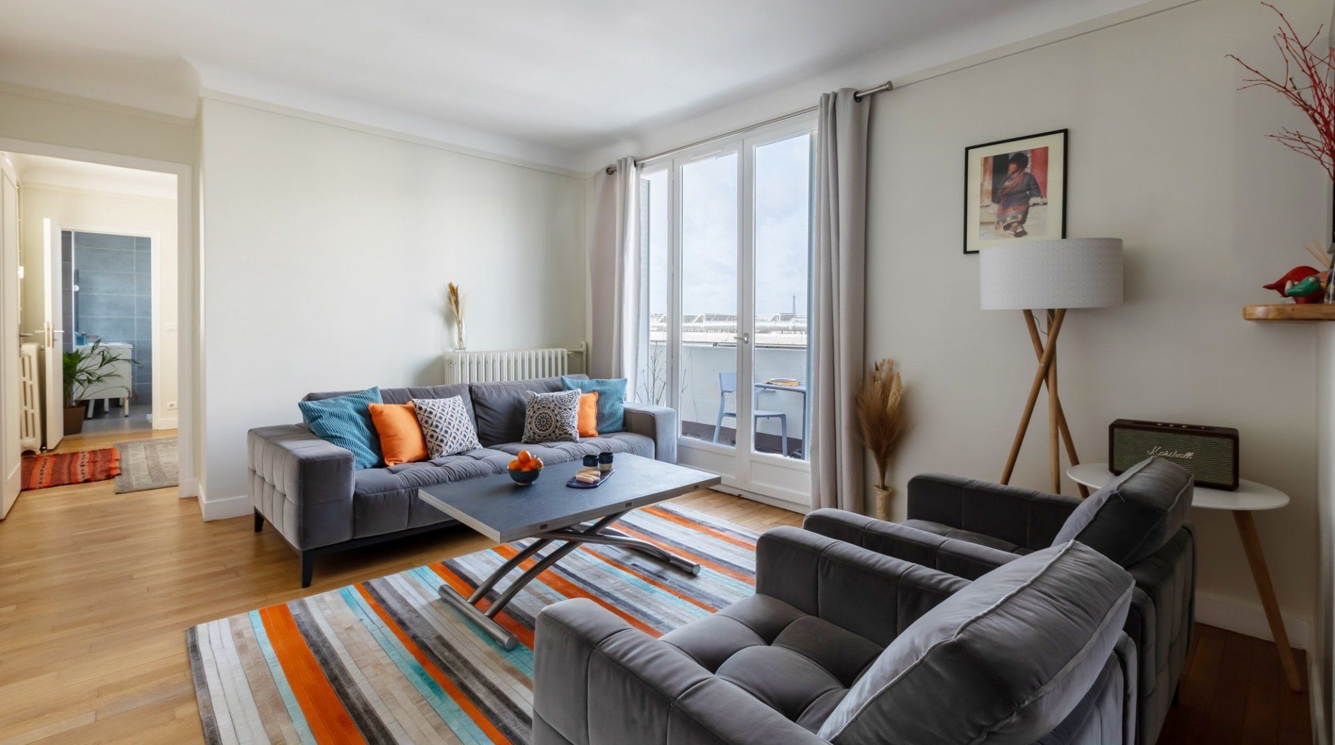 As smart as a three-piece suit but with a touch of boldness, this home in the Arsenal district is conveniently located at a safe distance from the hordes of tourists of the Marais, but still close enough to be able to join the party. Overall spacious and decluttered, it still boasts some personality and would suit either a small group or even a couple looking to have some extra space, with its TV room that doubles up as a bedroom. This home's secret weapon? – its terrace offers partial views of some of Paris' most iconic (and taller) sights.