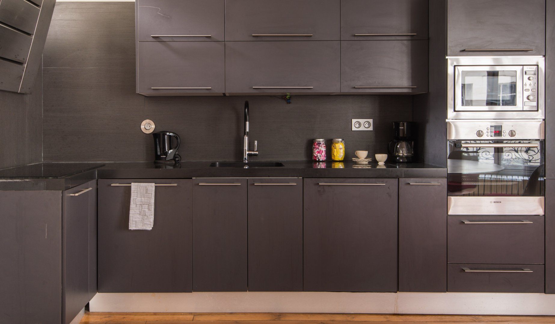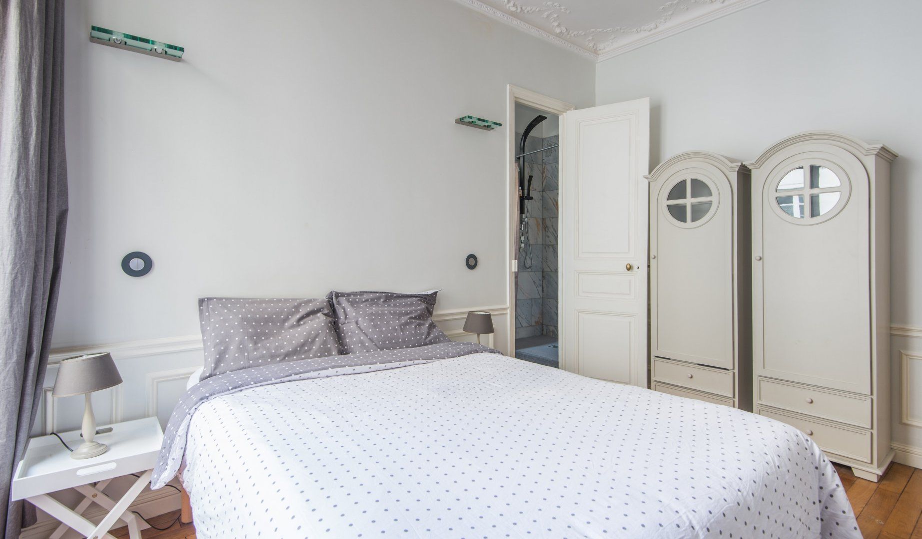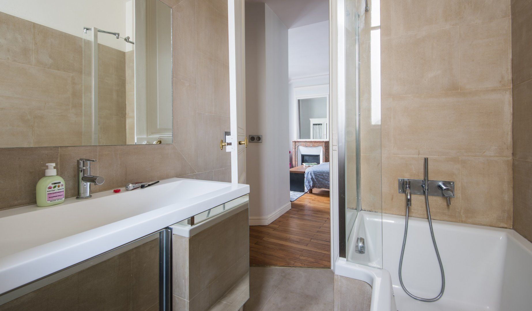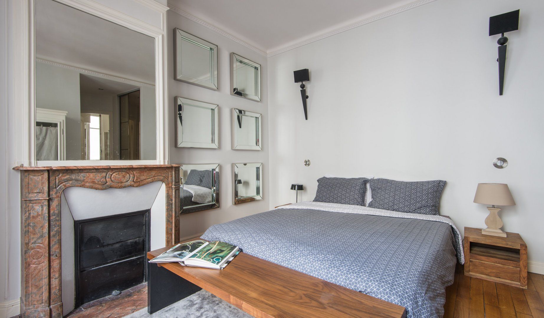 A prime example of Haussmannian elegance, this apartment's period features coexist with modern interiors that are a nod towards mid-century minimalism. What makes it even more attractive is how the lounge blends effortlessly into the kitchen and dining area to really make the most of the living space. We can see ourselves taking an easy stroll between the coffee maker and couch to continue reading Proust with the windows thrown wide open.