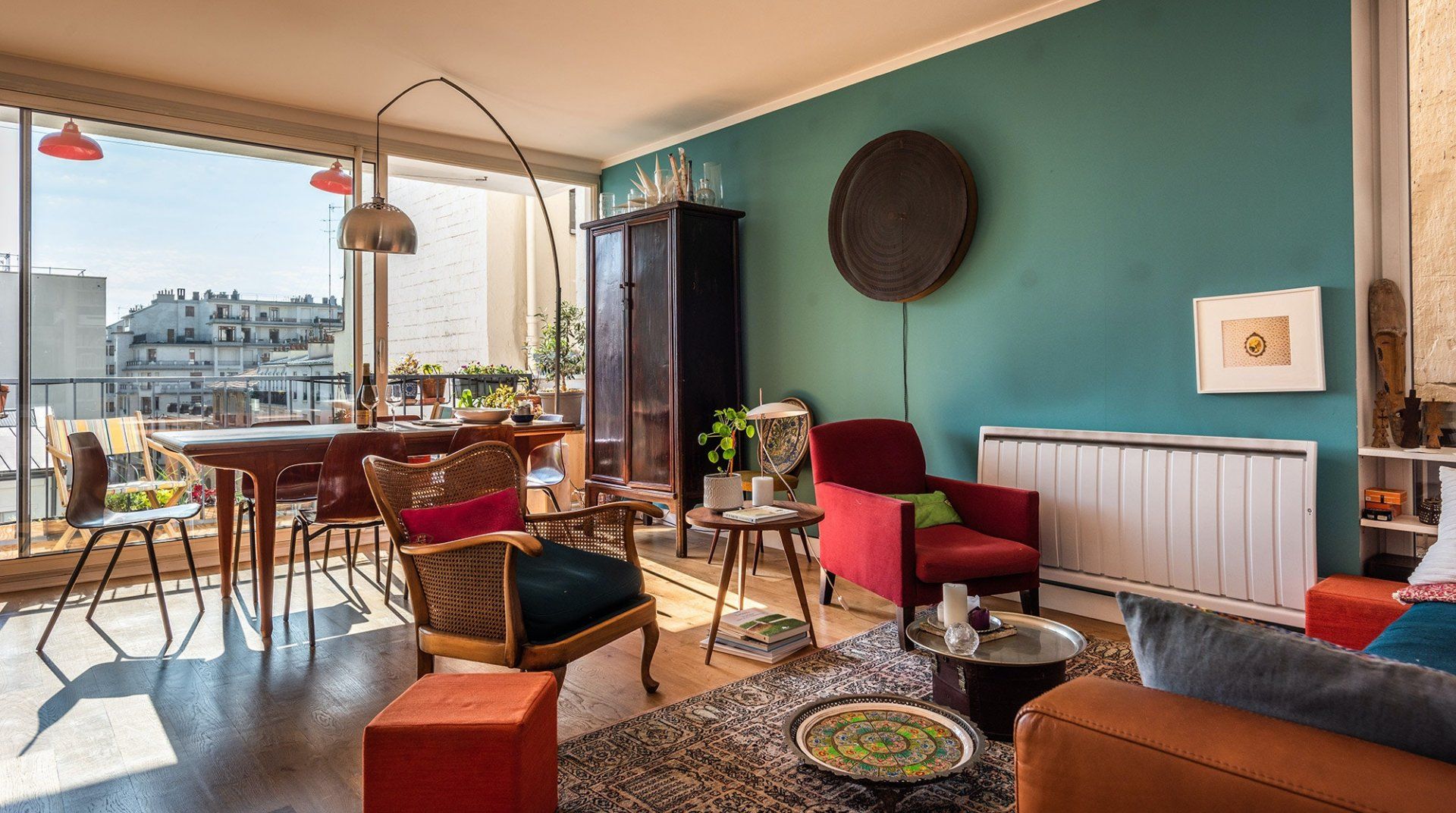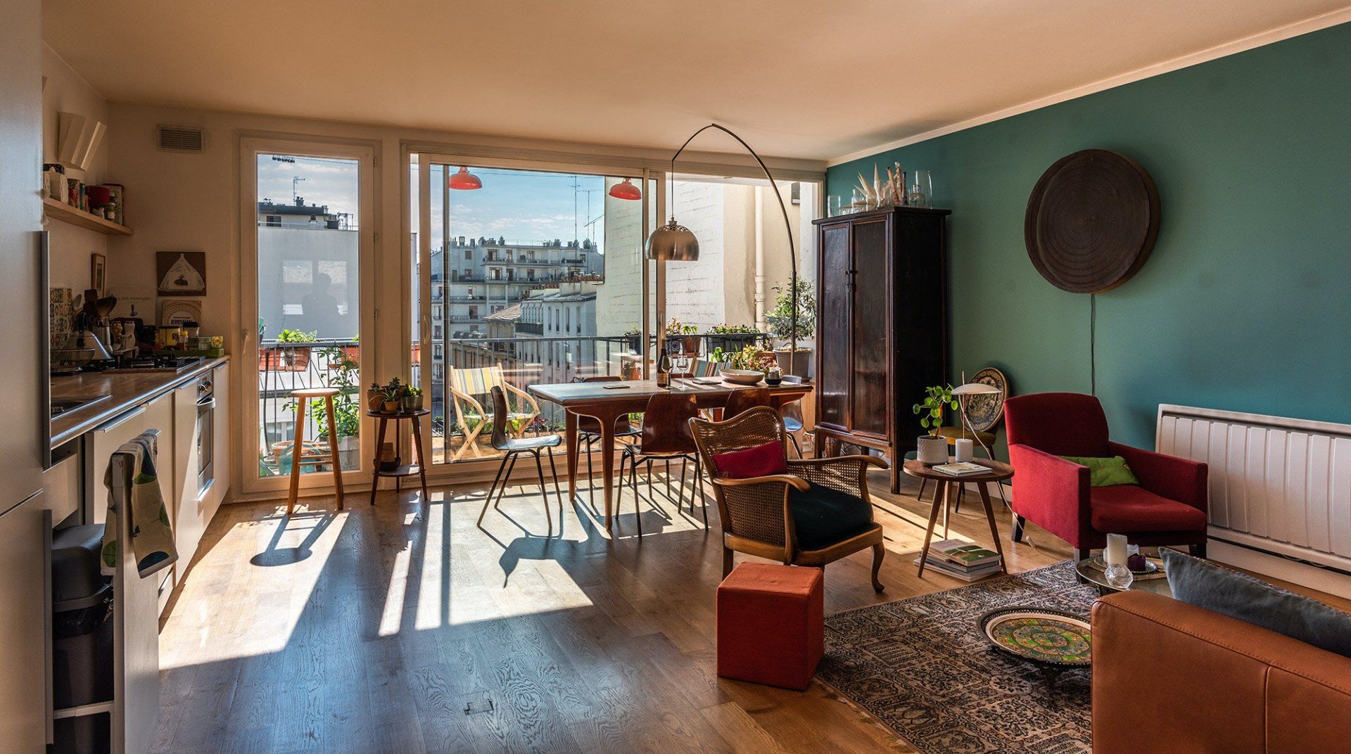 This bright and positively colourful apartment offers a cosy space for a family or group looking to stay away from the hordes of tourist. It's a practical open-plan living space that boasts a stylish interior with many vintage pieces, an assortment of textures, chairs and curated plants that makes for a refreshing place to hang out and rejuvenate. Although the real star of the show is the natural light that pours in through the sliding glass doors and opens out onto a sunny balcony. The home's extensive library and charming outside space provide the perfect excuse to stay in and soak up the sun with a good book. But when you're not catching up on your literature, there's a local area full of Parisian authenticity, classy cafés and cultural attractions, including the Sacré-Cœur Basilica and the Sinking House of Montmartre – only a twenty-minute walk from your door.