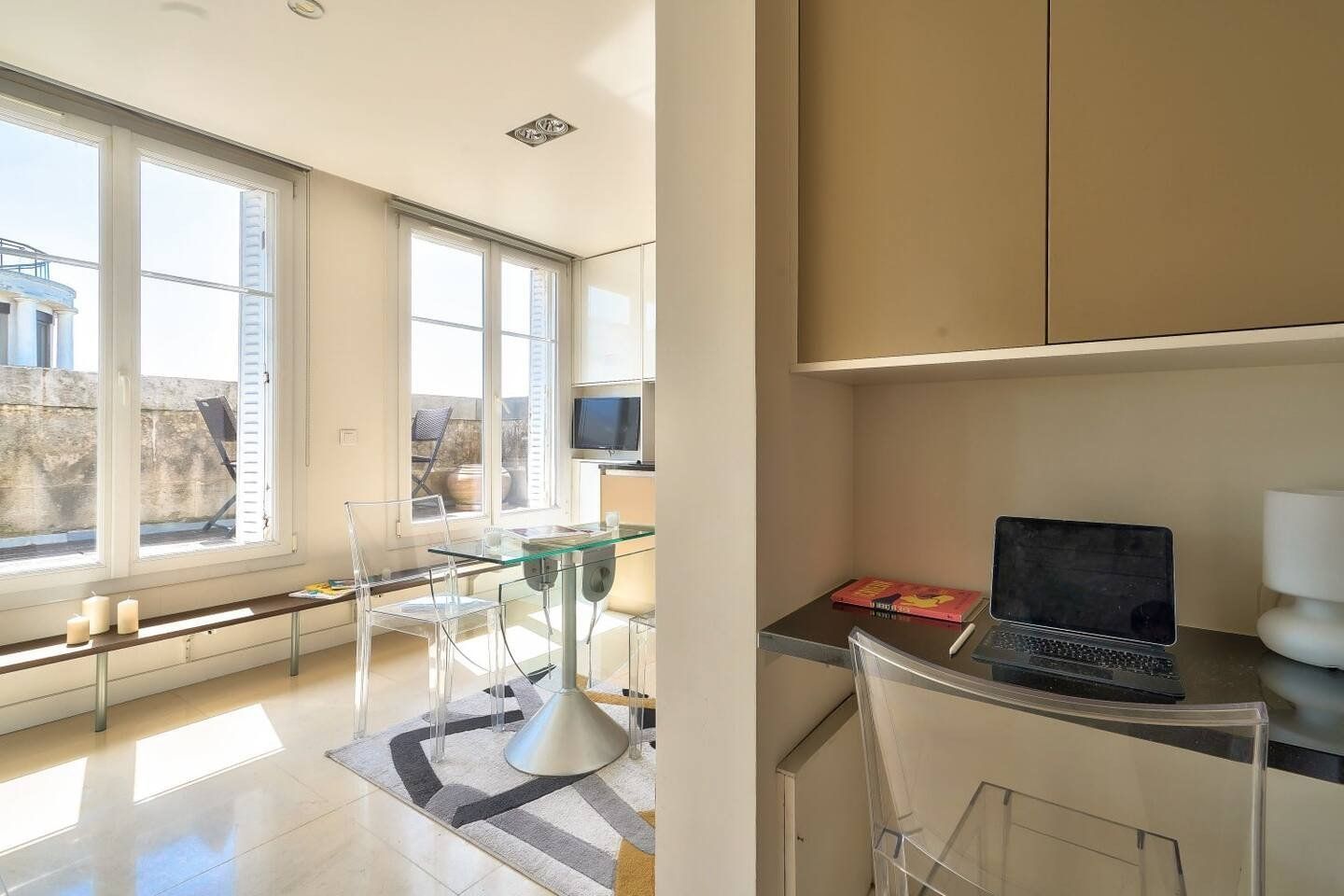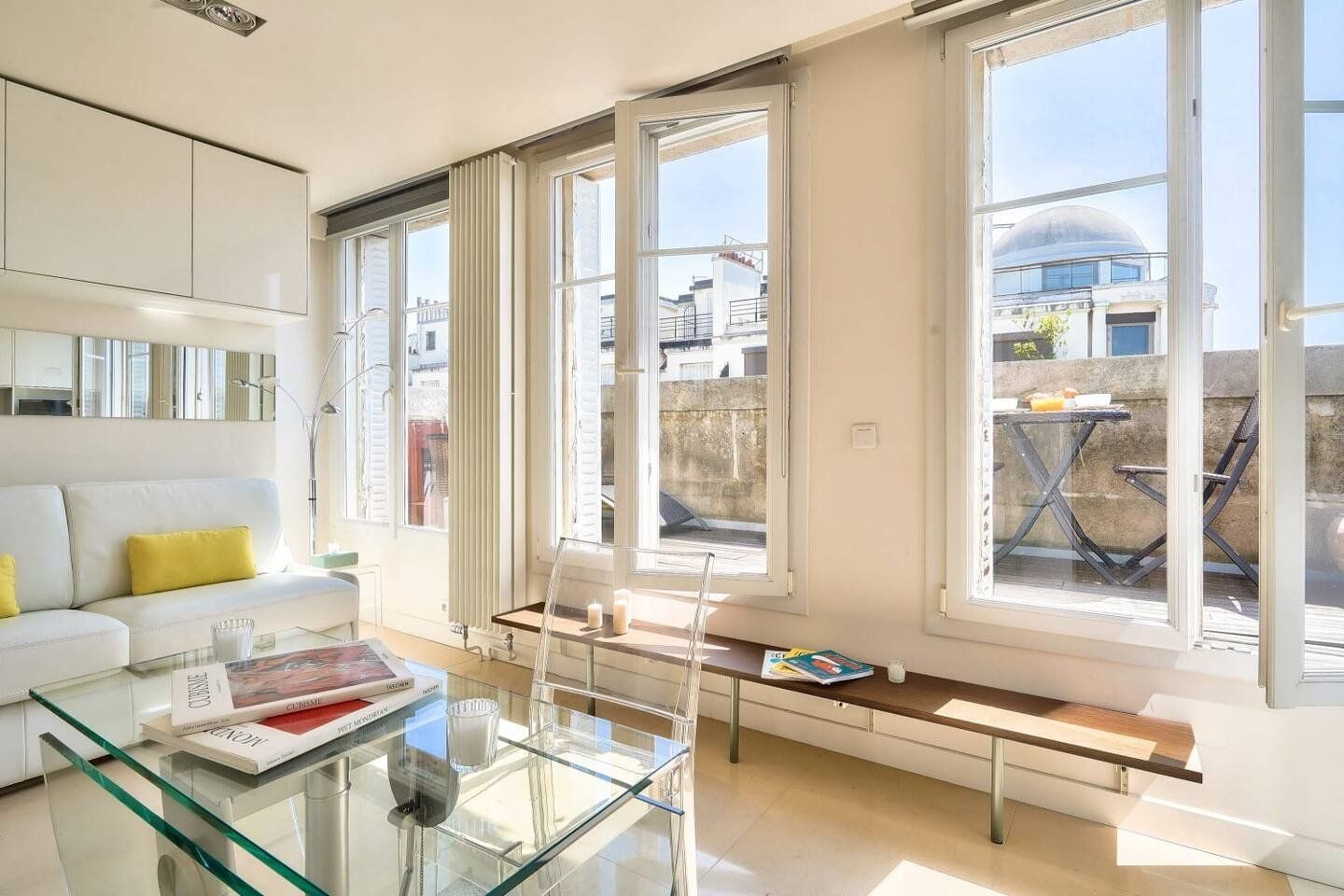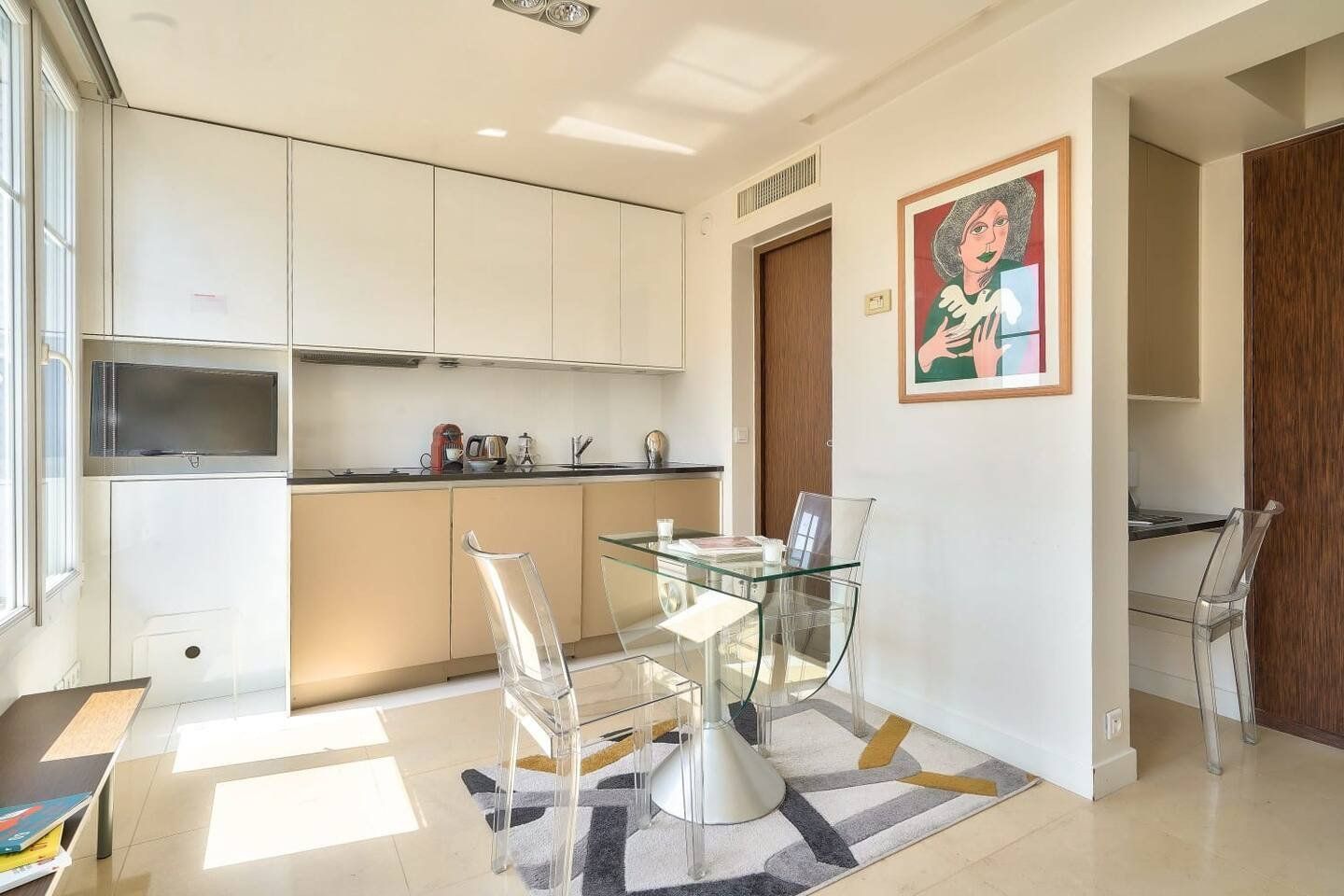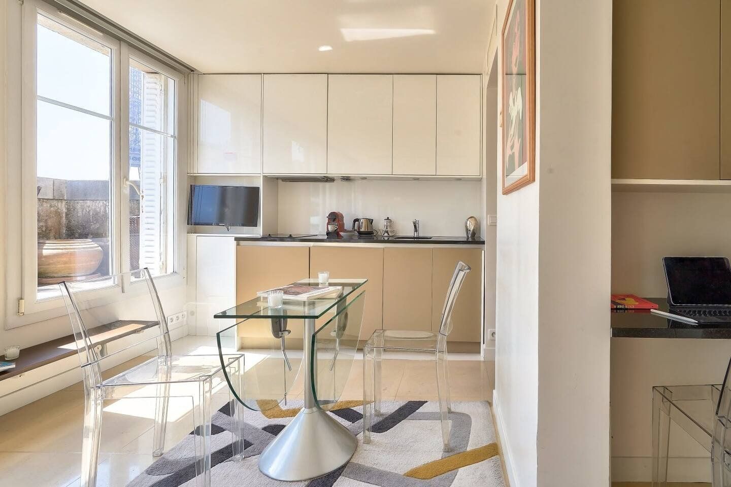 If your Parisian dreams involve a jaw-dropping vista of the Eiffel Tower then you've come to the right place – because this home has a view that's to die for. Imagine waking up and stepping out onto the private balcony to enjoy fresh coffee and croissants in the morning sun as you gaze across the rooftops at one of the most iconic buildings in the world. This is also the perfect spot to relax after dark with a glass of pinot noir – they don't call it the city of lights for nothing. Inside, the home is compact yet chic, as many Parisian apartments are, and we particularly liked the see-through dining furniture that adds a playful touch to the space. Cross the river, and you'll arrive at the Avenue des Champs-Élysées in around fifteen minutes, and the Arc de Triomphe in around twenty. There's also plenty for art lovers to see nearby – the Palais Galliera and Paris Museum of Modern Art are less than ten minutes away on foot.