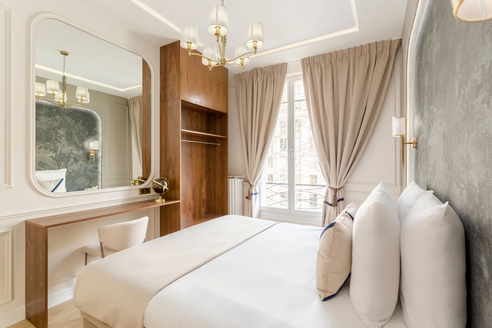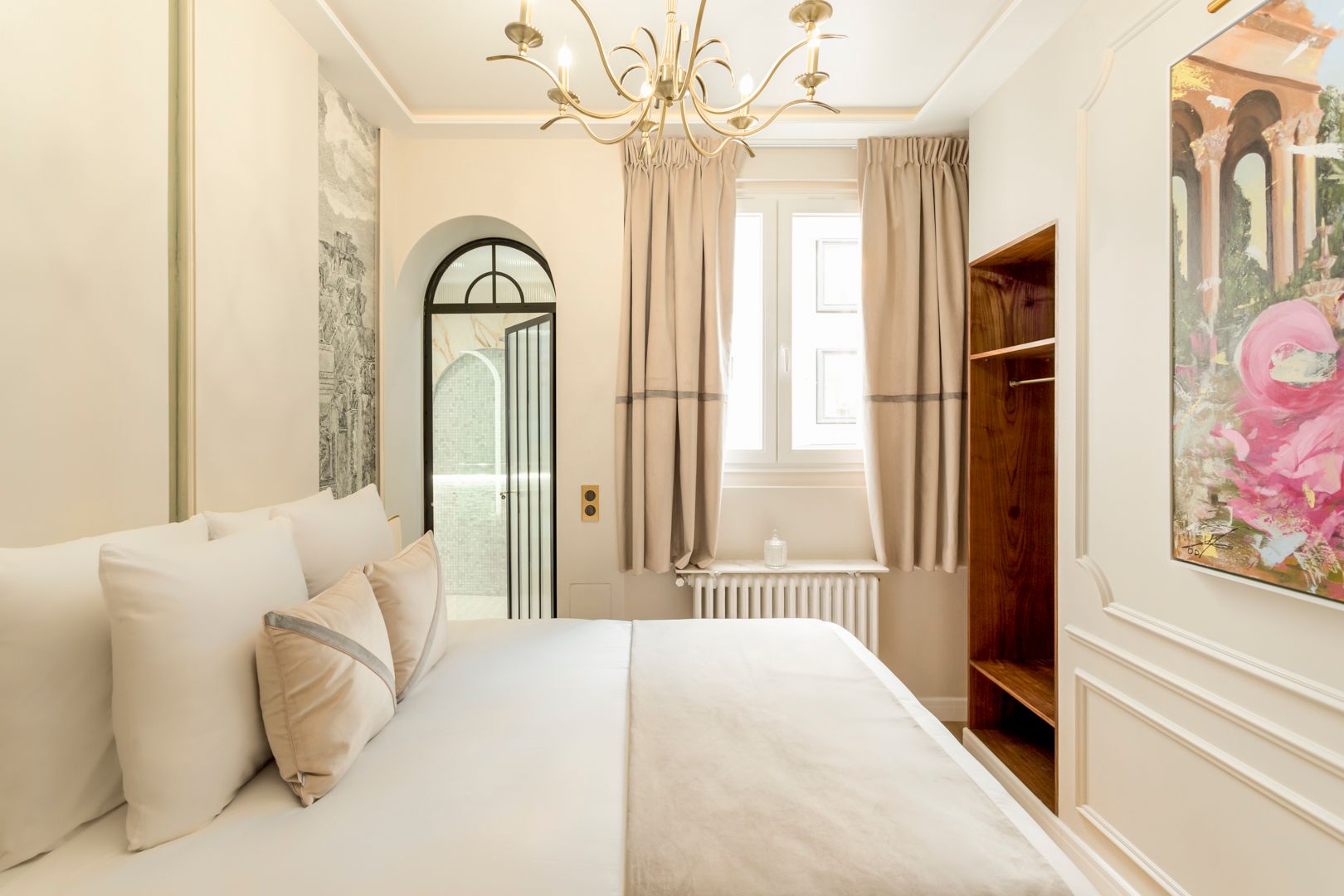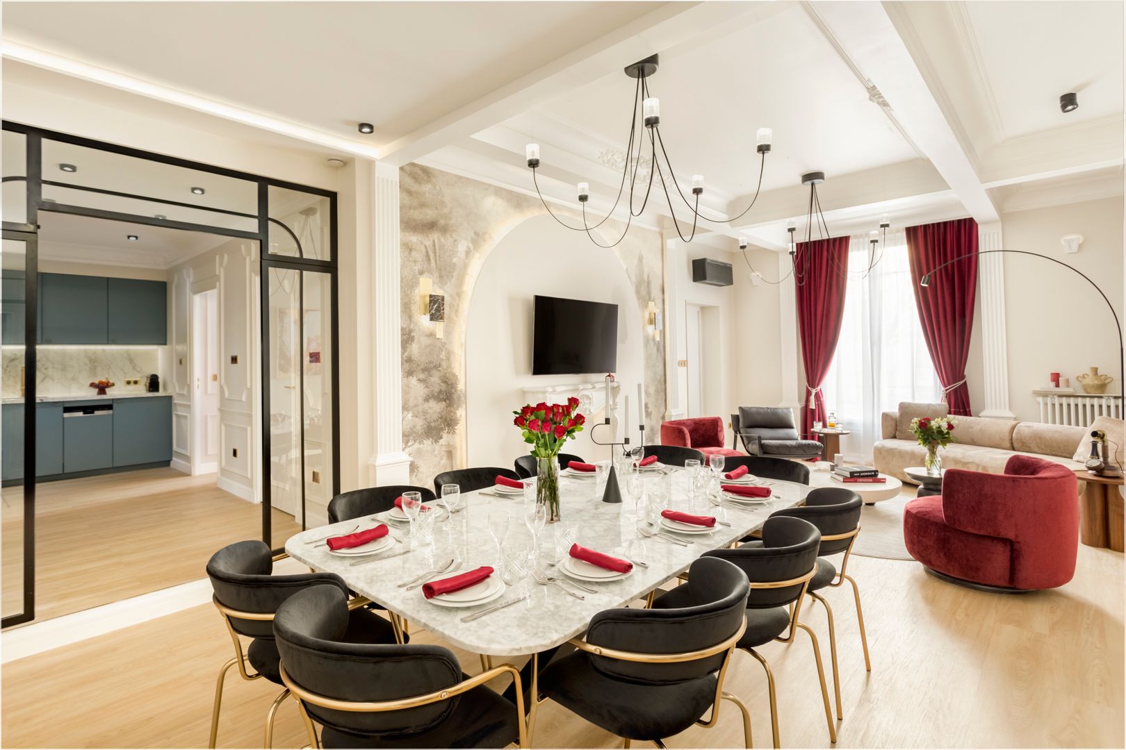 What a great address this apartment has – it’s a short walk from the Arc de Triomphe and all the boutiques and fine-dining restaurants of the Champs-Élysées. If culture is more your thing, well there are a variety of museums within walking distance too, including the Palais de Tokyo and Musée Yves Saint Laurent. Housed in a classically Parisian building, this apartment has a wonderful living room – perfect for entertaining. The kitchen, in contrast, is a little more compact, but it has everything you need or bypass the cooking entirely and let your host arrange a private chef.