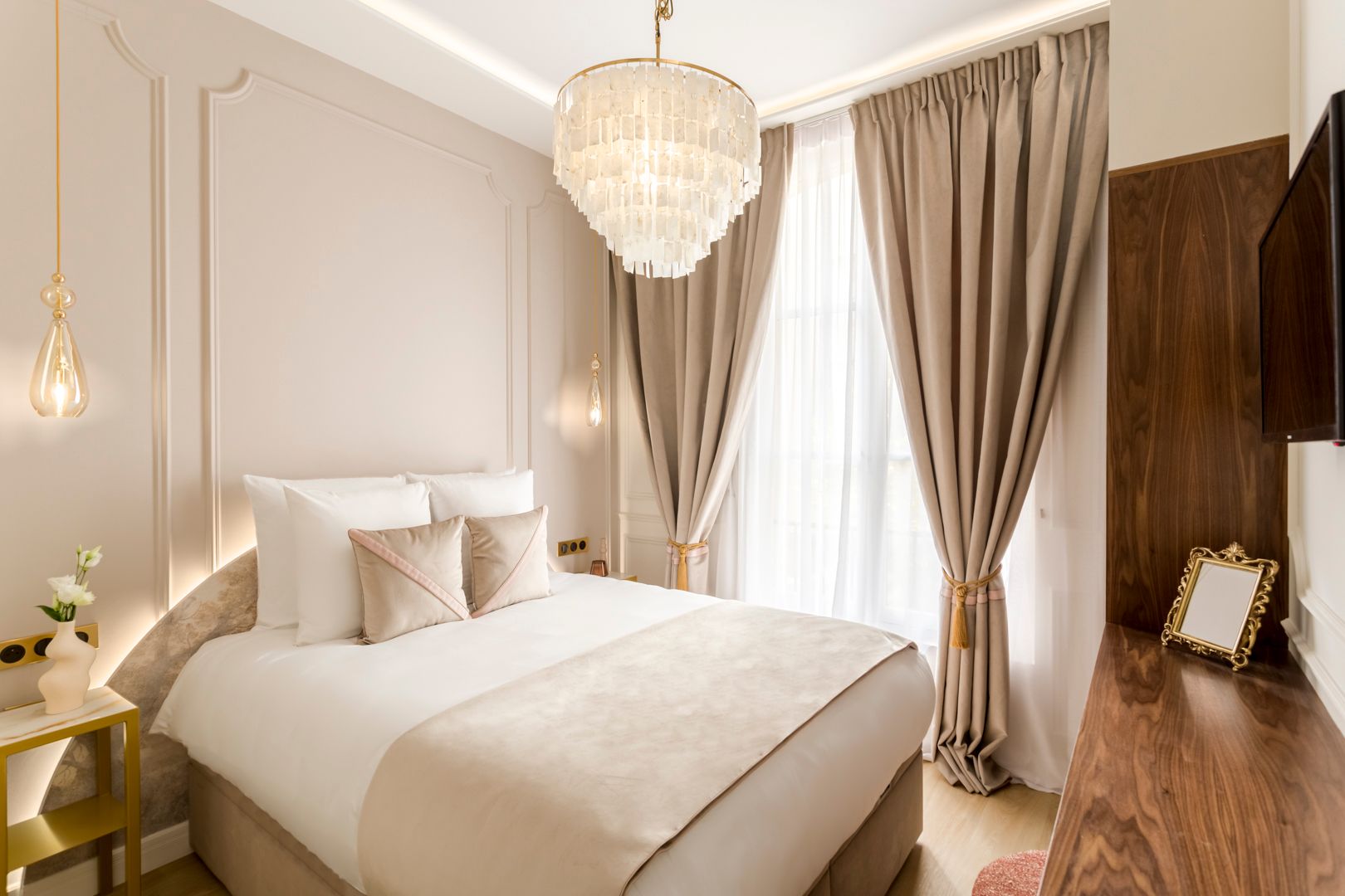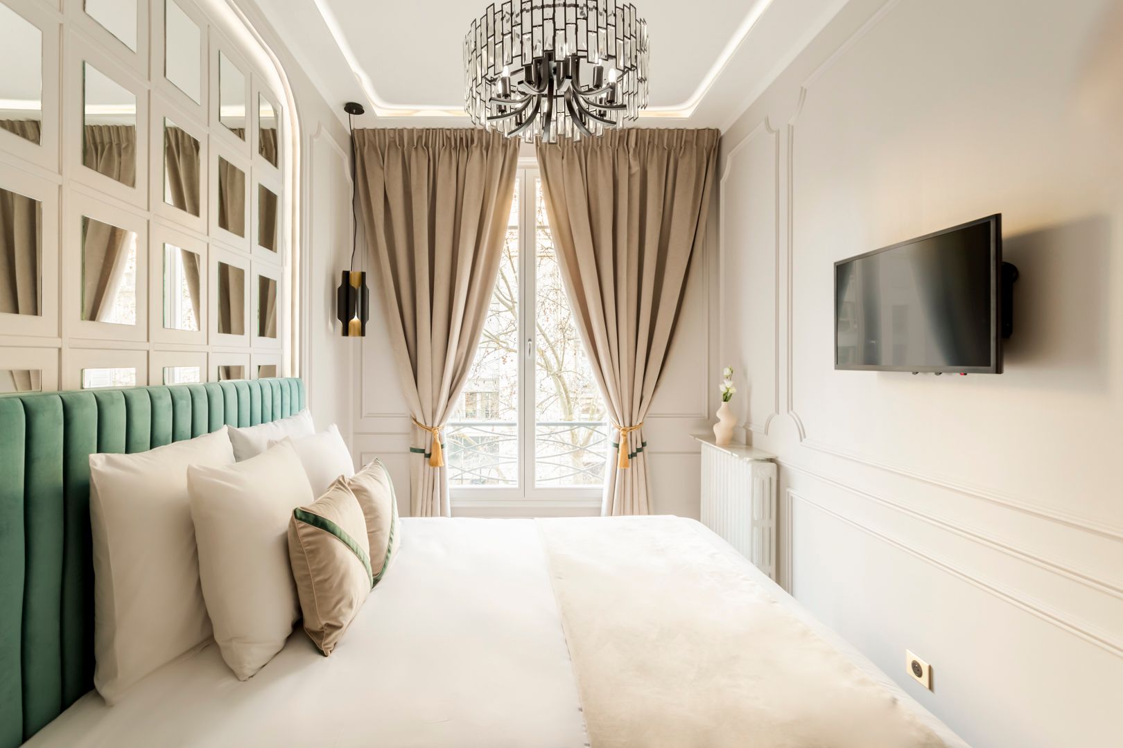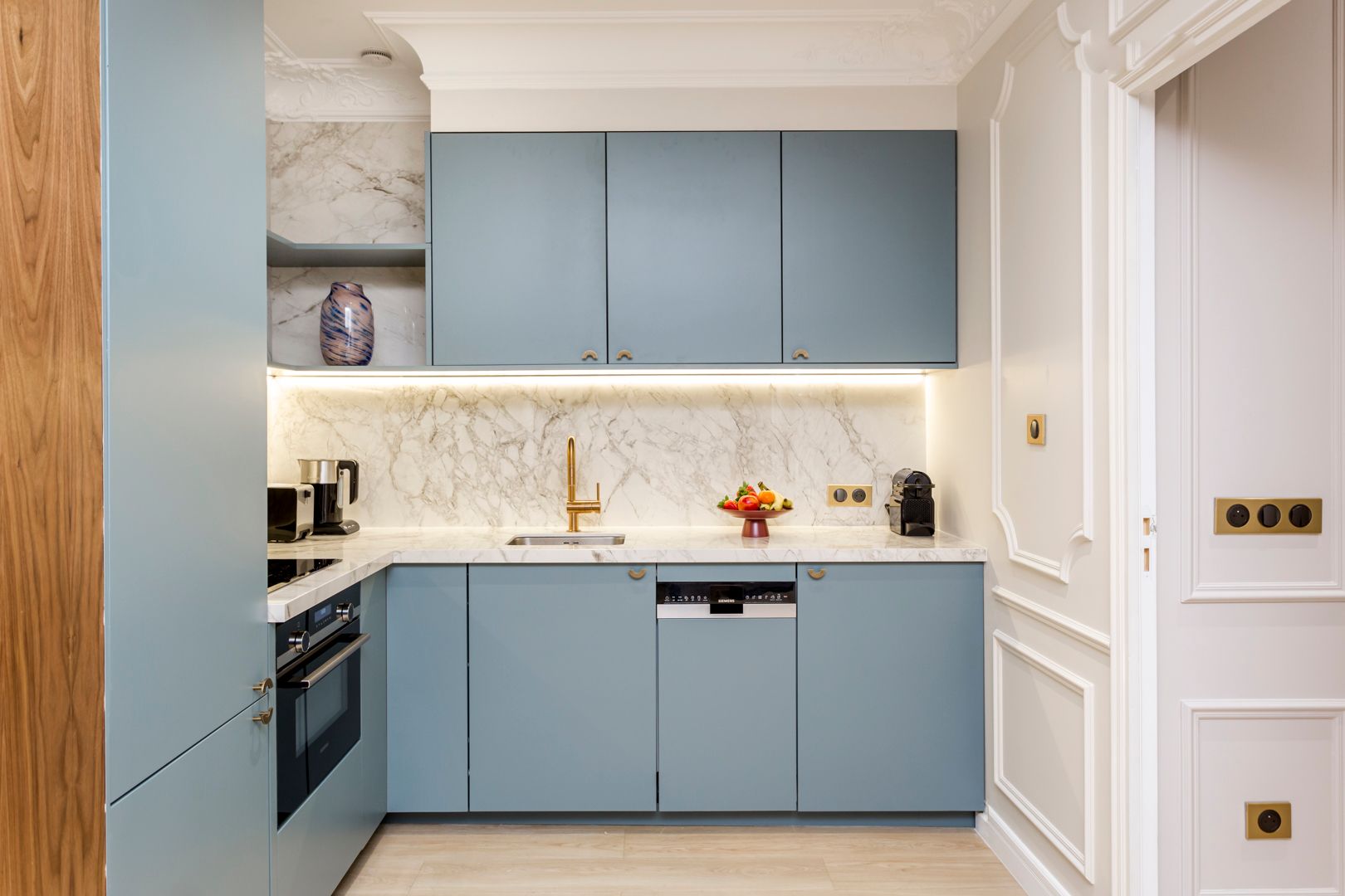 What a great address this apartment has – it’s a short walk from the Arc de Triomphe and all the boutiques and fine-dining restaurants of the Champs-Élysées. If culture is more your thing, well there are a variety of museums within walking distance too, including the Palais de Tokyo and Musée Yves Saint Laurent. Housed in a classically Parisian building, this apartment has a wonderful living room – perfect for entertaining. The kitchen, in contrast, is a little more compact, but it has everything you need or bypass the cooking entirely and let your host arrange a private chef.