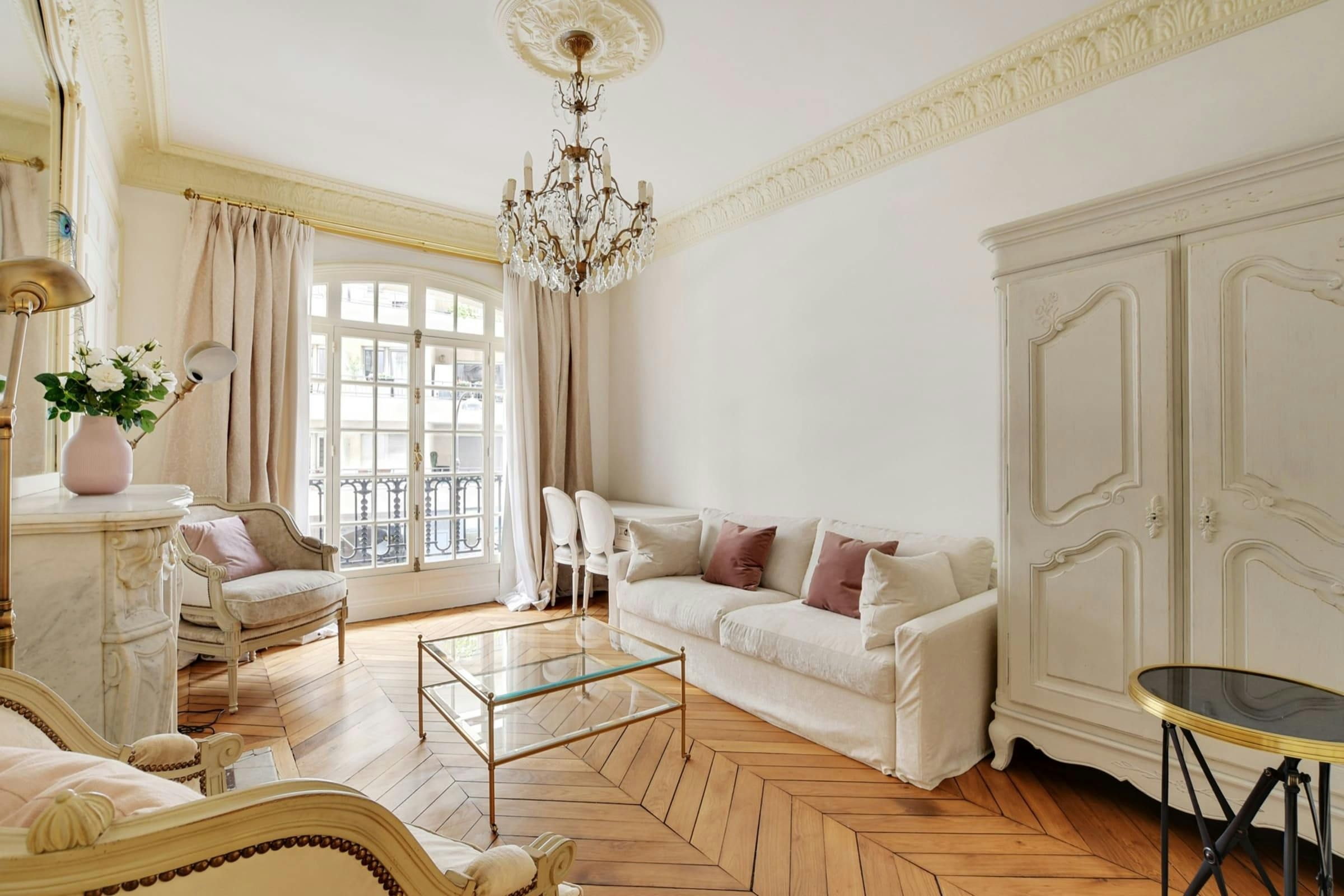 Step into Parisian elegance in this beautifully styled apartment, set in one of the city's most exclusive neighbourhoods. The space is a dream, with ornate mouldings, chevron floors and elegant furnishings. Two light-filled living rooms offer plenty of space to unwind, while the balcony is the perfect perch for soaking up the Parisian air and watching the world go by. There’s one traditional bedroom, while the second bedroom has a sofa bed. At full capacity, one guest will share the other sofa bed in the second living room, so there may be some queuing for the bathroom. But with so much space and style, this is a wonderful base for your stay in the capital.
