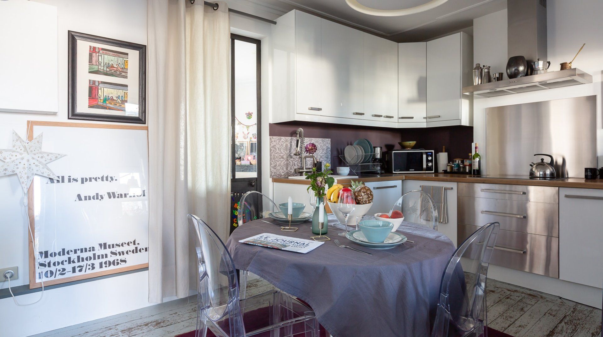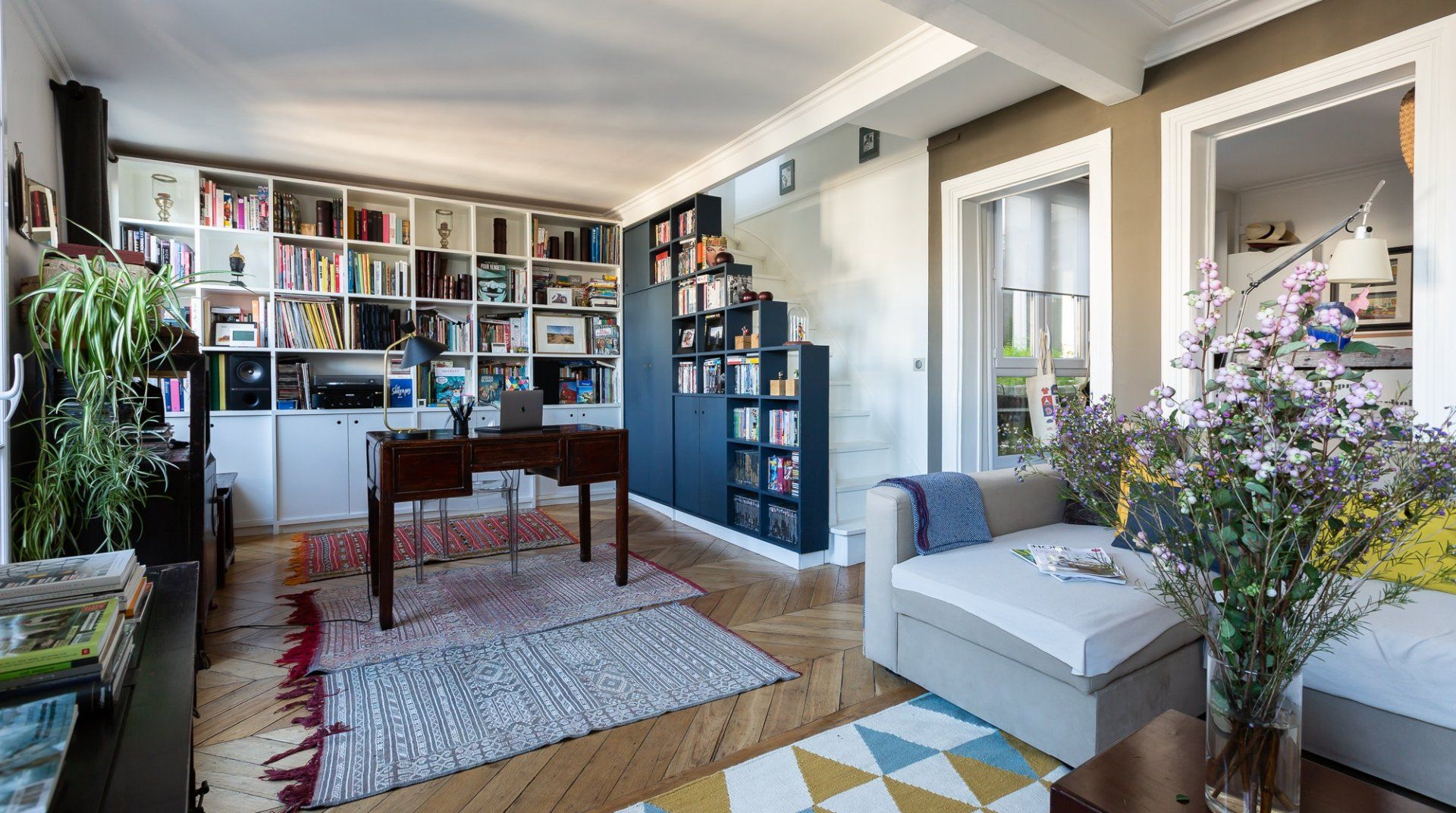 Fit for a family wanting an authentic Parisian experience, this apartment in Canal Saint-Martin exudes the life and personality of its hosts. Set on the fifth floor (prepare for a climb as there's no lift), this place is the definition of warm and inviting. Whether you're browsing the collection of books, enjoying a family board game night or just admiring the array of worldly trinkets brought back from the couple's globetrotting, there's something for everyone here. There's even a playful child's bedroom that's full of toys and books, making this home an ideal match for a couple with a younger one. And everyone will enjoy the balcony, which is overflowing with greenery, flowers and has a gorgeous view of Sacré-Cœur. With enough space for four, it's the perfect spot to enjoy morning coffees, alfresco dinners and glasses of wine as the sun goes down. Just one street from the canal, you'll find cafes, bakeries (including an excellent one right across the street) and restaurants aplenty, plus Jacques Bonsergent station just three minutes away.