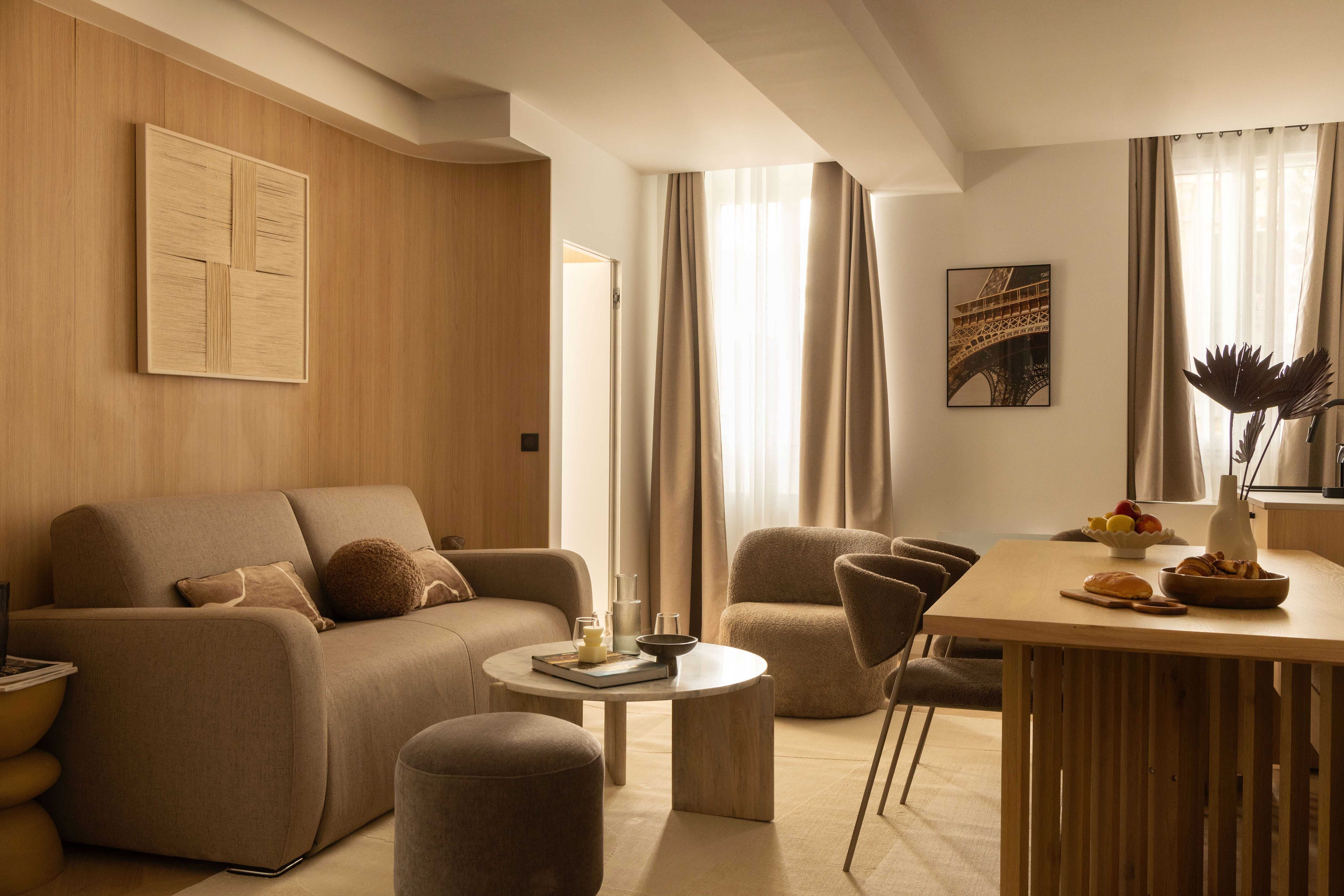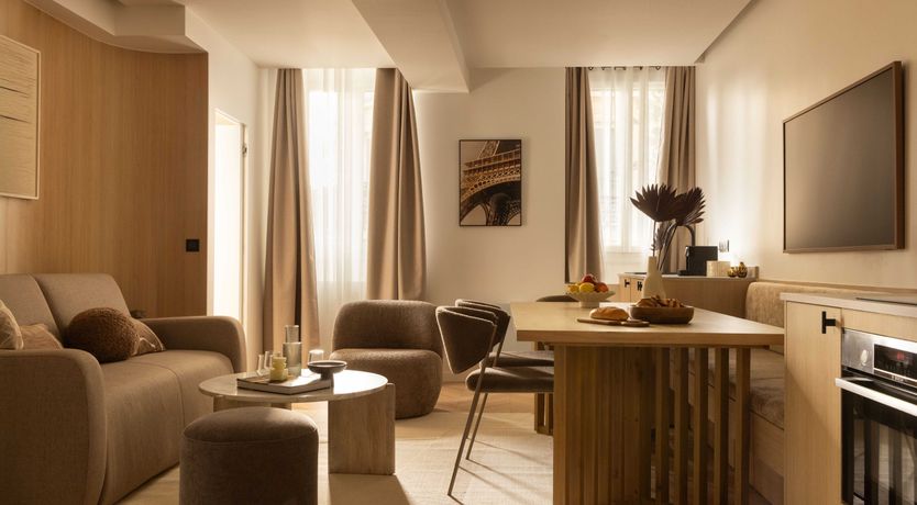 Close to Canal Saint-Martin and Gare de l'Est's transport links, this apartment is a fuss-free base in a buzzing area. It's on the smaller side for eight – particularly the kitchenette – but it's stylish, sleek, and comfortable. We can easily envision breakfasts around the dining table – come dinnertime, pop to the bistro downstairs for a bite. You'll be based in the 10th arrondissement. While it's not the most scenic part of Paris, it's well-connected and full of places to discover. We think it's a great option for those wanting to stay in a vibrant neighbourhood with a lot of nightlife.
