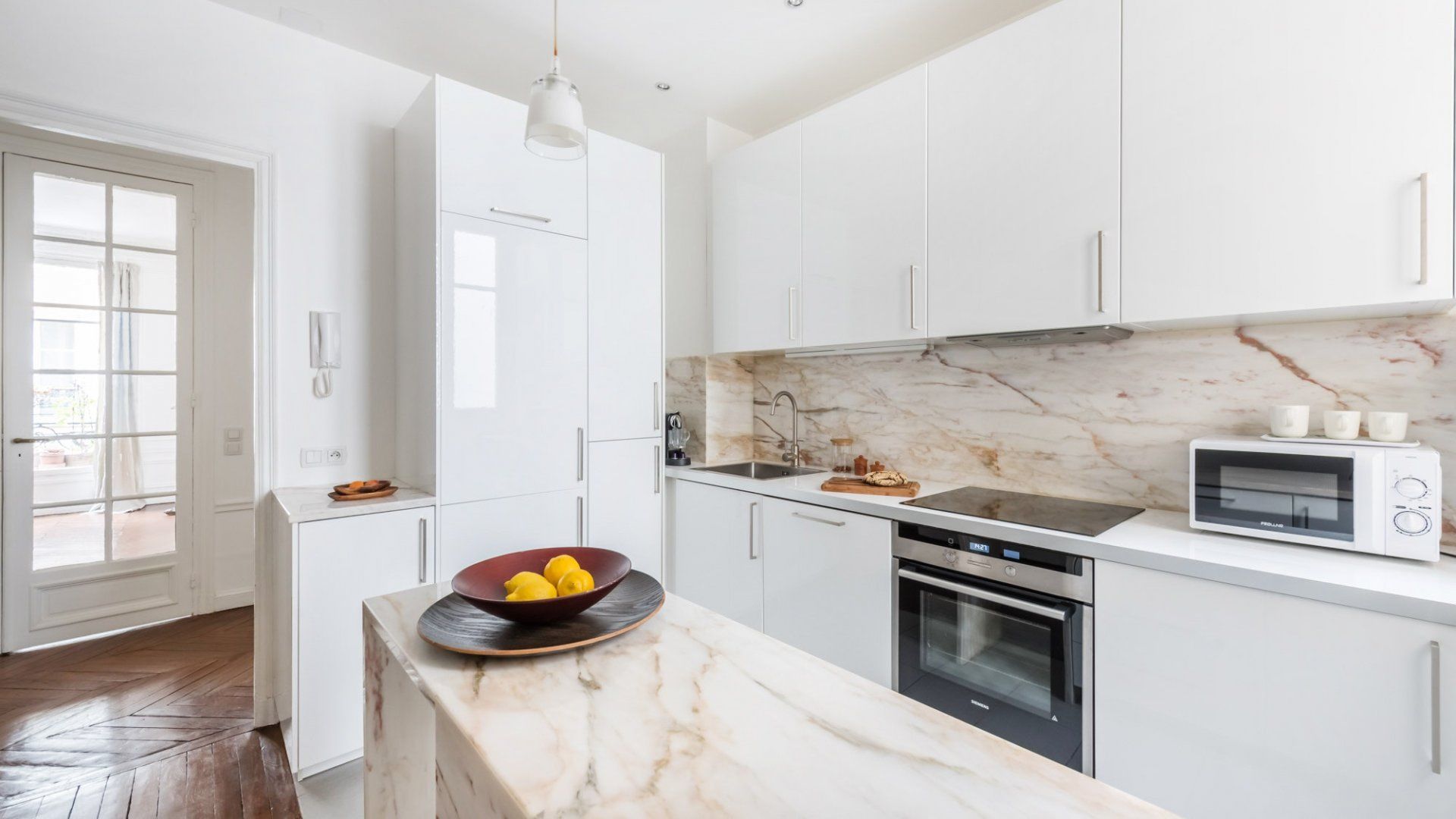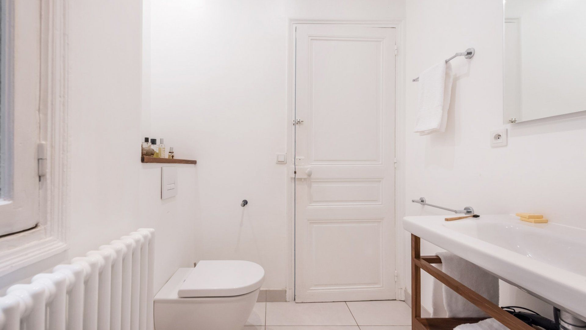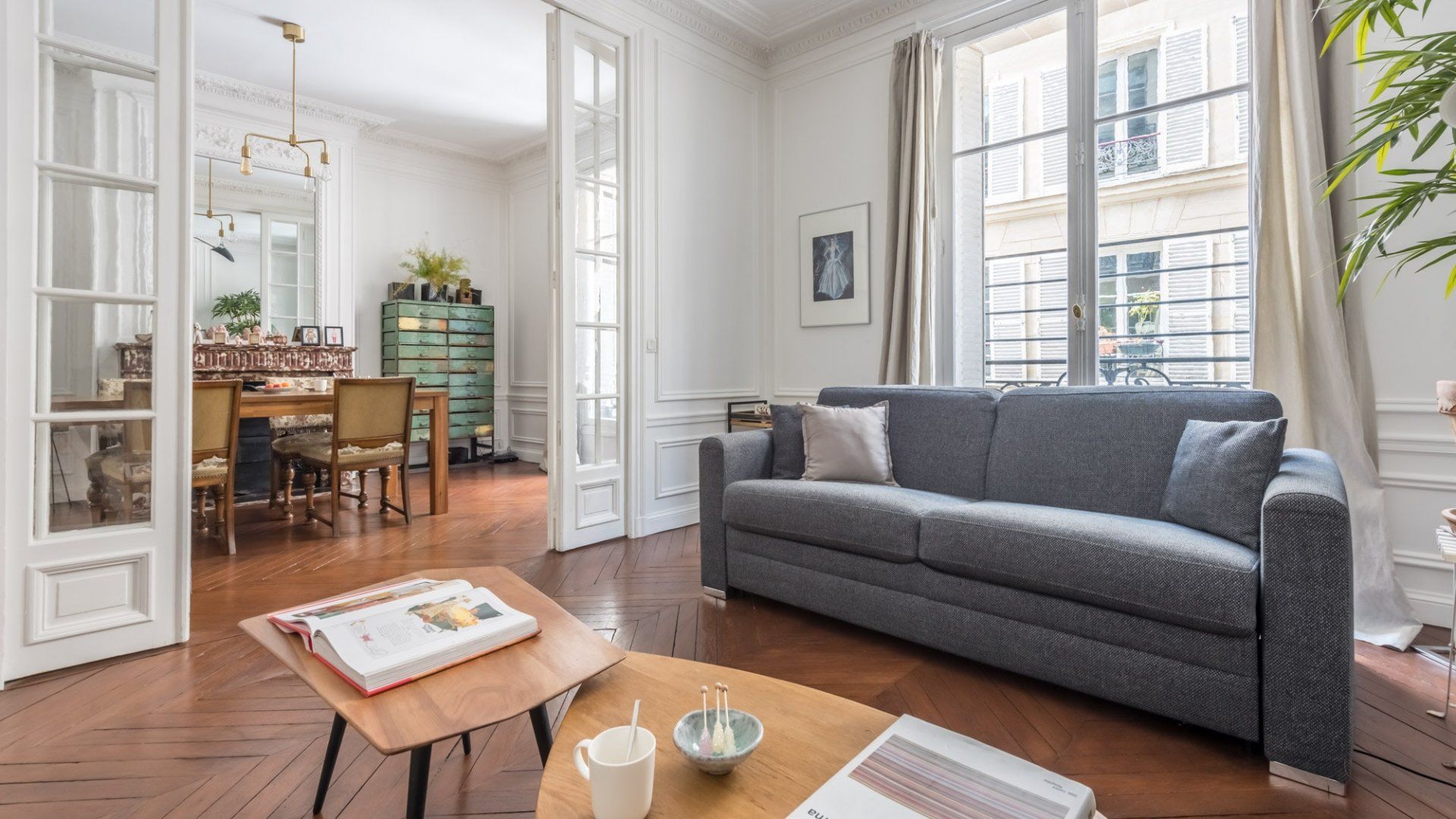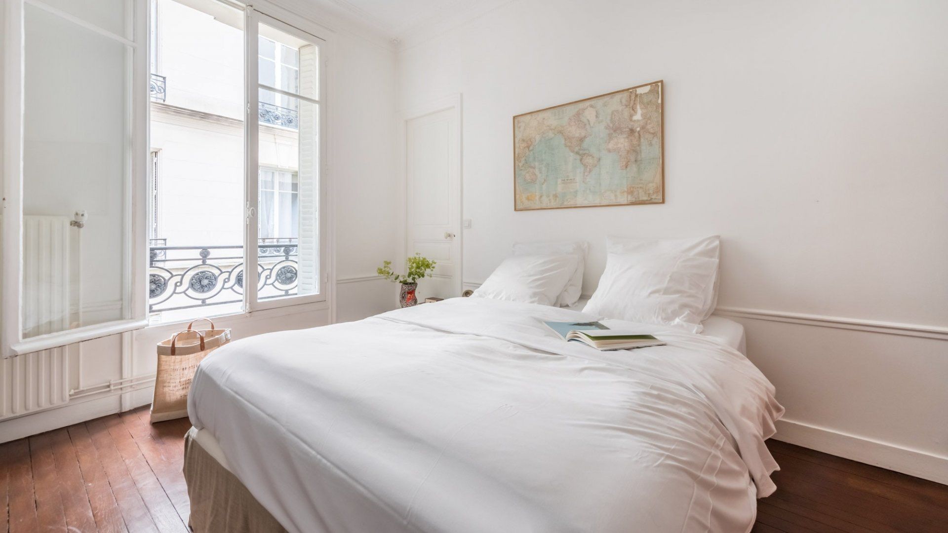 Just steps away from the Canal Saint Martin sits this Haussmannian 1 bed apartment. With a country-house style dining room boasting a large dining table and ornate fireplace, as well as a separate sleek, marble top kitchen I was amazed at just how much space there was - even if you did choose to accommodate a couple of extra guests on the sofa bed in the living area. Perhaps not for those seeking a more colourful, design-centric space, the bedroom is pretty basic in terms of decor, but it does have a charming Juliette balcony filling the room with plenty of natural light.