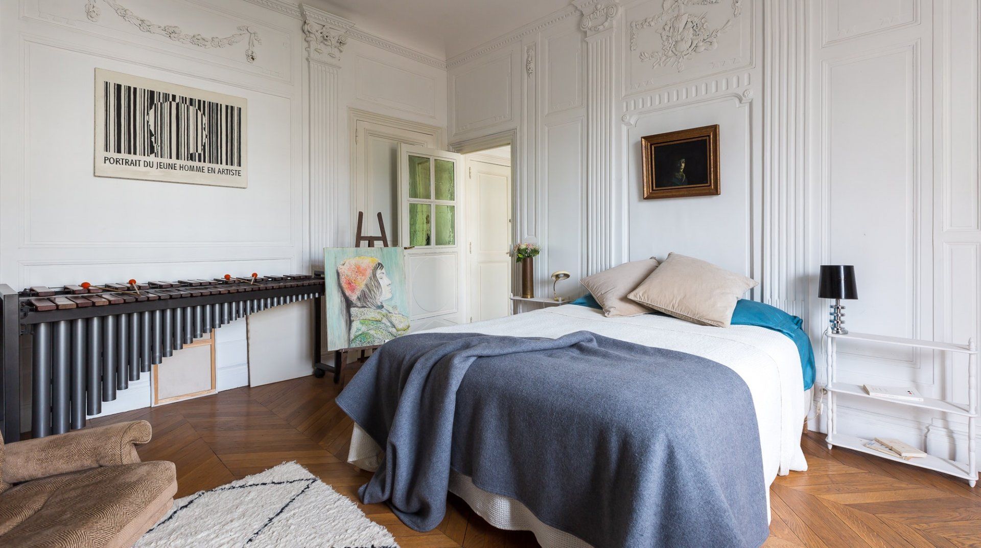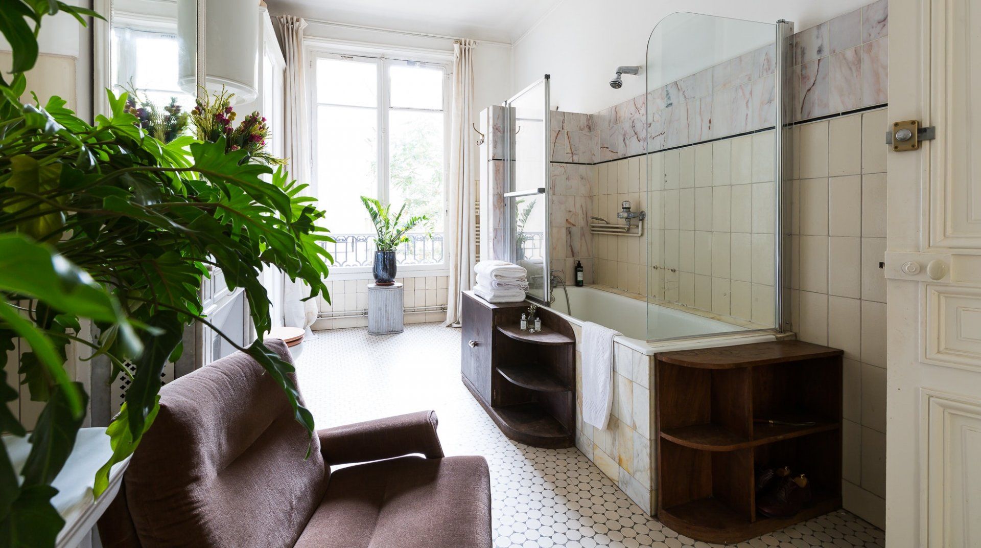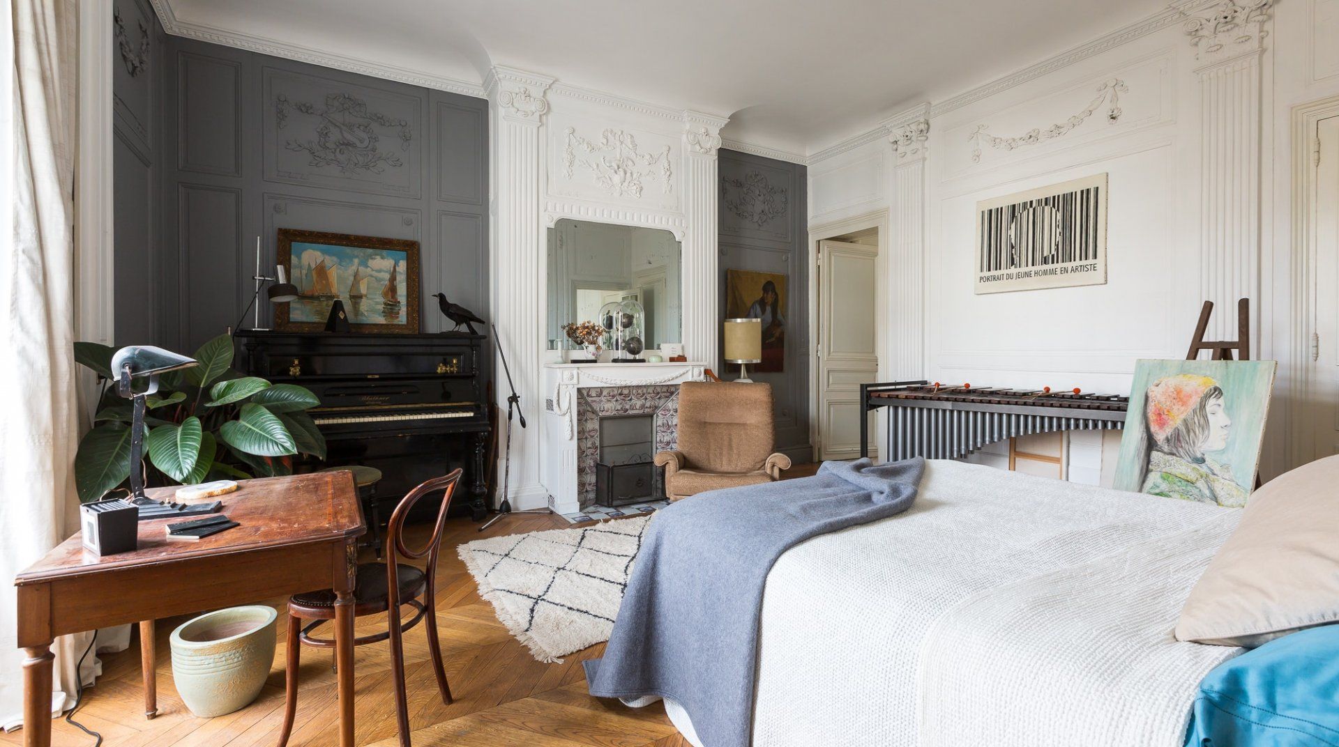 With a history as colourful as its interior design, this home in trendy South Pigalle is full of theatrical elegance and quirky artistic curiosities. Once belonging to the Countess of Ségur as well as to painter Jean-Édouard Vuillard, the home pays tribute to its creative past with a display of portraits, musical instruments and articles of virtu that come together in a kaleidoscope of fascinating beauty. Amidst the herringbone flooring, high ceilings, decorative fireplaces, ornate moulding and objets d’art, the living room’s crowning glory is the balcony with views of the Sacré-Cœur. Sit here in the morning with your coffee while taking in views of the basilica and the Square Berlioz that Vuillard captured in his paintings. Alternatively, choose instead to begin your day on the master bedroom’s balcony, in the second bedroom's winter garden or on the terrace where there’s a vegetable patch. With a cinema screen, a piano, a marimba and a working fireplace to curl up next to with a good book, you can while away entire days in this eclectic home, without ever wanting to leave. When you do decide to venture out, Montmartre’s bohemian streets are just a ten-minute walk away, while countless bistros, boutiques and bars are waiting to be discovered right outside your door. After a day of sightseeing and flâning in your neighbourhood, come back home for a shower in the boudoir bathroom before deciding which balcony to relax on while watching the sunset over the city.