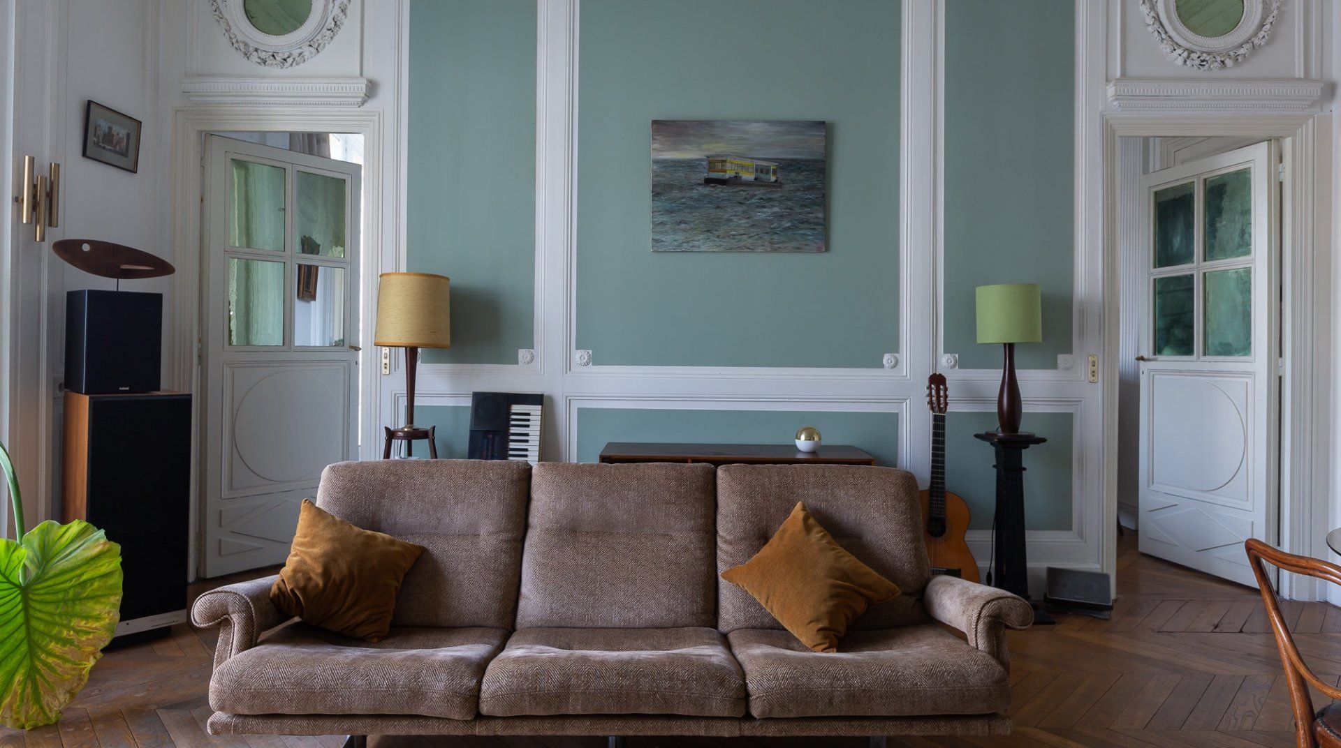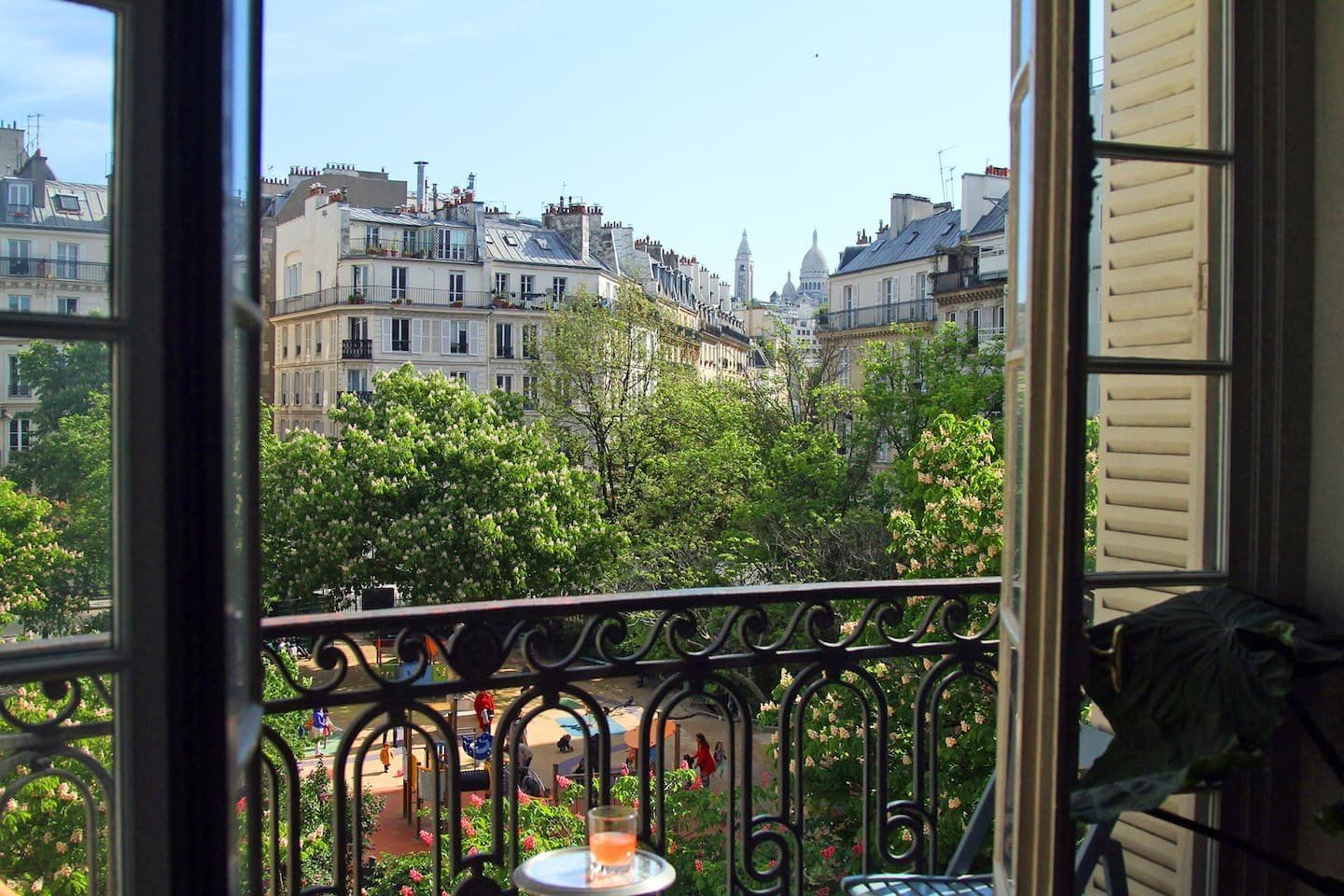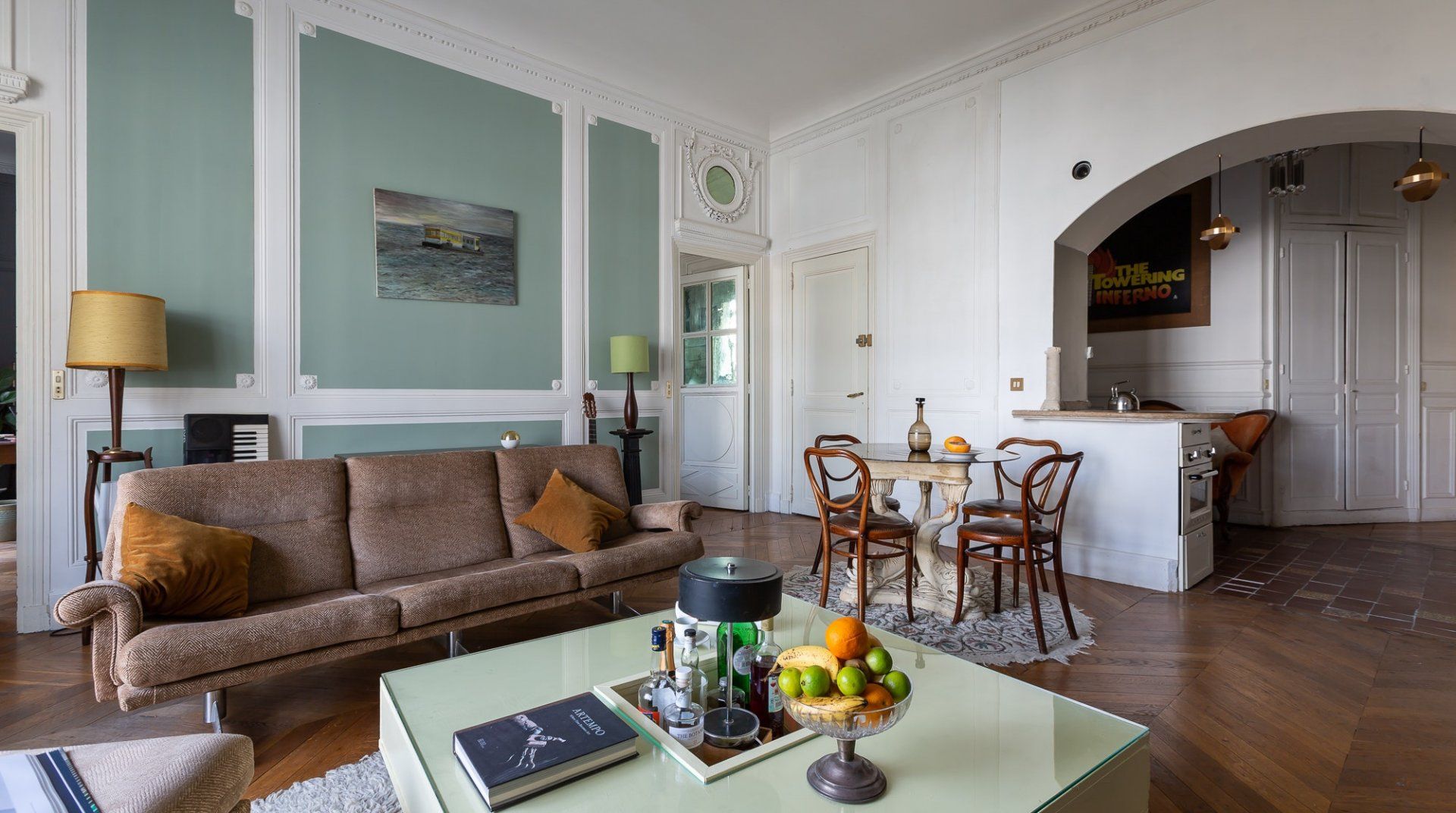 With a history as colourful as its interior design, this home in trendy South Pigalle is full of theatrical elegance and quirky artistic curiosities. Once belonging to the Countess of Ségur as well as to painter Jean-Édouard Vuillard, the home pays tribute to its creative past with a display of portraits, musical instruments and articles of virtu that come together in a kaleidoscope of fascinating beauty. Amidst the herringbone flooring, high ceilings, decorative fireplaces, ornate moulding and objets d’art, the living room’s crowning glory is the balcony with views of the Sacré-Cœur. Sit here in the morning with your coffee while taking in views of the basilica and the Square Berlioz that Vuillard captured in his paintings. Alternatively, choose instead to begin your day on the master bedroom’s balcony, in the second bedroom's winter garden or on the terrace where there’s a vegetable patch. With a cinema screen, a piano, a marimba and a working fireplace to curl up next to with a good book, you can while away entire days in this eclectic home, without ever wanting to leave. When you do decide to venture out, Montmartre’s bohemian streets are just a ten-minute walk away, while countless bistros, boutiques and bars are waiting to be discovered right outside your door. After a day of sightseeing and flâning in your neighbourhood, come back home for a shower in the boudoir bathroom before deciding which balcony to relax on while watching the sunset over the city.