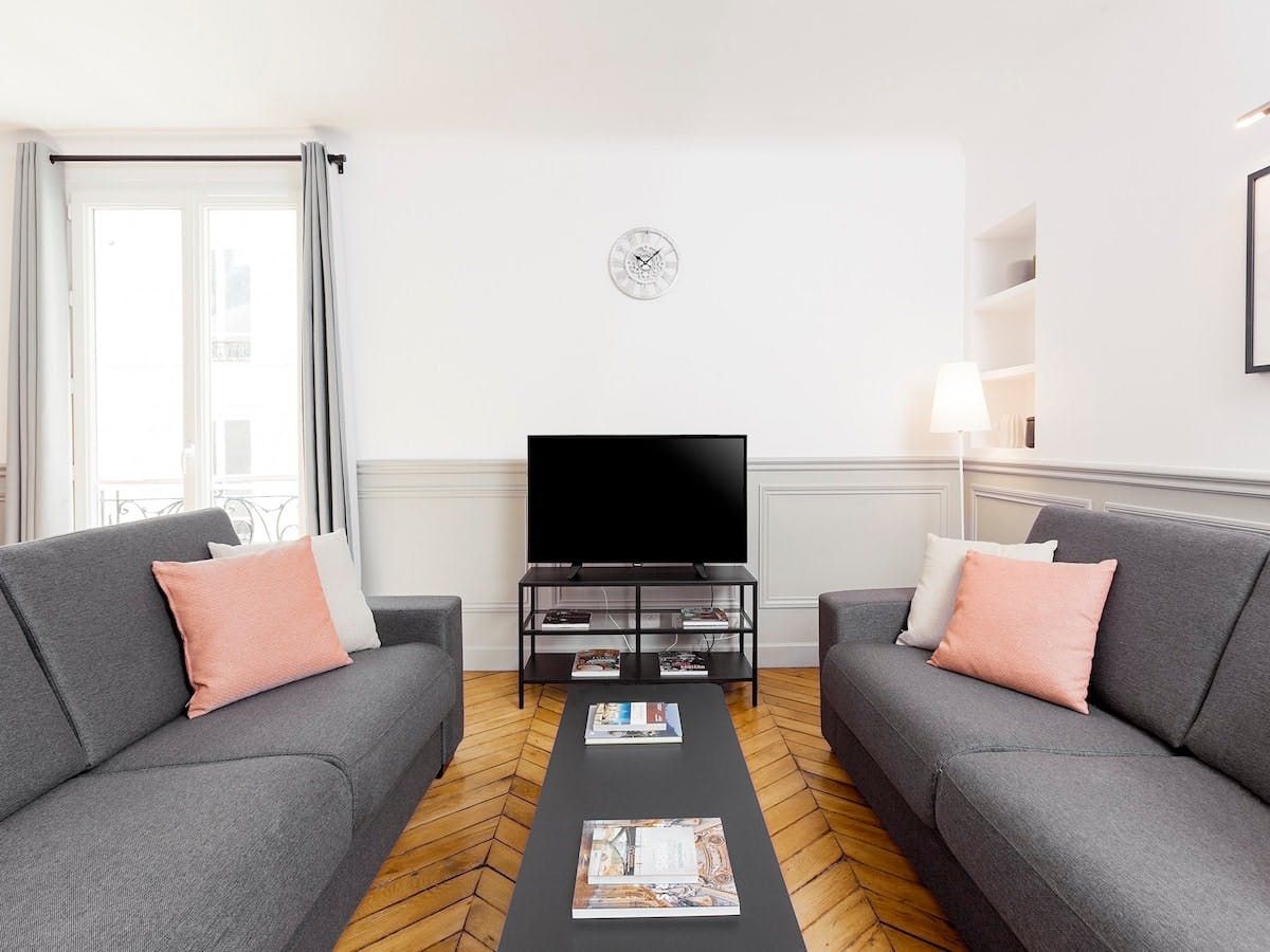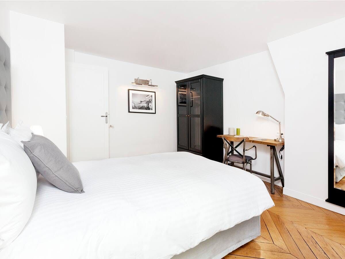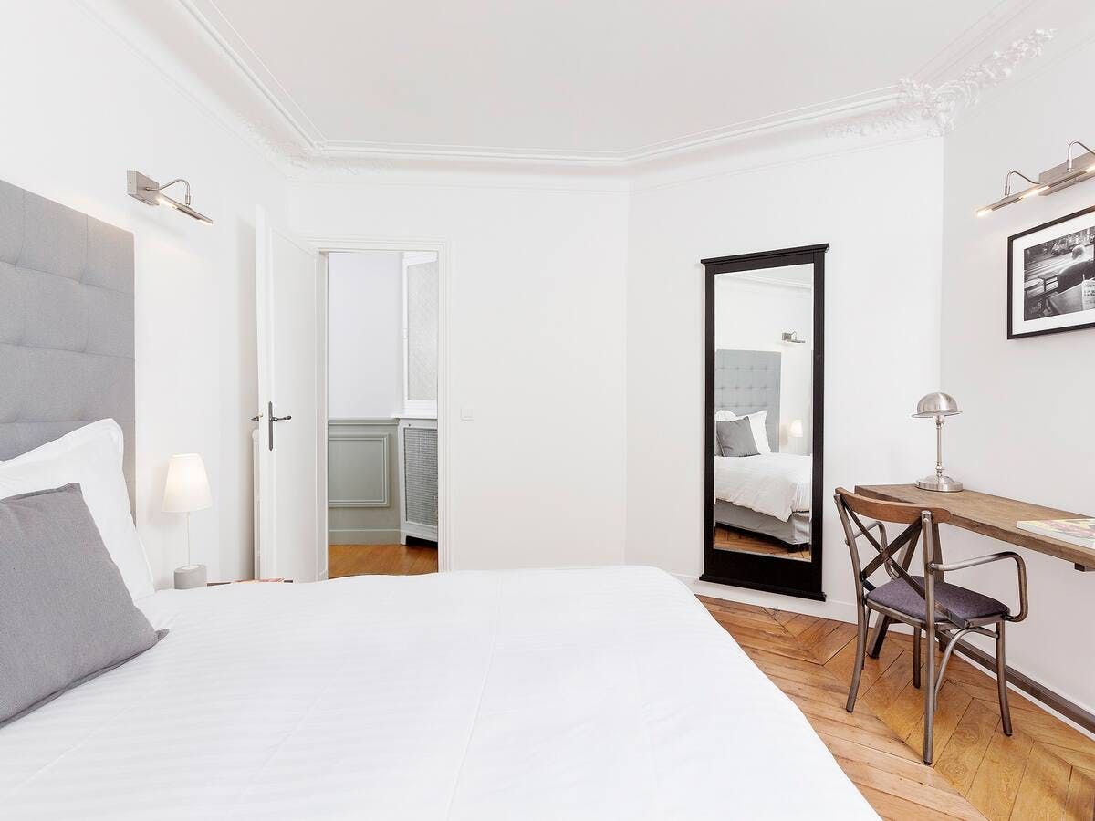 An eighteen-minute walk places you at the upmarket Galeries Lafayette Haussmann – splurge on coveted items from luxury mainstays and emerging designers. When shopping becomes thirsty work, hip South Pigalle, a twenty-minute stroll away, offers an irresistible selection of bars and old-school watering holes. Once dusk falls, head home to primp and preen ready for a night at the ballet – the opulent Palais Garnier is just a ten-minute car ride from your building.