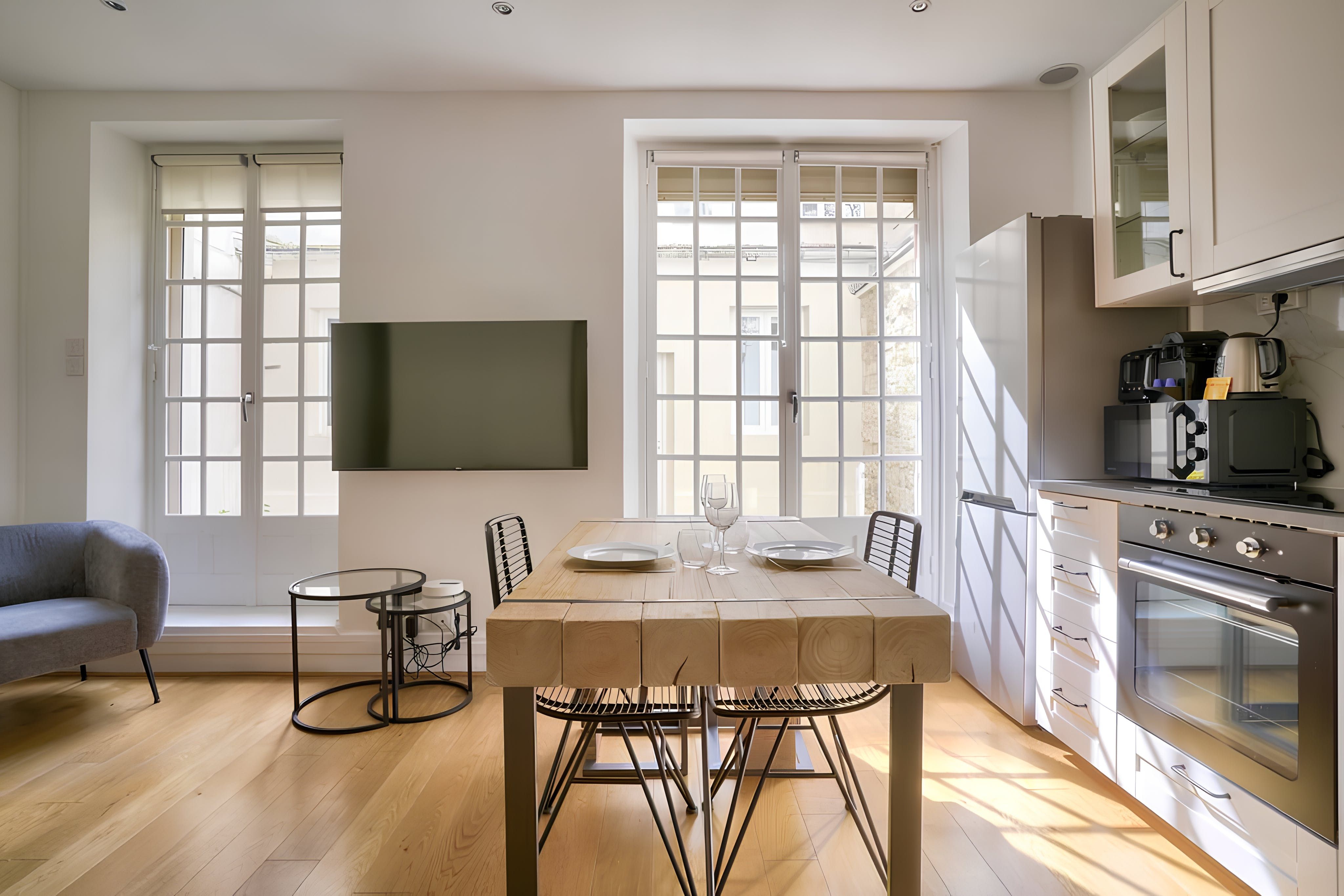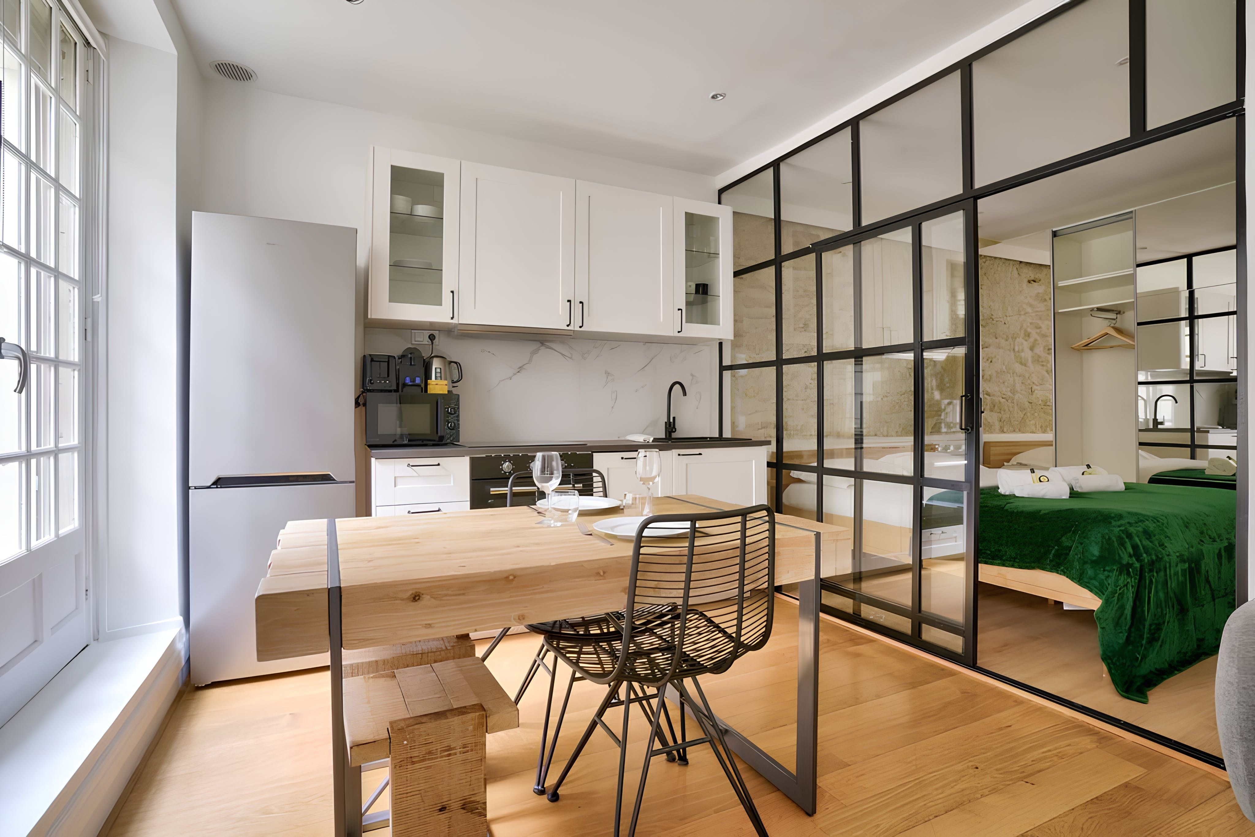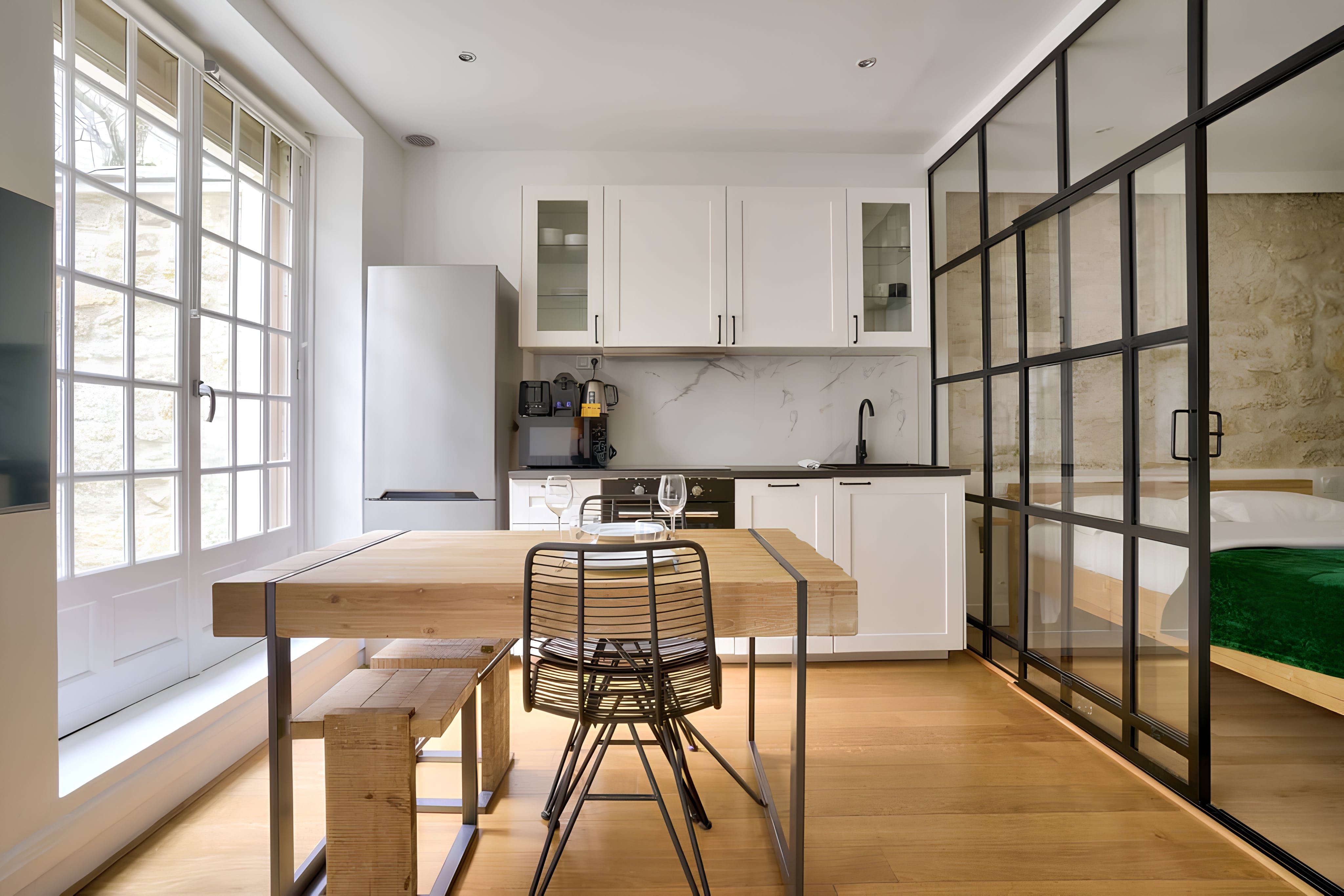 Home truths: *This is a compact studio apartment, so it lacks some space and privacy. *This home has no air conditioning, but there is heating for the cooler months. *You'll have access to the courtyard here. It's shared with the building's other residents. Smoking is not permitted in the courtyard. *If you're travelling for work, you won't find a dedicated desk here. However, the dining table doubles up as a laptop-friendly workspace. *The closest metro stations are Vaugirard and Volontaires, a short walk away.