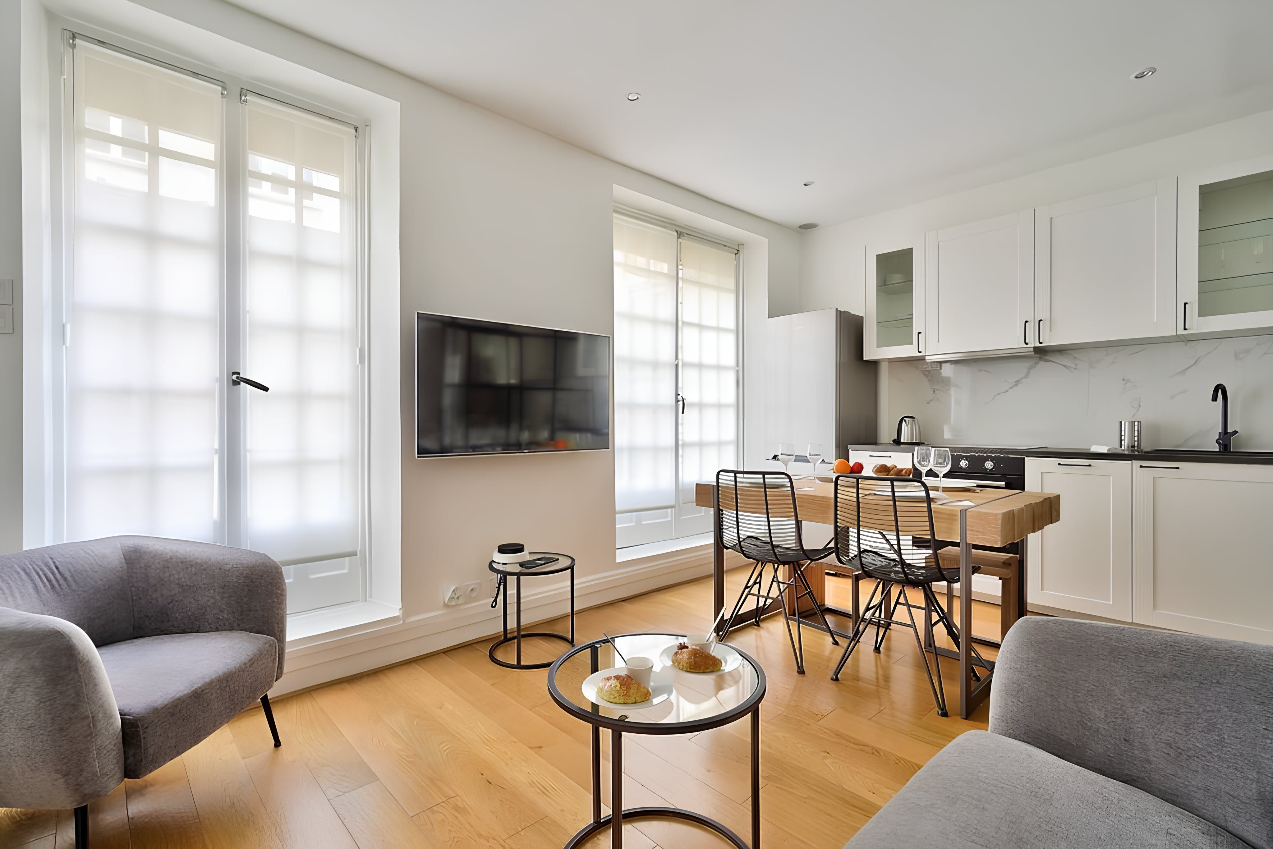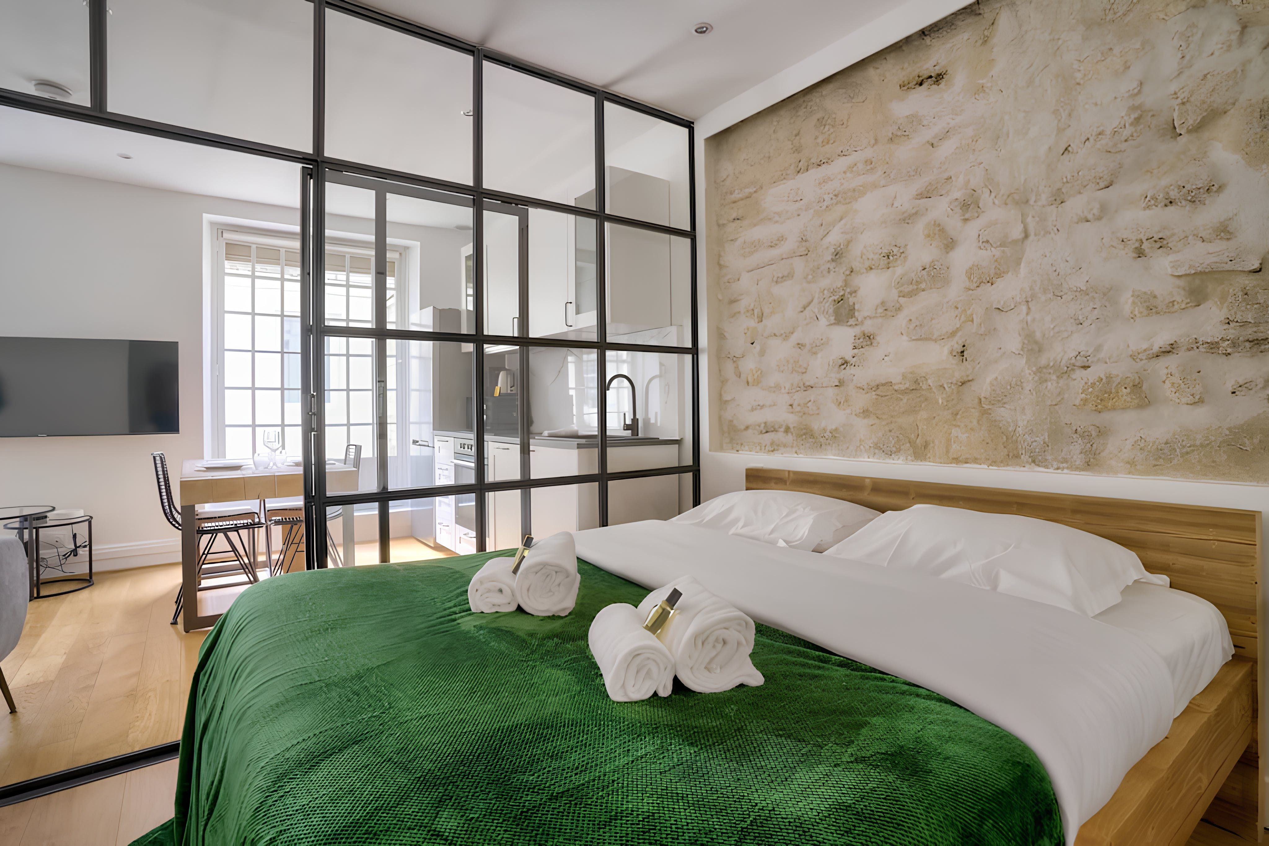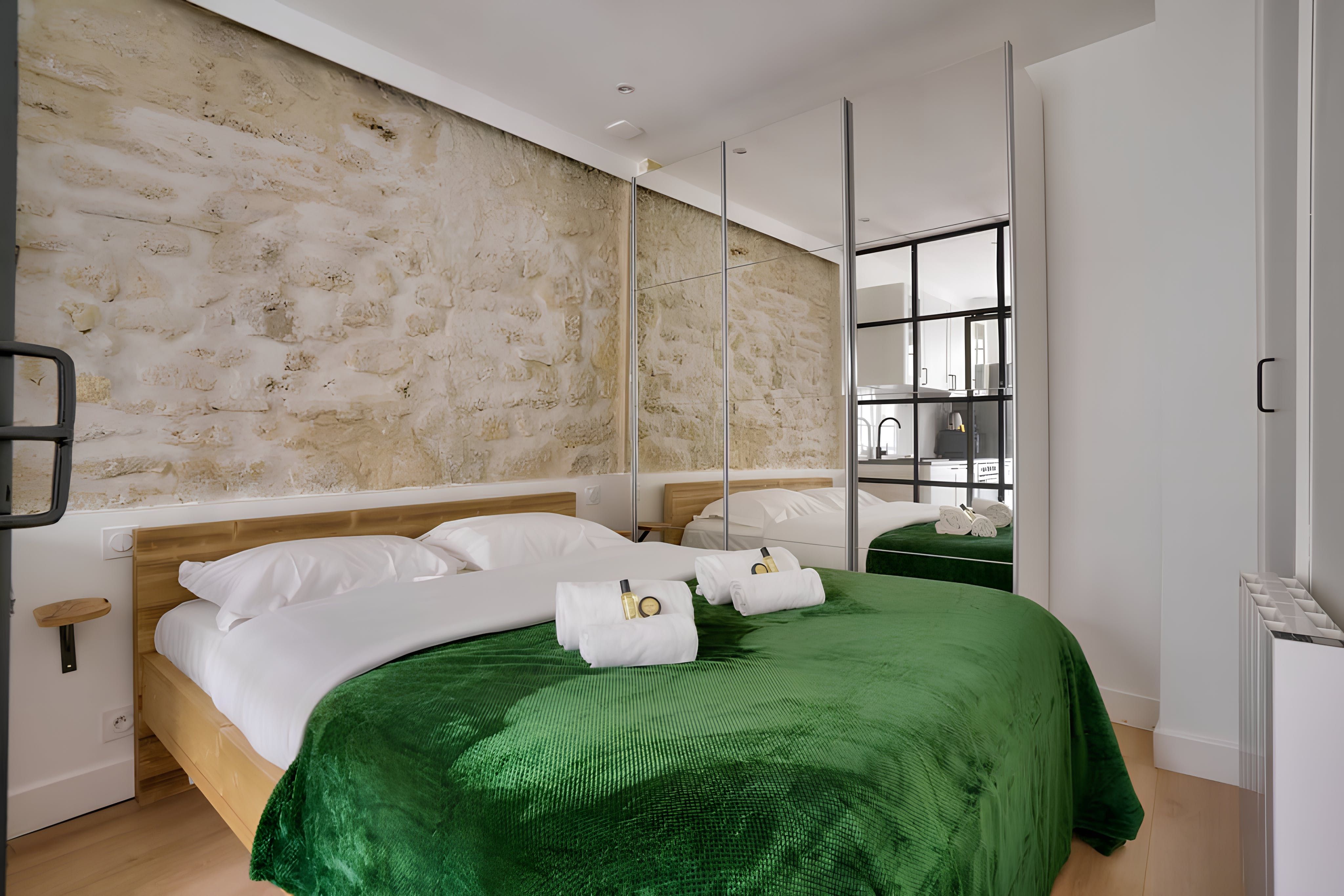 This studio apartment in the 15th arrondissement is ideal for a couple of travellers with packed itineraries. The space is fairly compact, with a sliding glass door to the bedroom, so it’s not the most private. That said, it’s a light-filled space for sharing breakfasts, remote working and unwinding with a glass of wine after a day of sightseeing. This area is a little quieter, though you’ll still find typical Parisian cafes and bistros on your doorstep. Plus, Vaurigard metro station is a few steps away, making inner-city adventures effortless.
