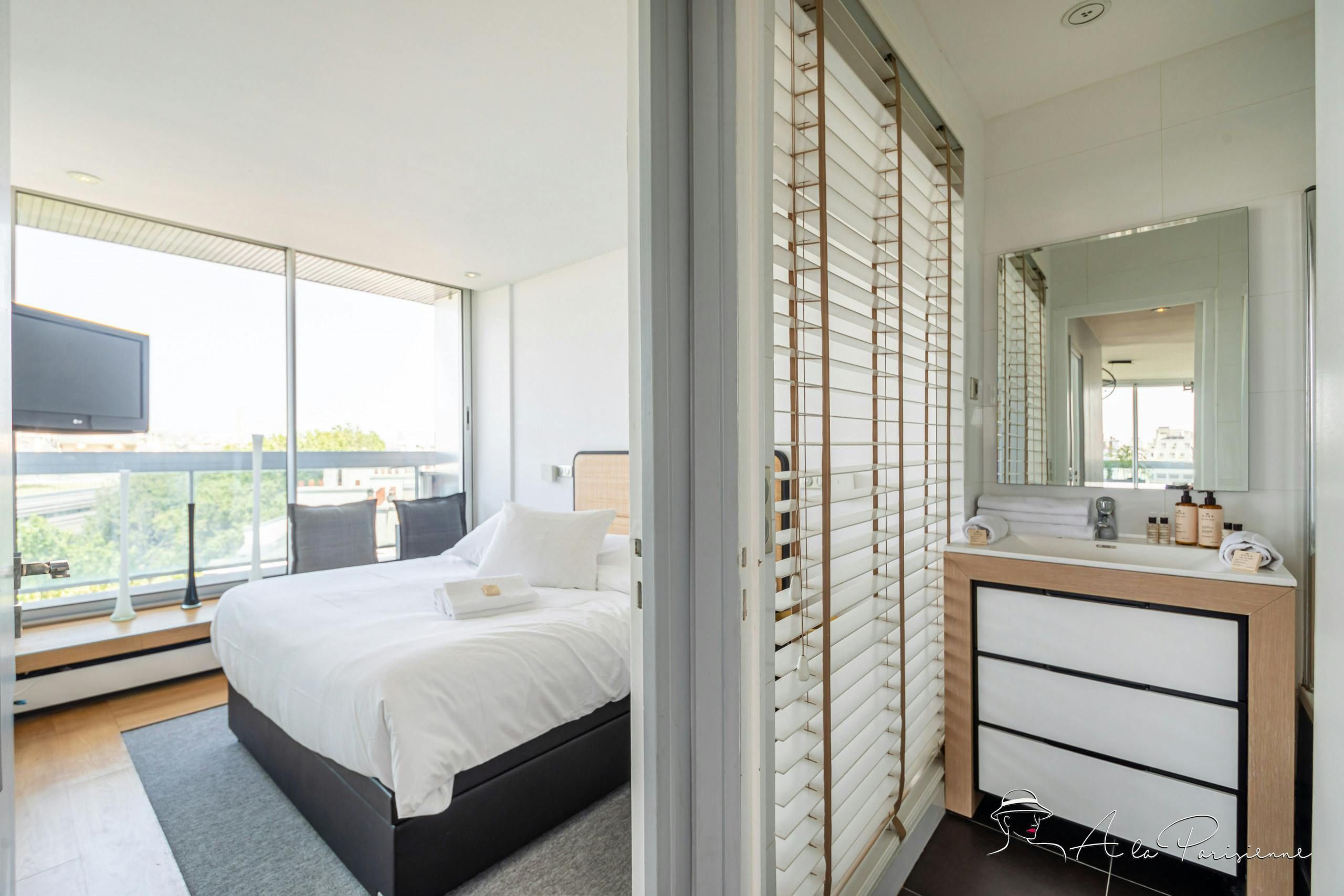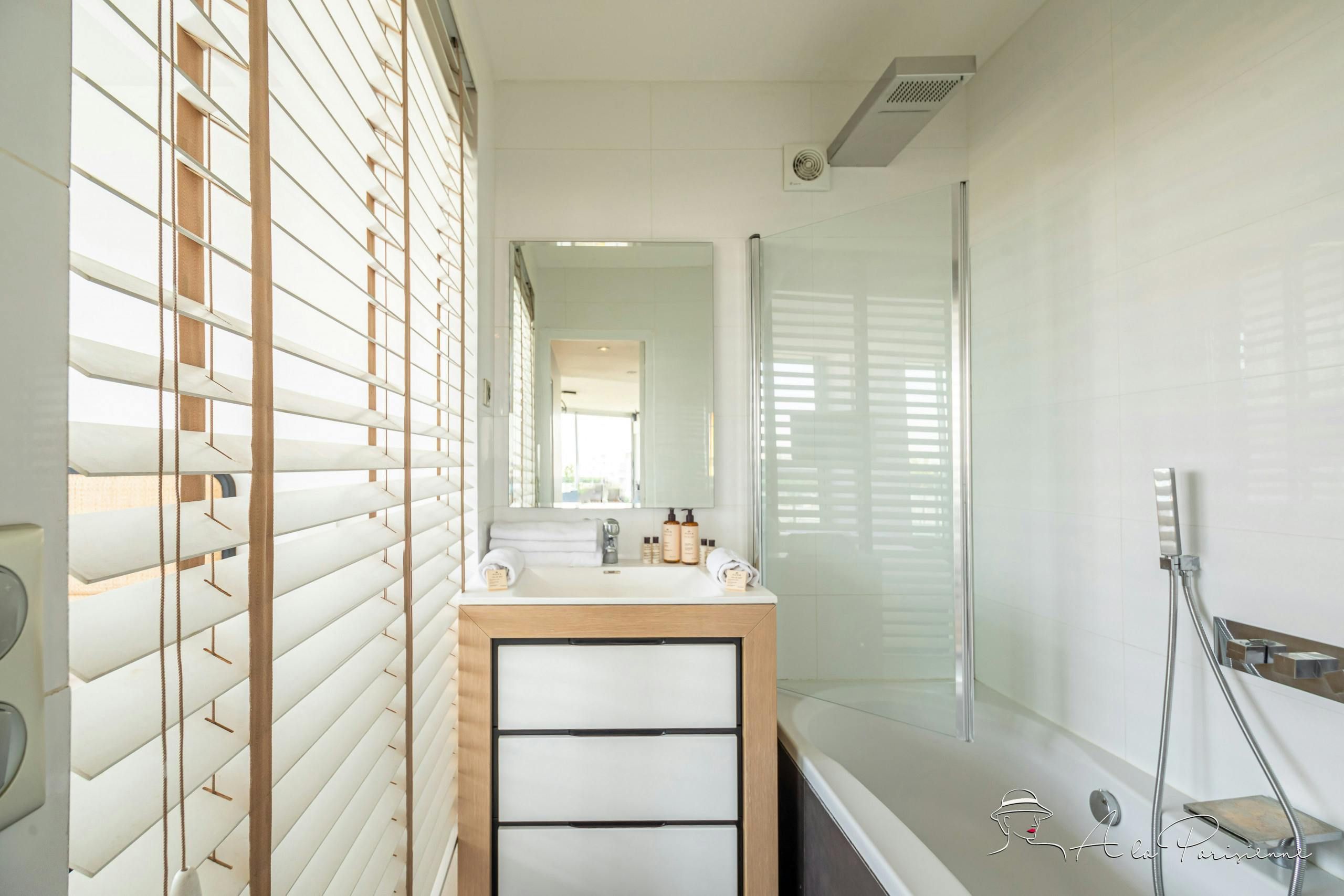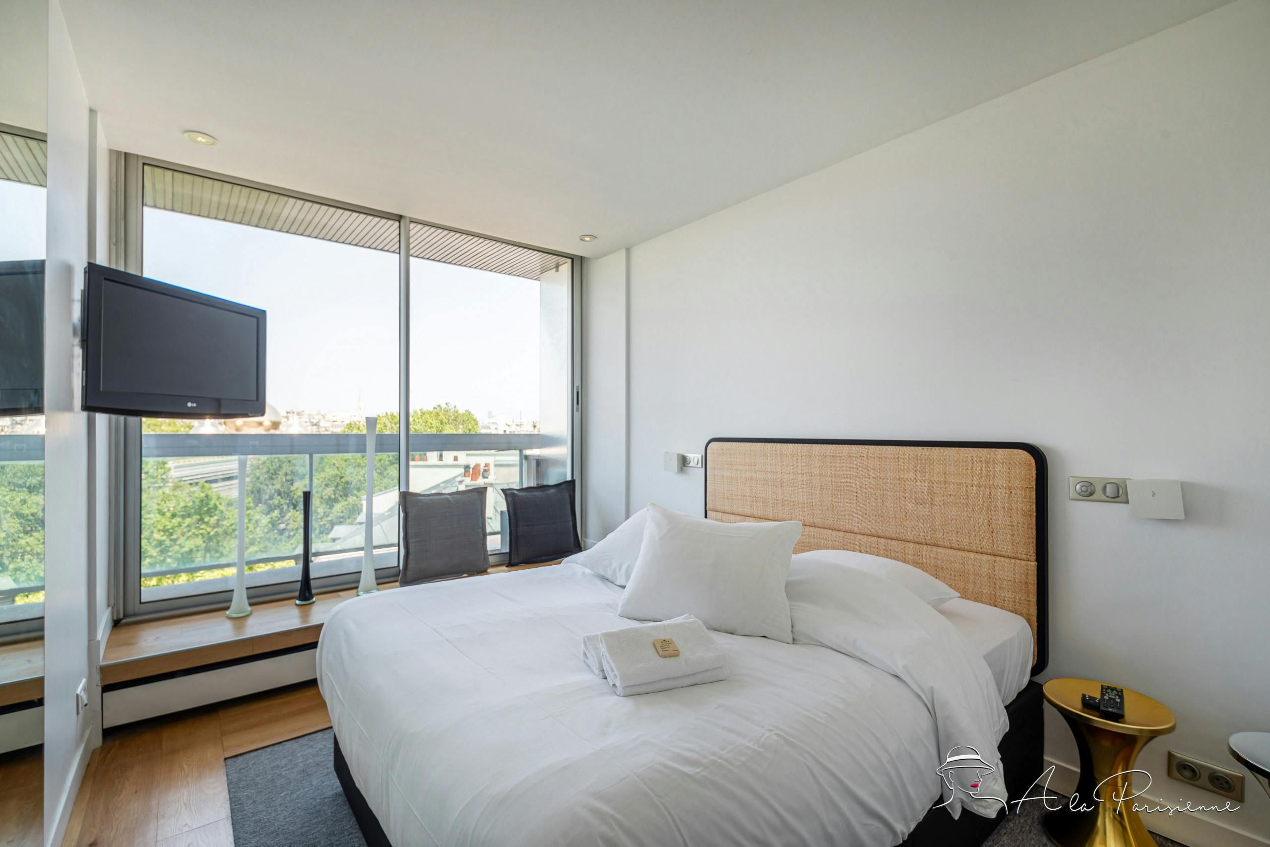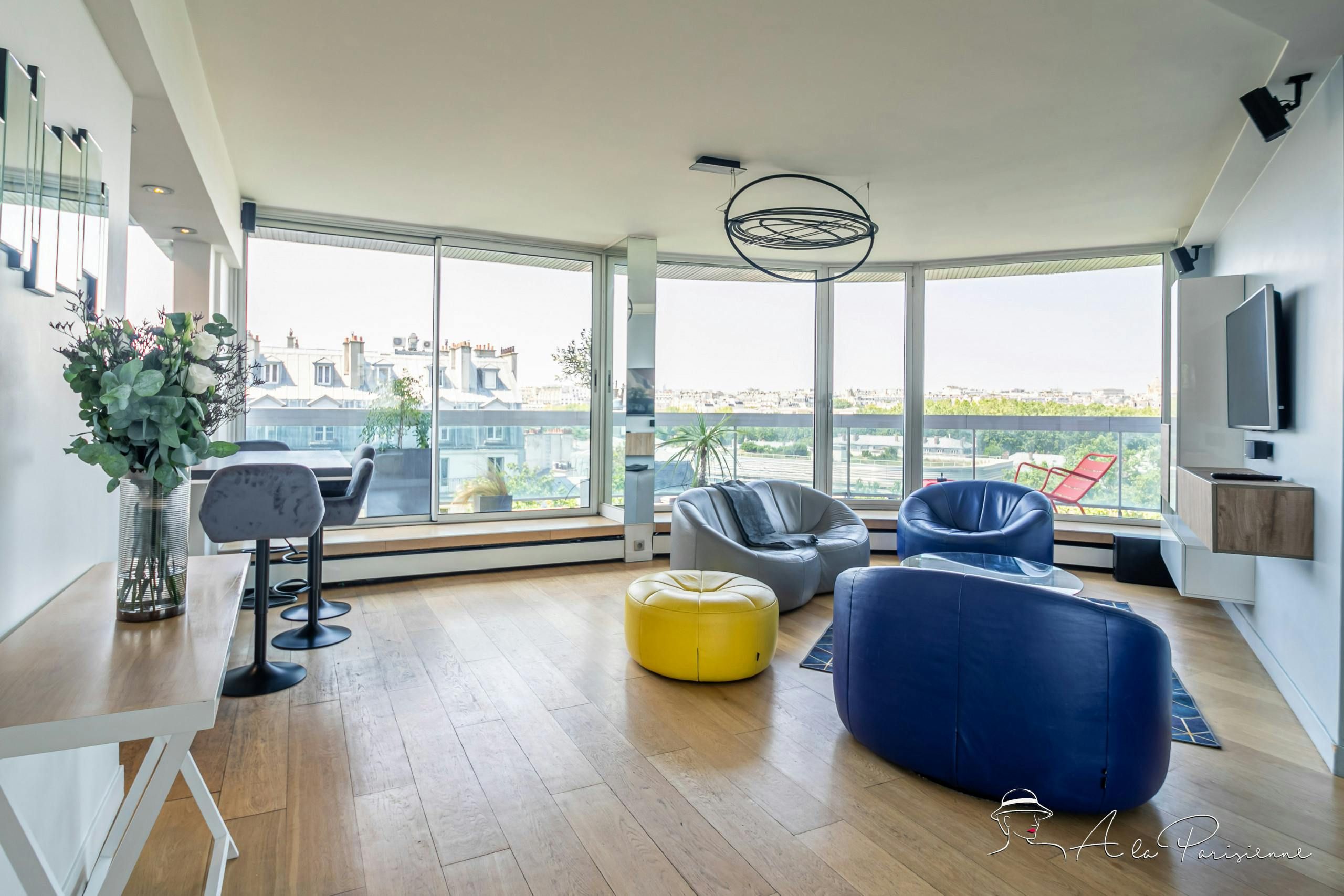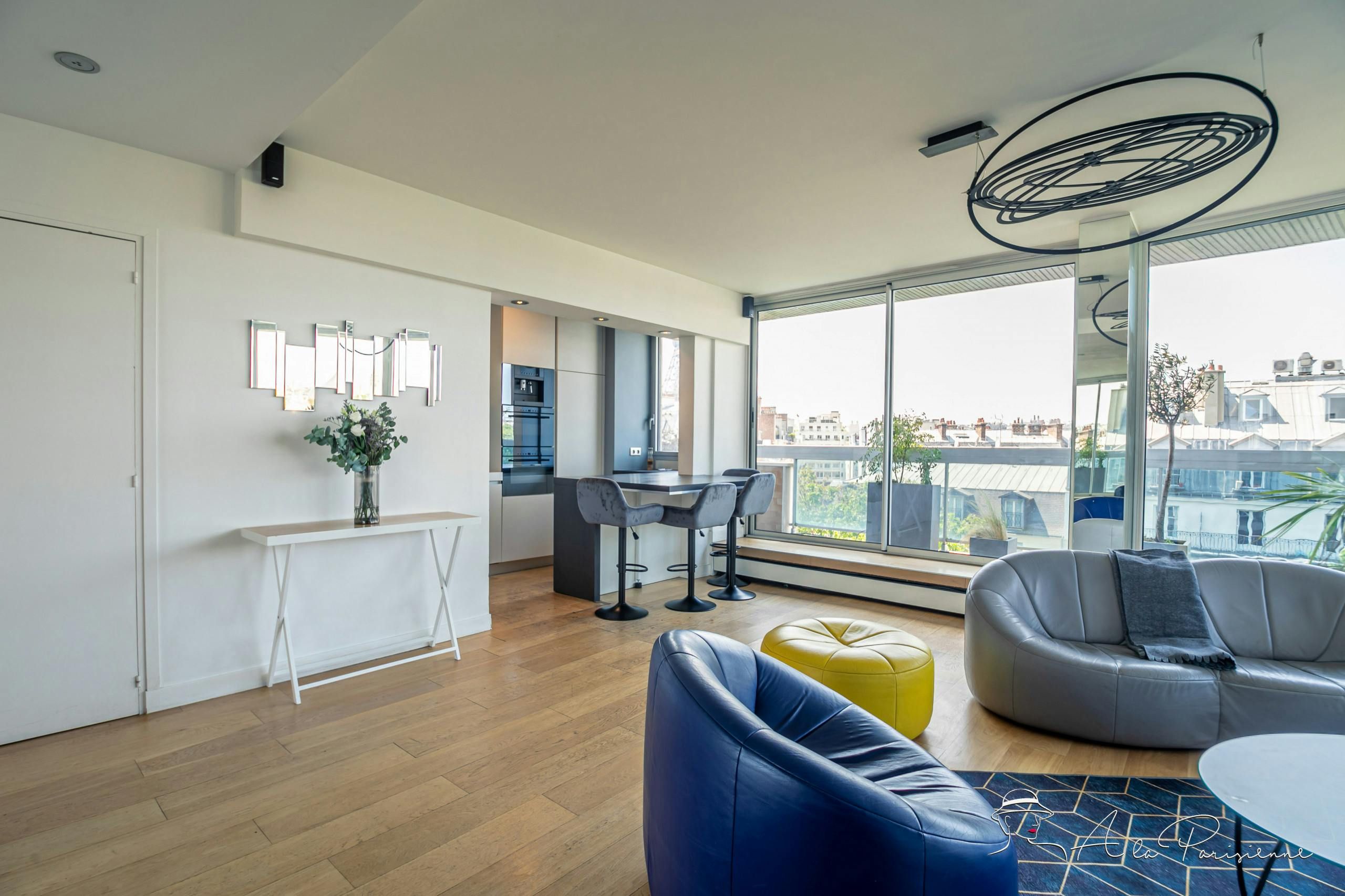 This stunning apartment can be found in the 7th arrondissement, a short walk from the Eiffel Tower. You don’t even need to leave the home to admire that most iconic of Parisian sights though – this home boasts incredible views of the Iron Lady. The views can be enjoyed from the long balcony, and through the floor-to-ceiling windows of the bright and attractive living and dining space. There are plenty of bars and restaurants nearby, but for evenings spent at home, you’ll find a well-equipped kitchen.