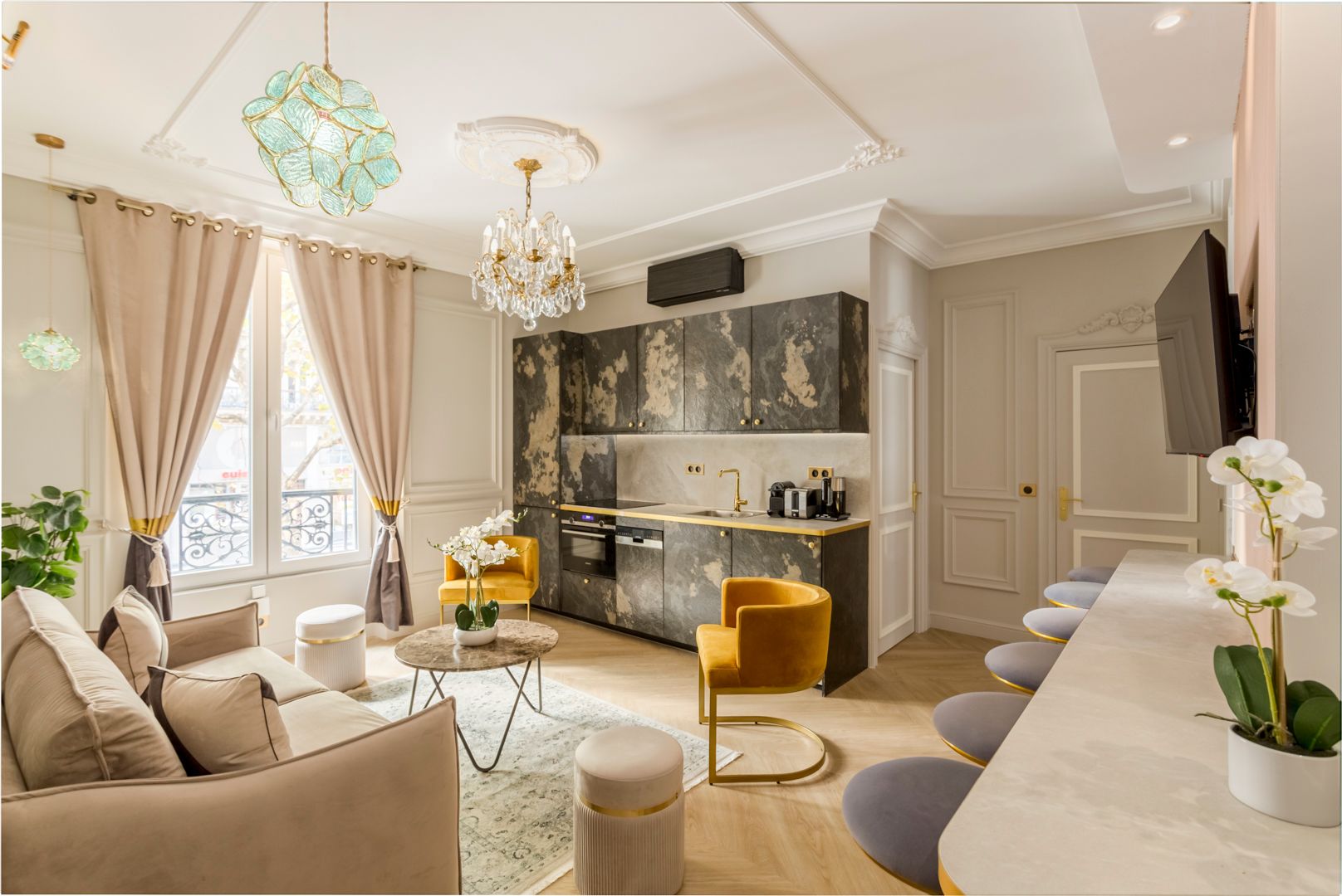 Right in the heart of the city, the location of this apartment couldn’t be any better. You can stroll to the Louvre, Notre-Dame and the Pompidou Center. You’ll find plenty of dining options across the neighbourhood and there are great public transport links – making it easy to explore iconic sights across the city. And while the location is a highlight, this apartment has a lot to offer too. From the cosy bedrooms to the flexible living space, this is a great option for couples and families in search of comfort and style in a much-loved part of Paris.