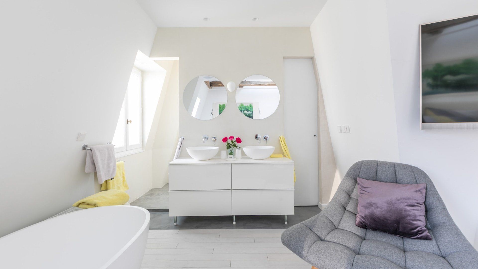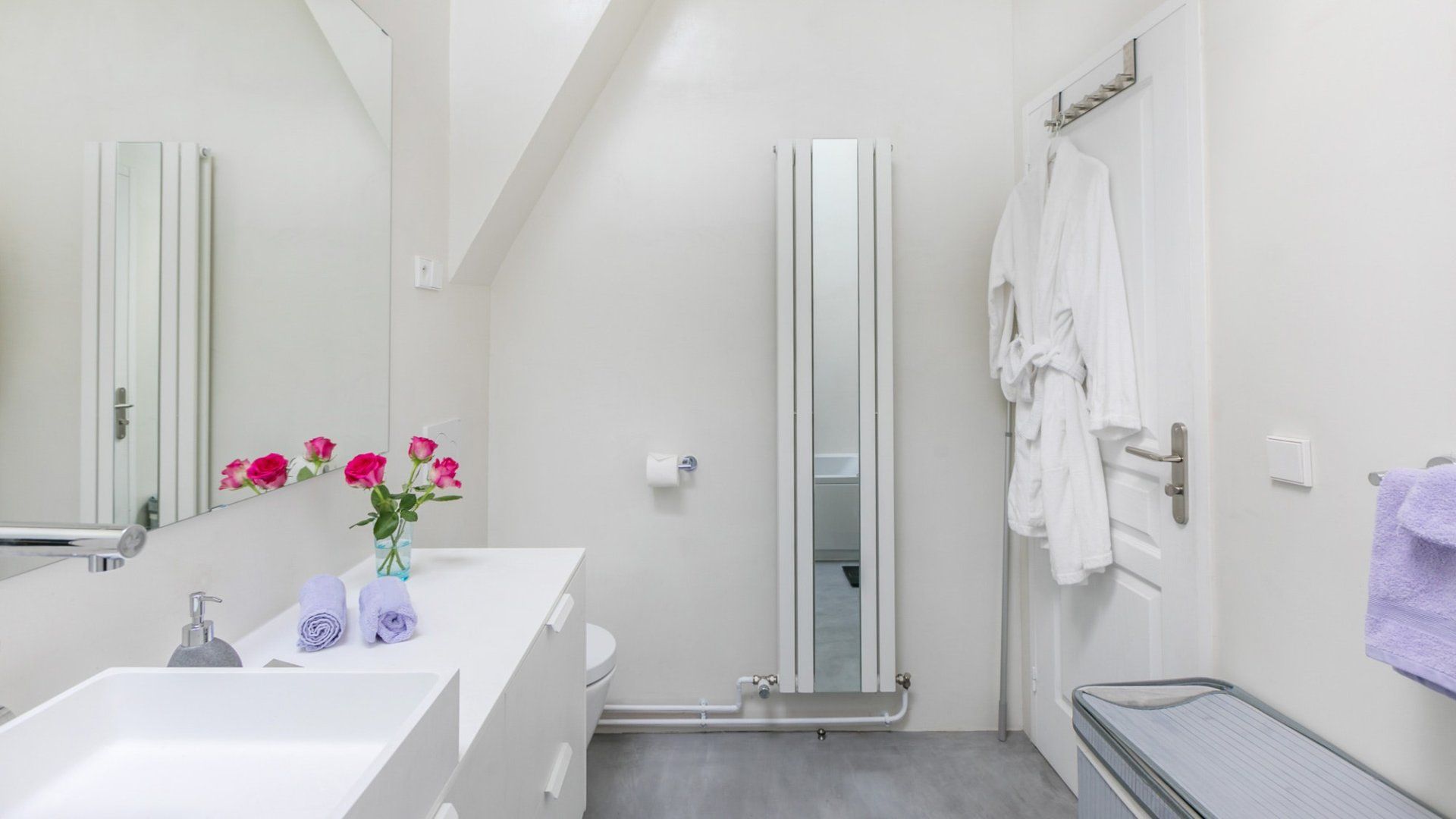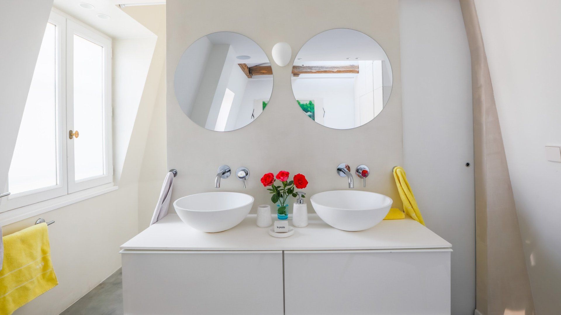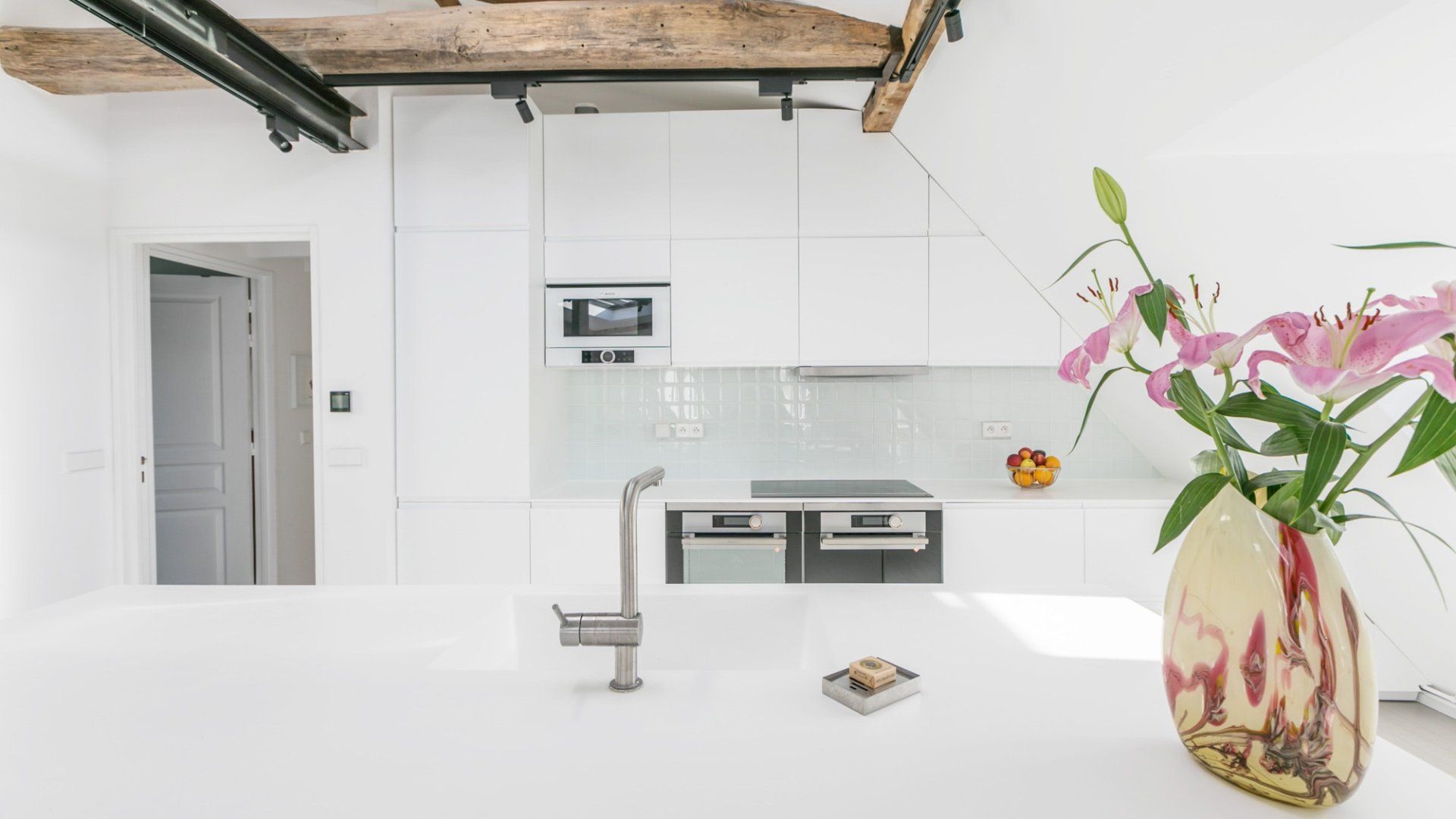 A beautiful large open space with so many skylights that sunshine floods in through to the living room and kitchen. You immediately feel refreshed and relaxed when you walk through the door. Packed full of designer furniture throughout with small touches like fresh flowers. Authentic sketches from films like "My Little Toaster" create a home full of character even when the colour palette throughout is pure white. There are three large bedrooms all set up with guest's comfort in mind and a unique loft space with a view of the Eiffel Tower that's pretty special at night.