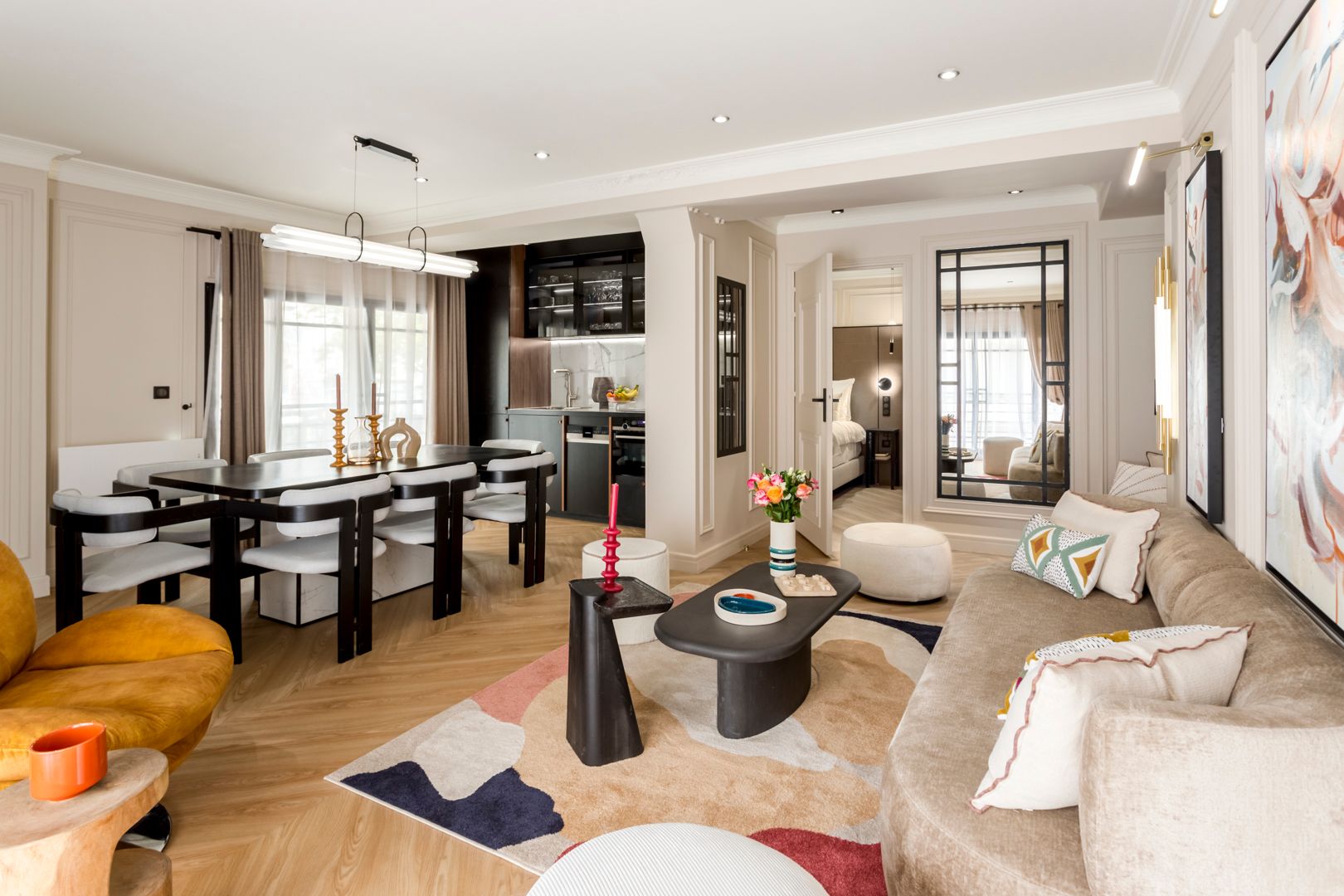 This apartment is within walking distance of so many Parisian attractions, including the Centre Pompidou, the Louvre Museum and the Palais Royal to name just a few. So, the location is on-point, what about the apartment? Housed in an elegant building, the open-plan living space is large so it’s perfect for entertaining. Two bedrooms have en-suites and one of the bedrooms has a desk, handy for when you need to work from home while staying in the City of Light.